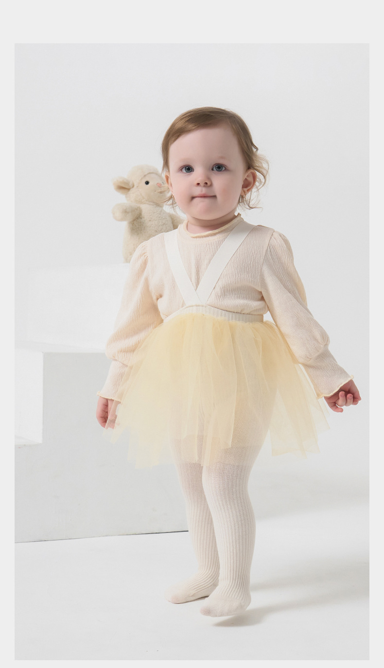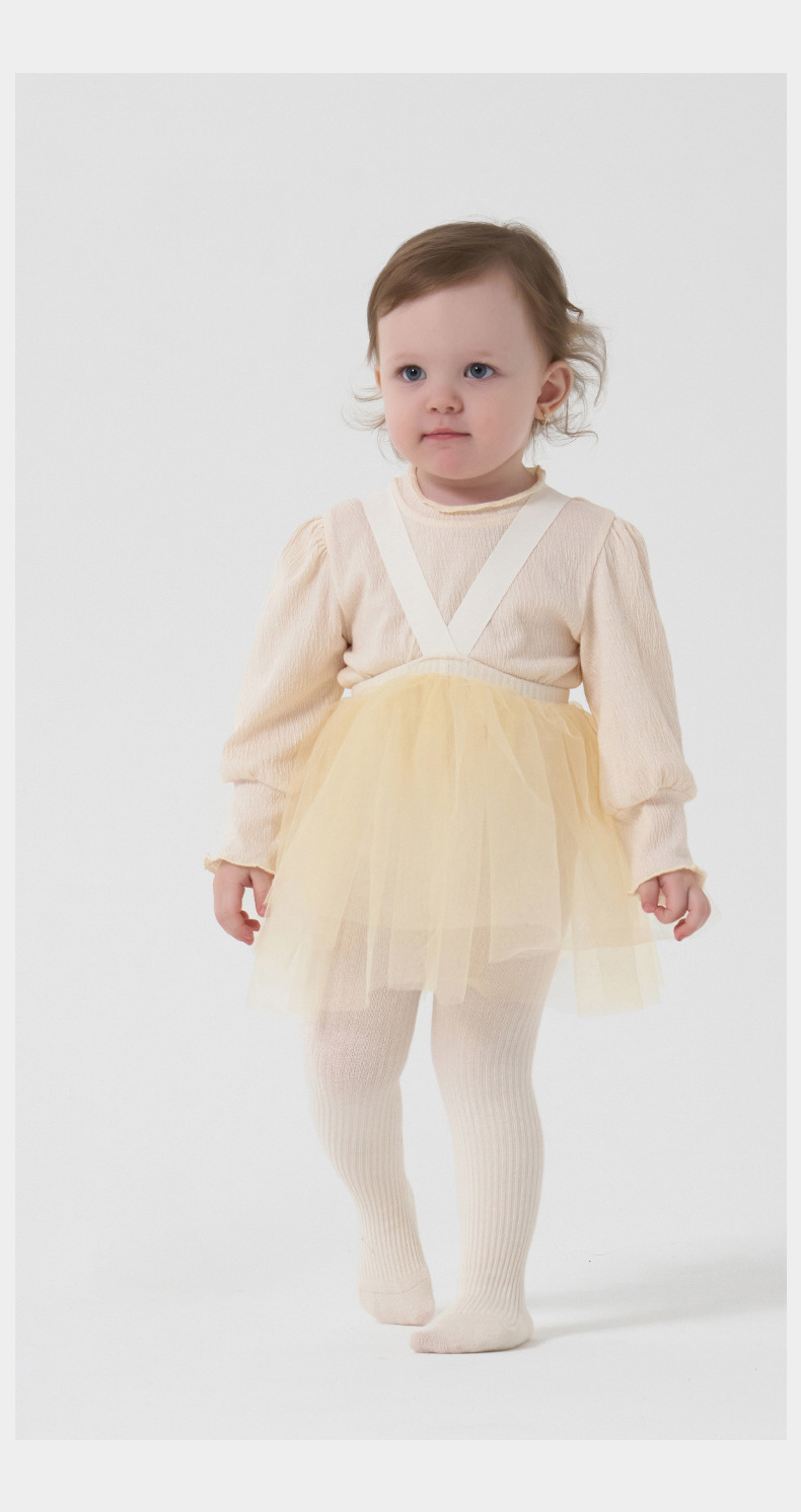 소녀 조끼 스커트 2025 봄과 가을 어린이와 소녀를위한 멜빵 서양식 레이스 메쉬 벨벳 팬티 스타킹 아기 바지