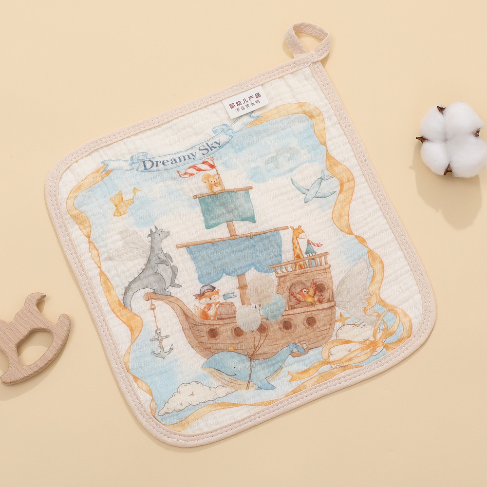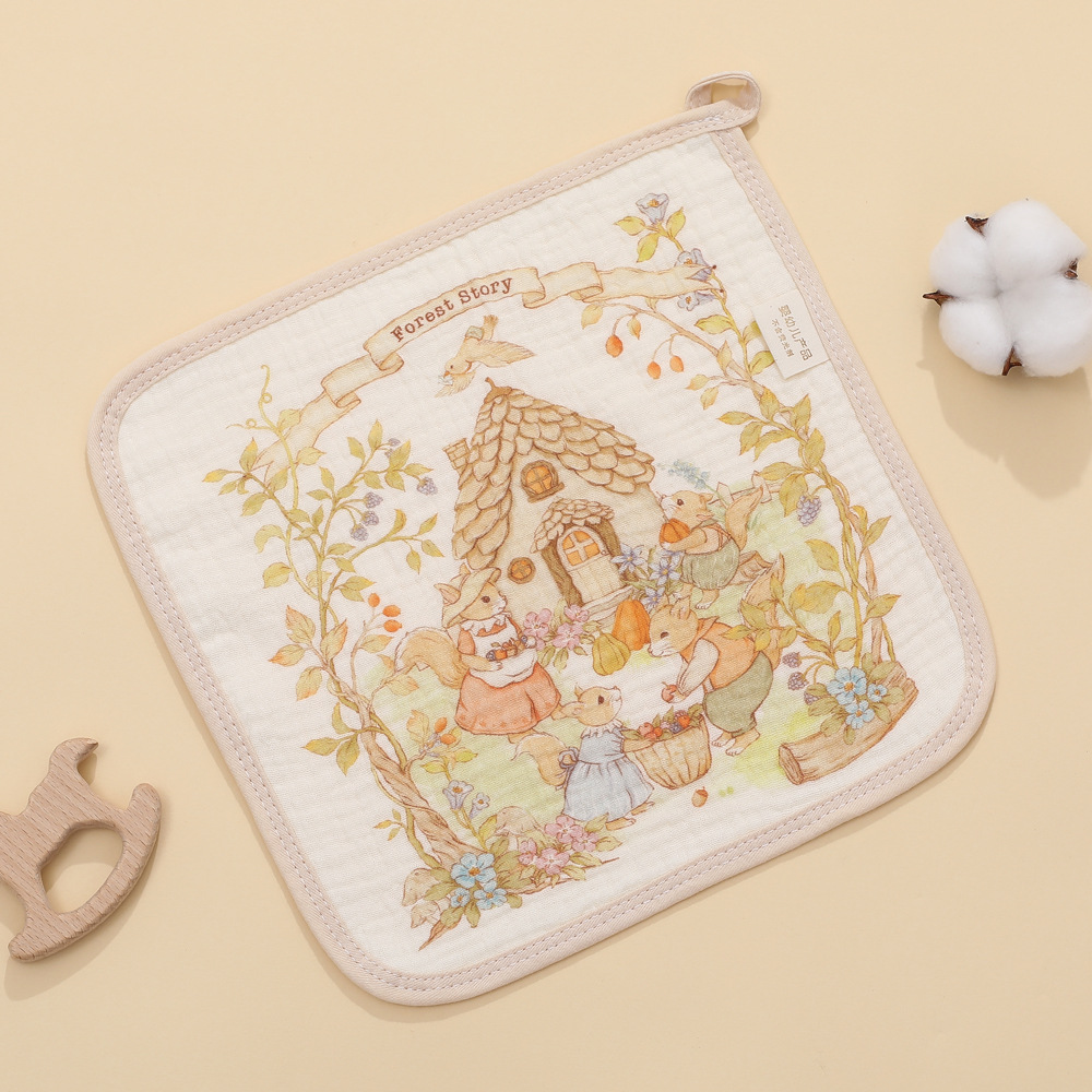 4겹 거즈 수건 유치원 만화 어린이 수건 아기 세안 흡수 수건 손수건
