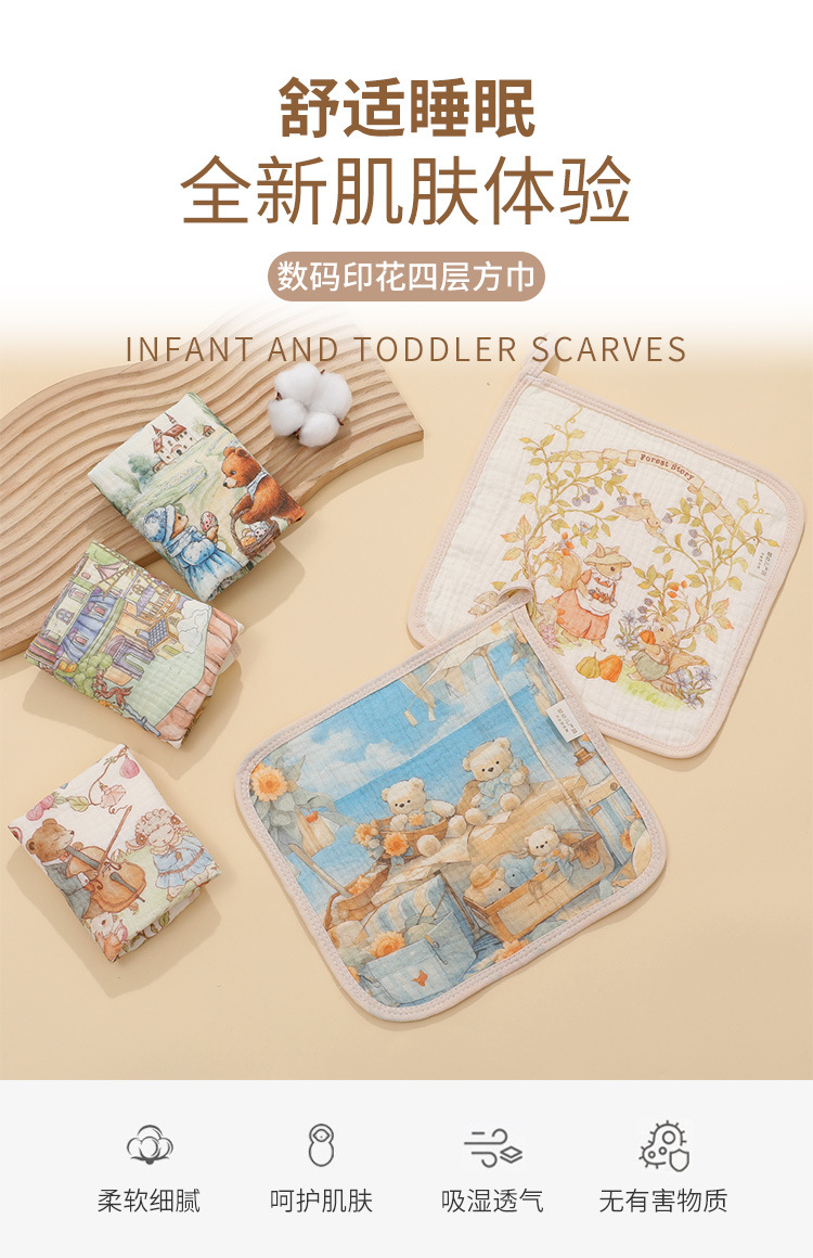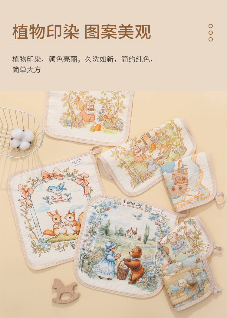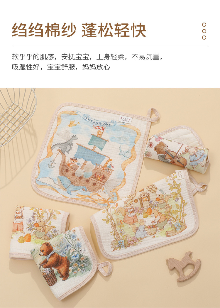4겹 거즈 수건 유치원 만화 어린이 수건 아기 세안 흡수 수건 손수건스토어 가기