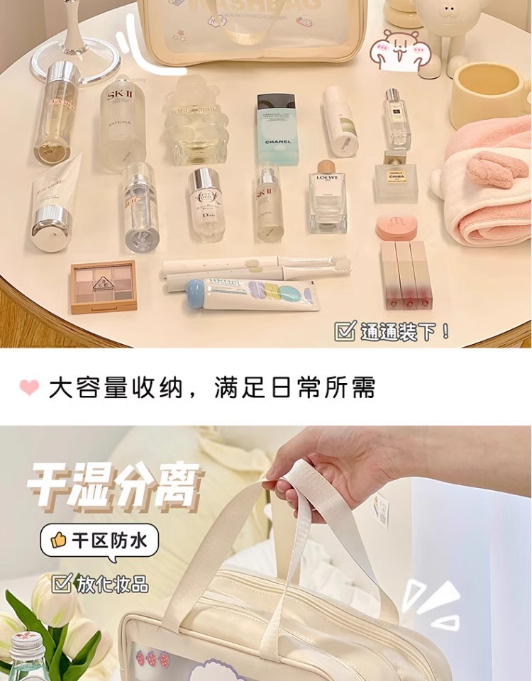 건조하고 젖은 별도의 화장품 가방 여행 화장실 가방 휴대용 여행 저장 스킨 케어 방수 화장품 가방 여성 투명스토어 가기