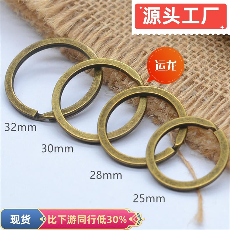 도매 매트 블랙 전기 영동 평면 링 플랫 링 배럴 도금 골드 키 링 골동품 구리 키 링 DIY 액세서리