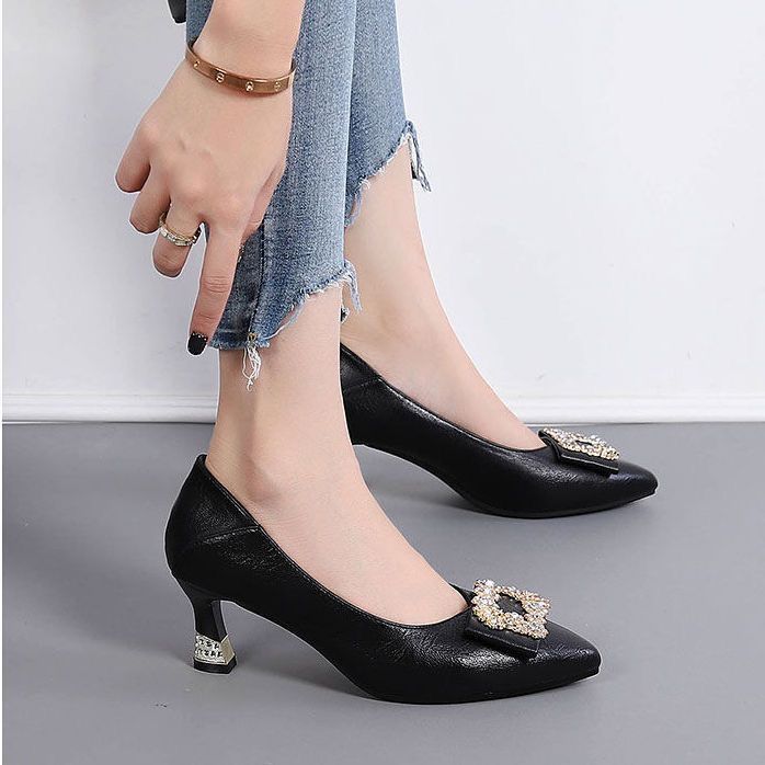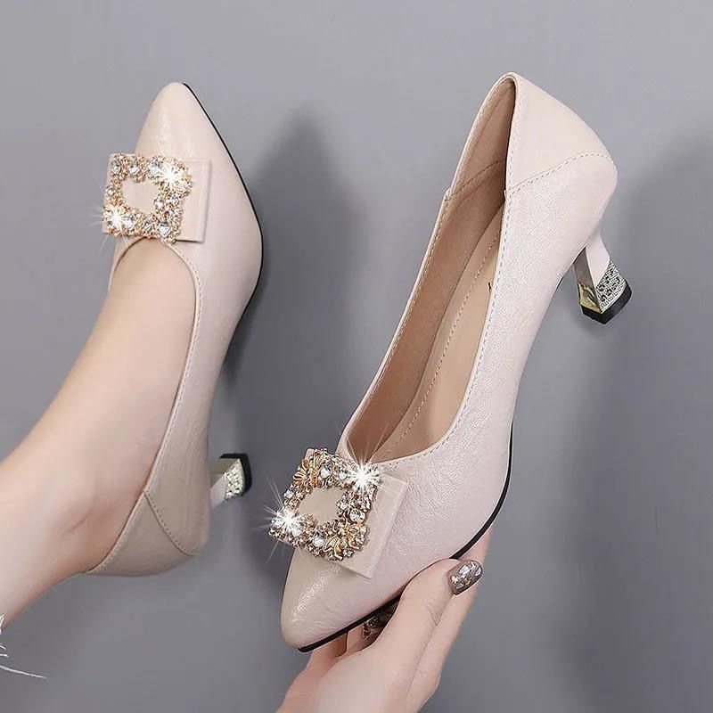 사각 버클 얕은 굽 여성 구두 2026 봄 가을 신상 중간 굽 두꺼운 굽 작업화 물방울 장식 패션 전문 하이힐 여성용스토어 가기