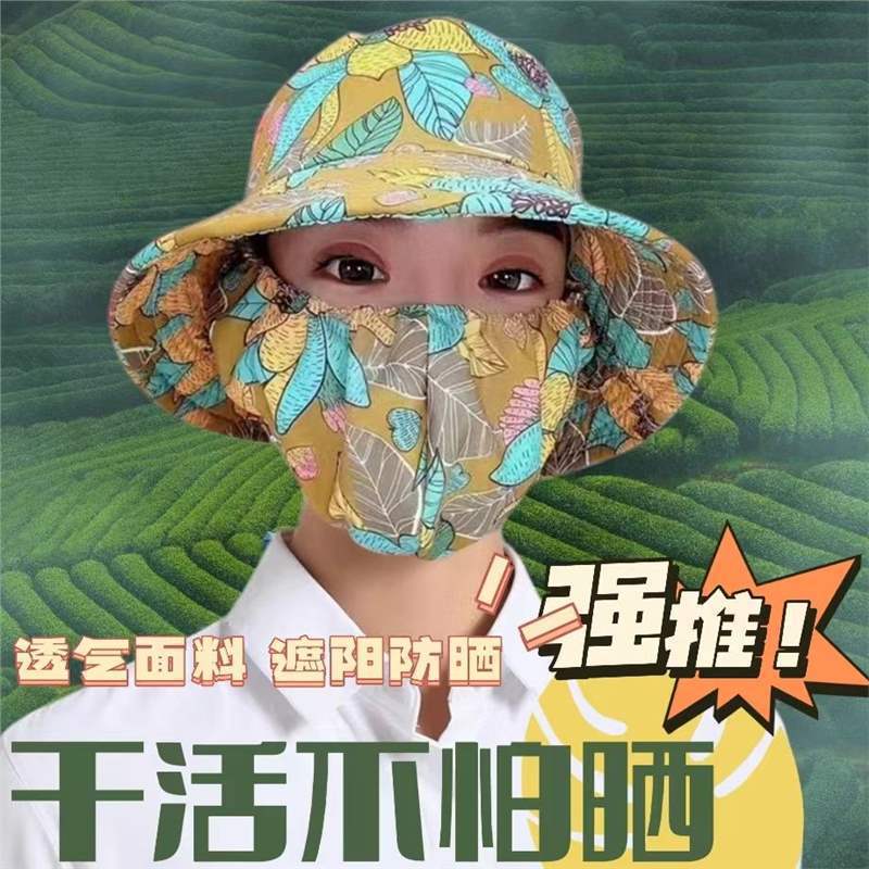 25 새로운 농업 모자 마스크 통합 차 따기 차양 모자 작업 목도리 여름 통기성 어부 모자 선 스크린