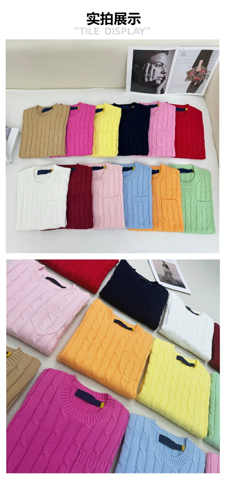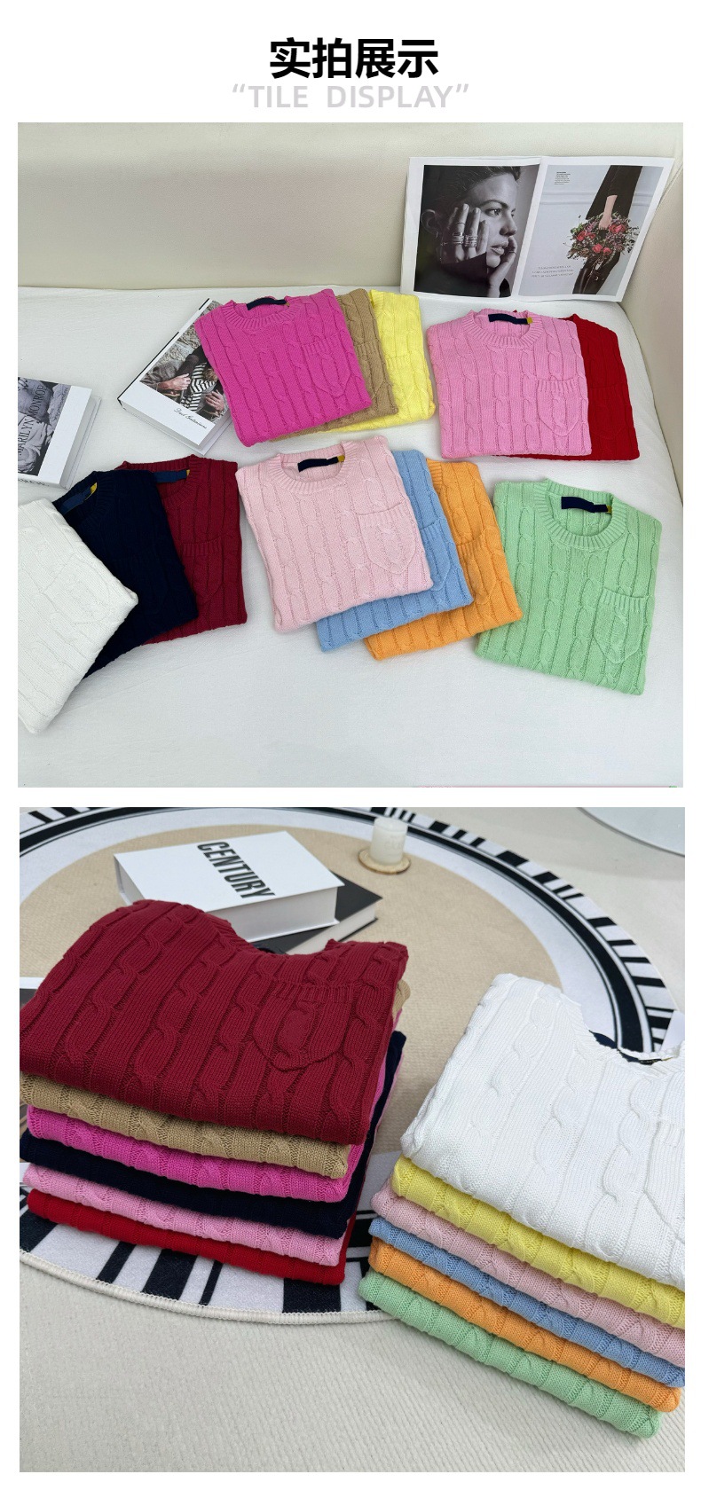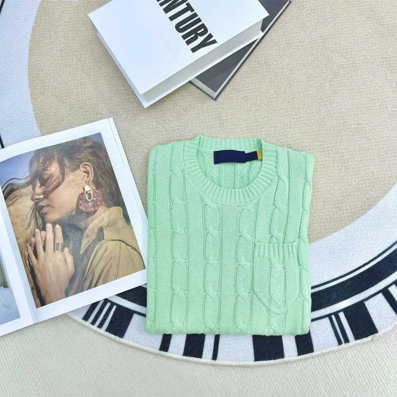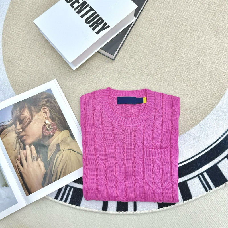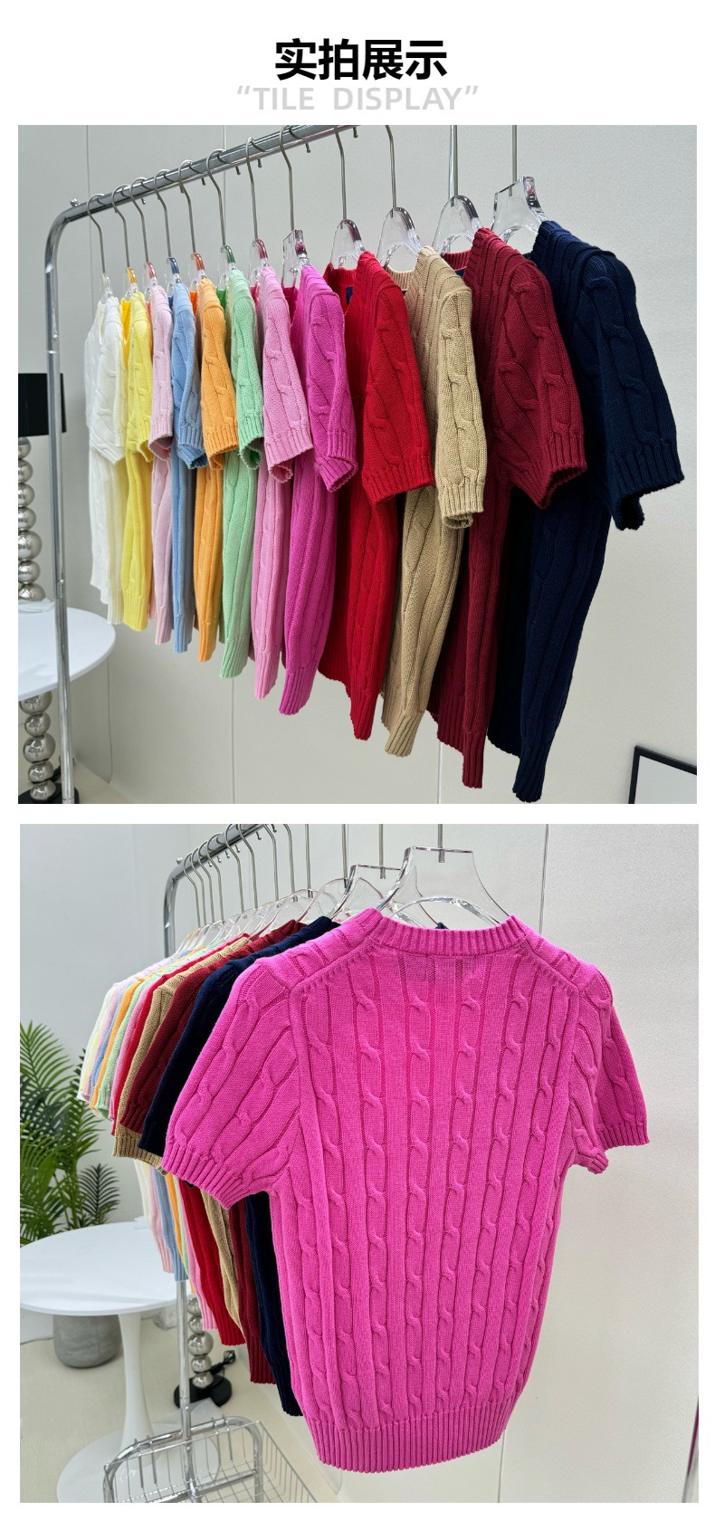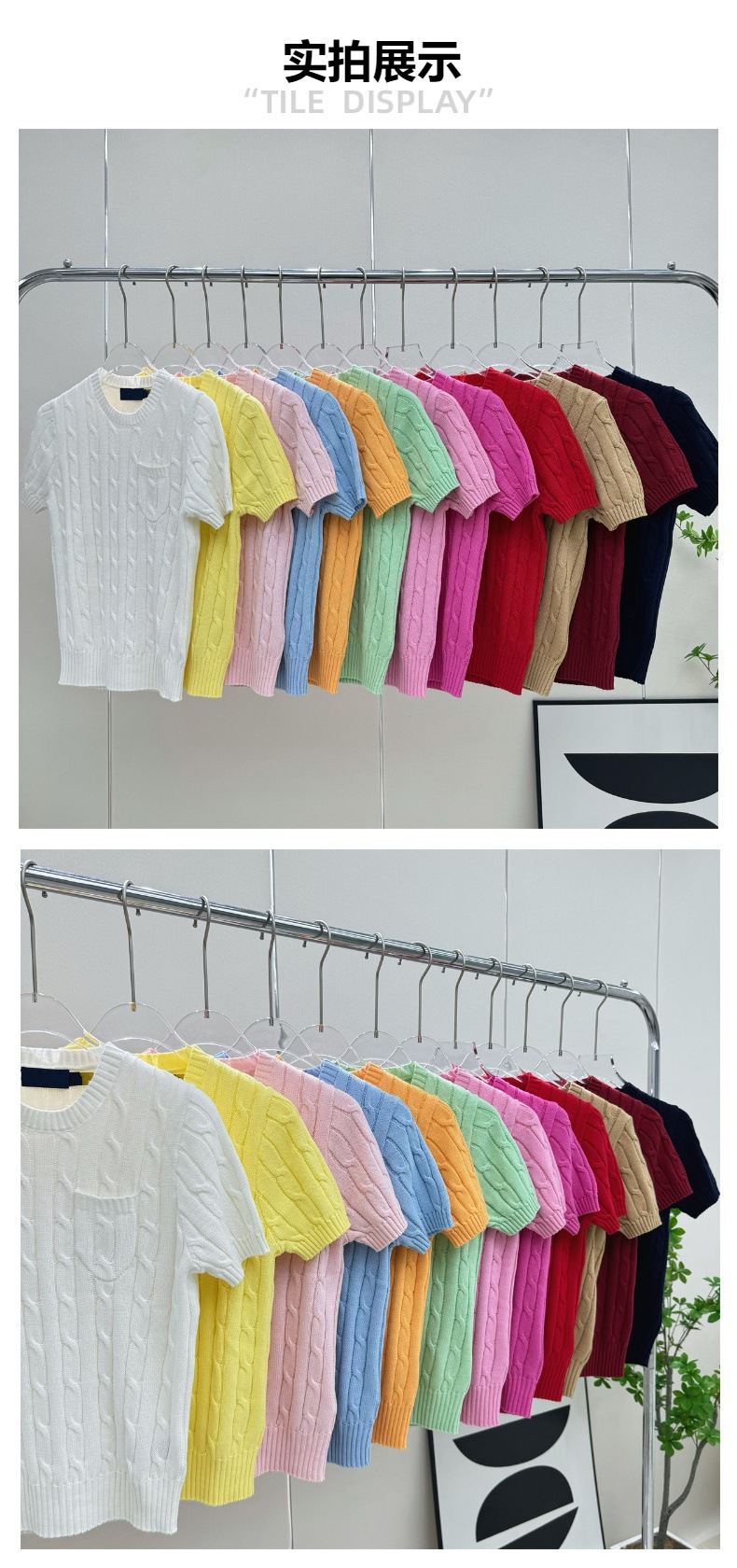 RL 랄프 포니 둥근 목 반팔 니트 셔츠 포켓 탑 슬림-적합 여성용스토어 가기