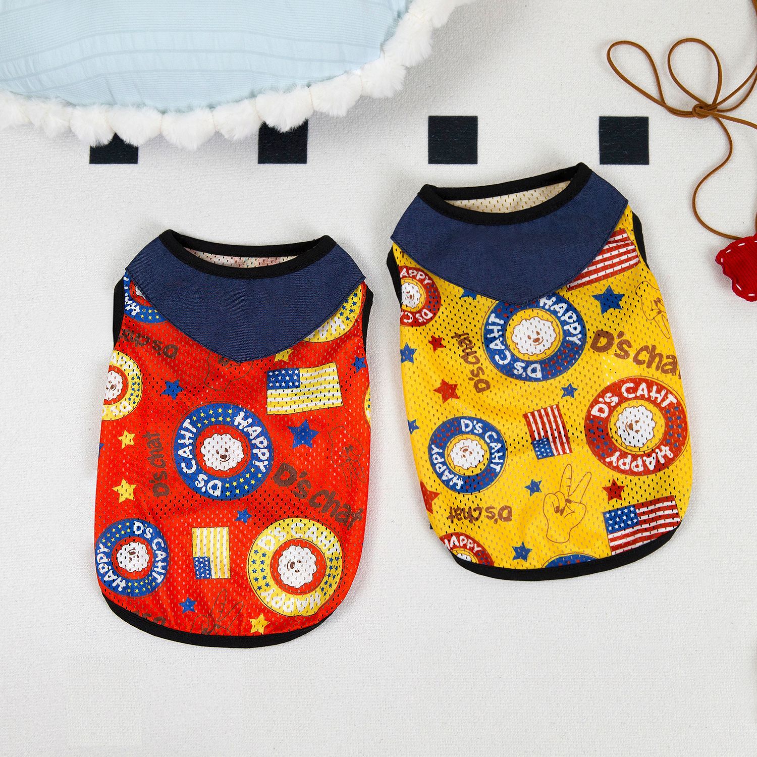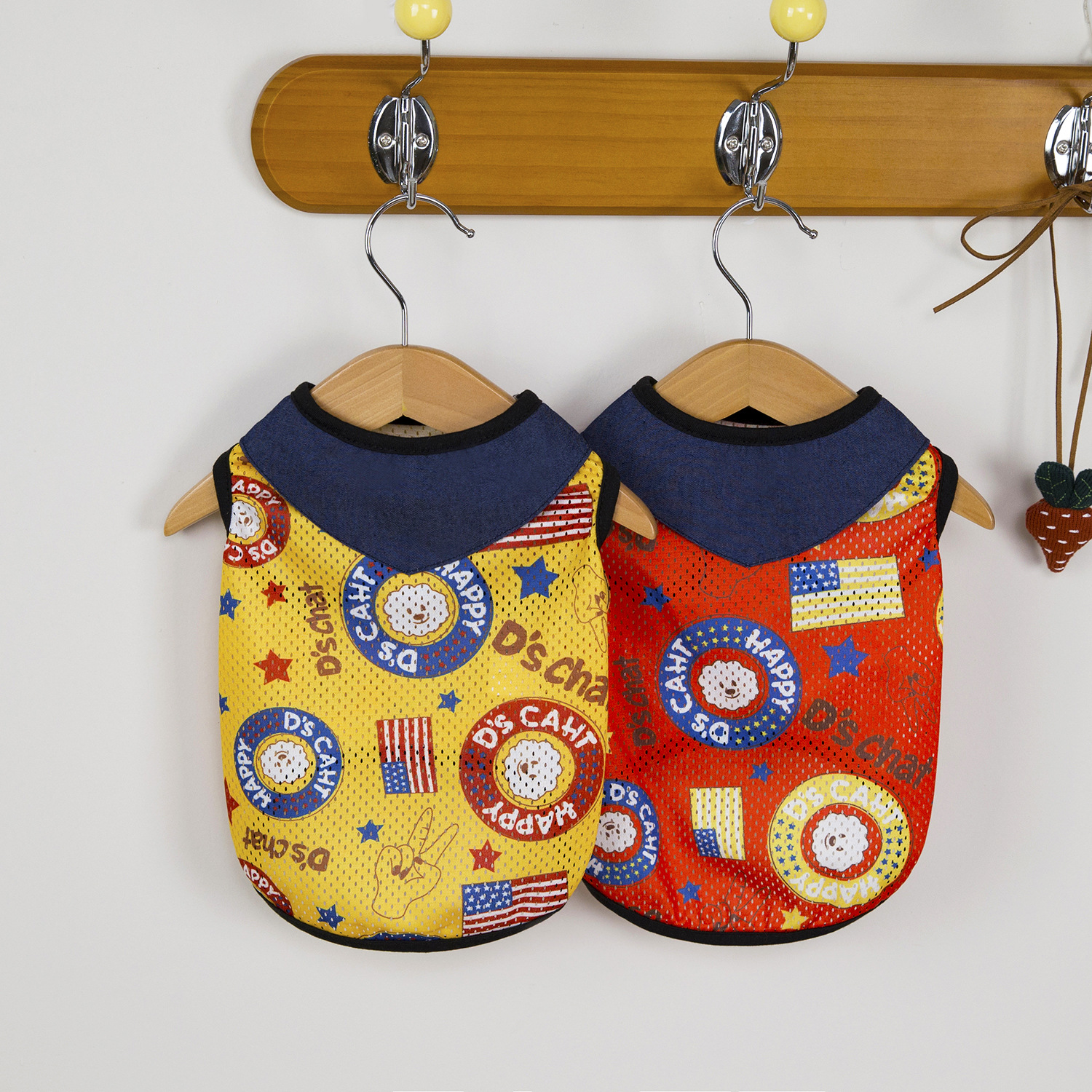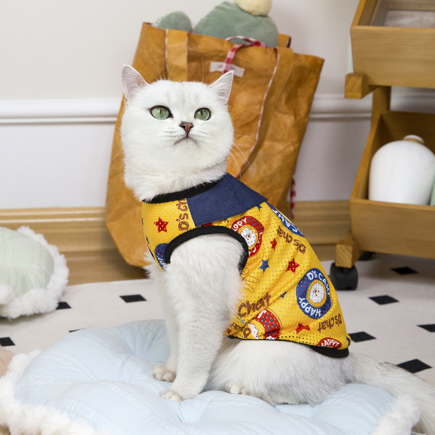 애완 동물 고양이와 개 봄과 여름 얇은 통기성 조끼 테디 비터 팬더 고양이 여름 개 옷 스카프 만화 의류스토어 가기