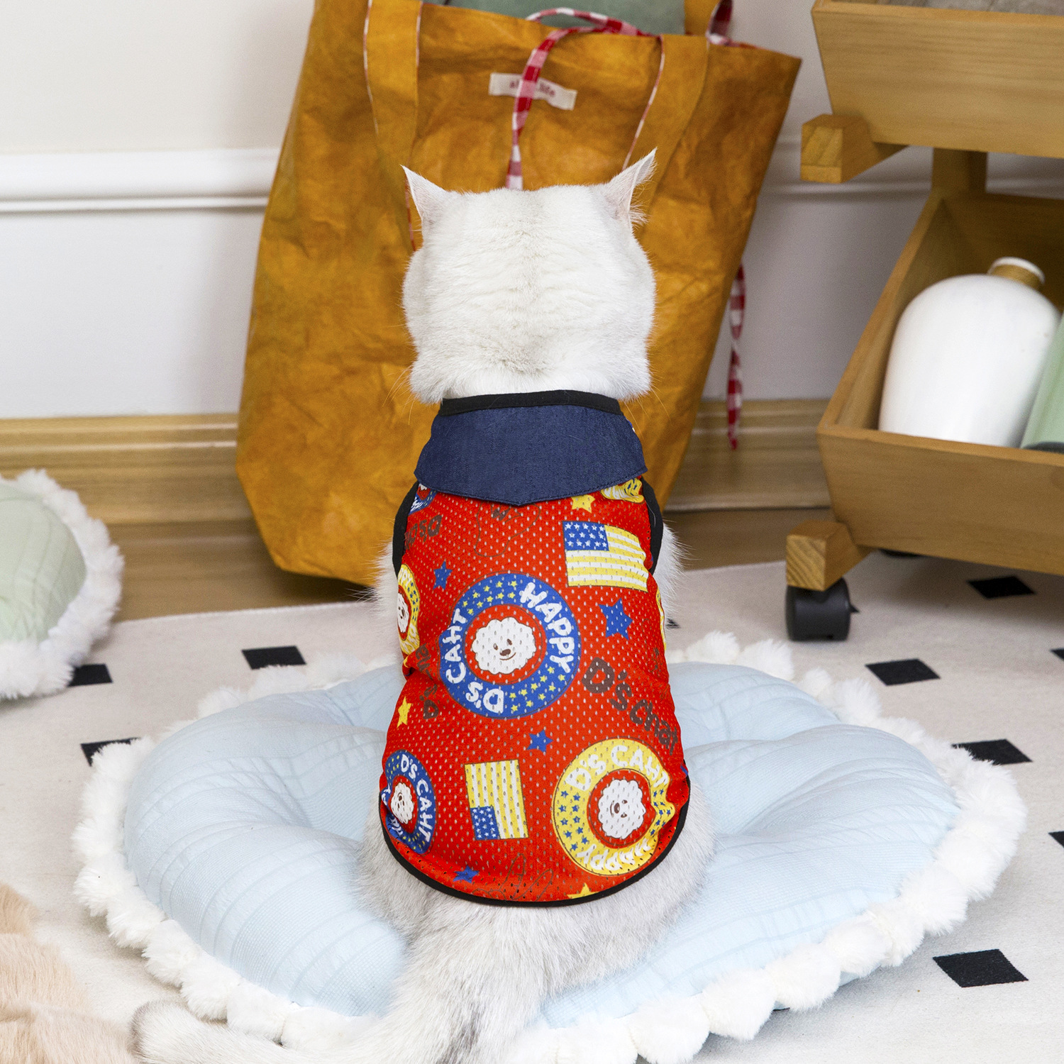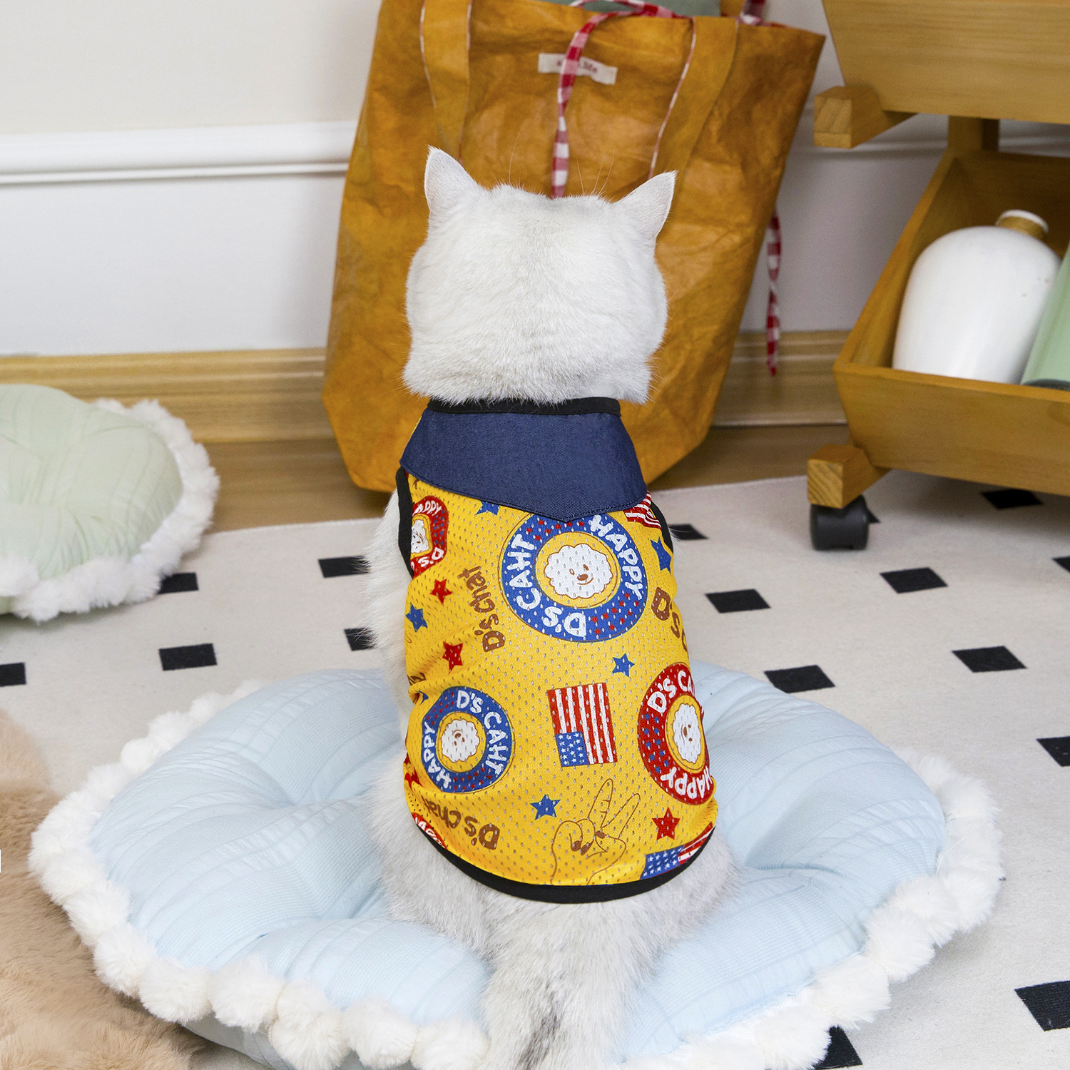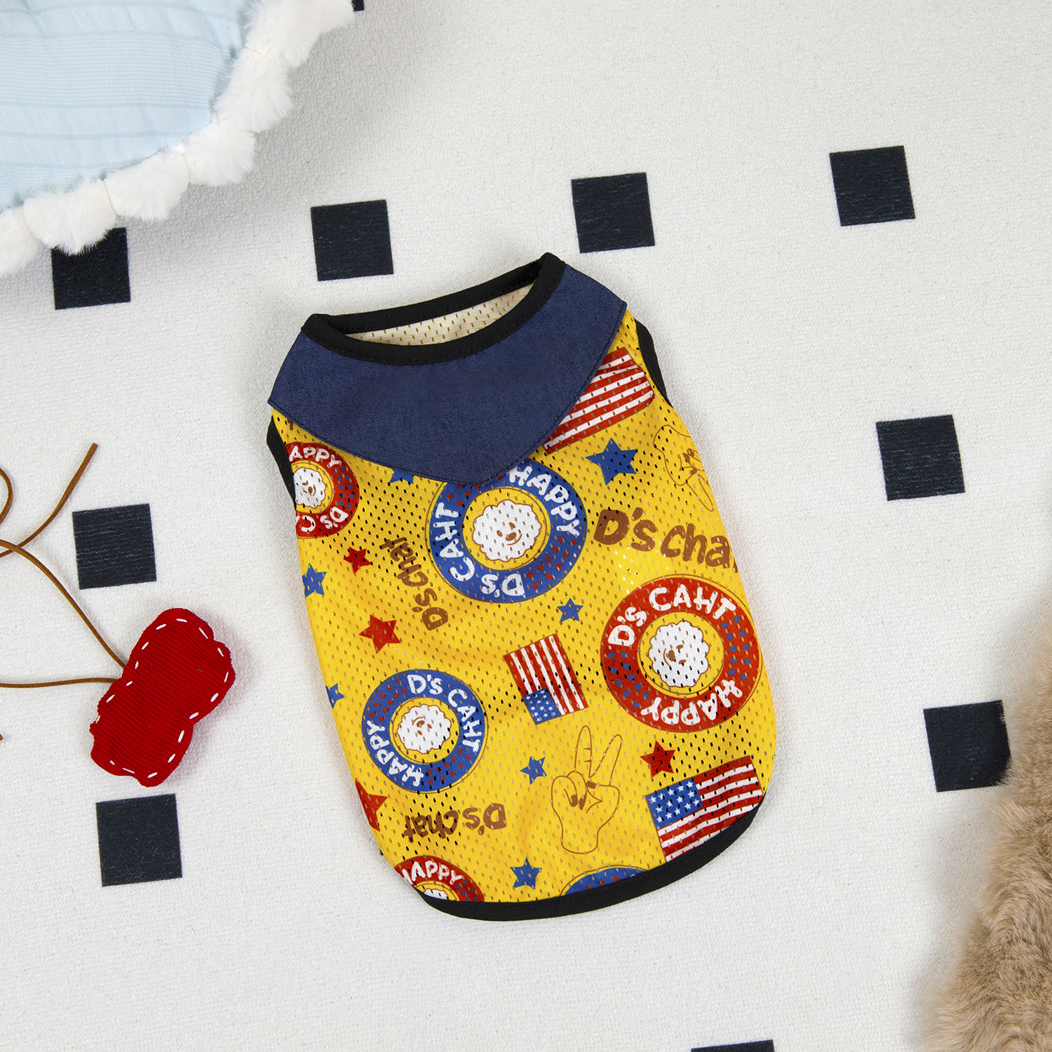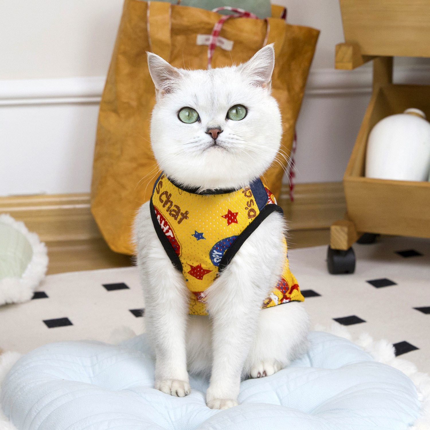 애완 동물 고양이와 개 봄과 여름 얇은 통기성 조끼 테디 비터 팬더 고양이 여름 개 옷 스카프 만화 의류스토어 가기