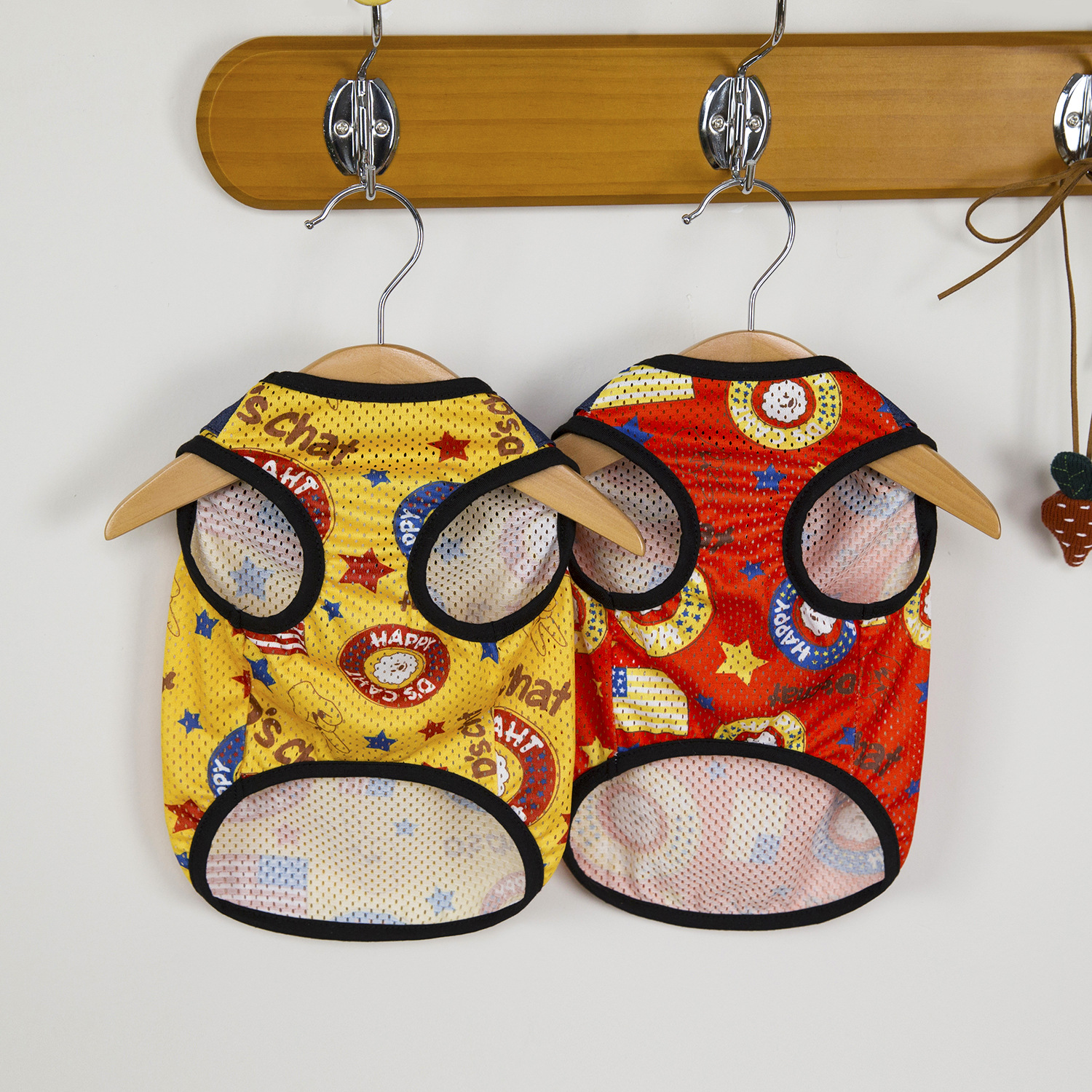 애완 동물 고양이와 개 봄과 여름 얇은 통기성 조끼 테디 비터 팬더 고양이 여름 개 옷 스카프 만화 의류