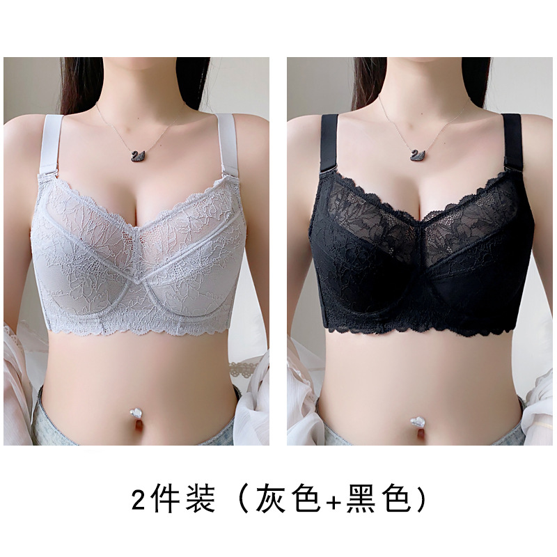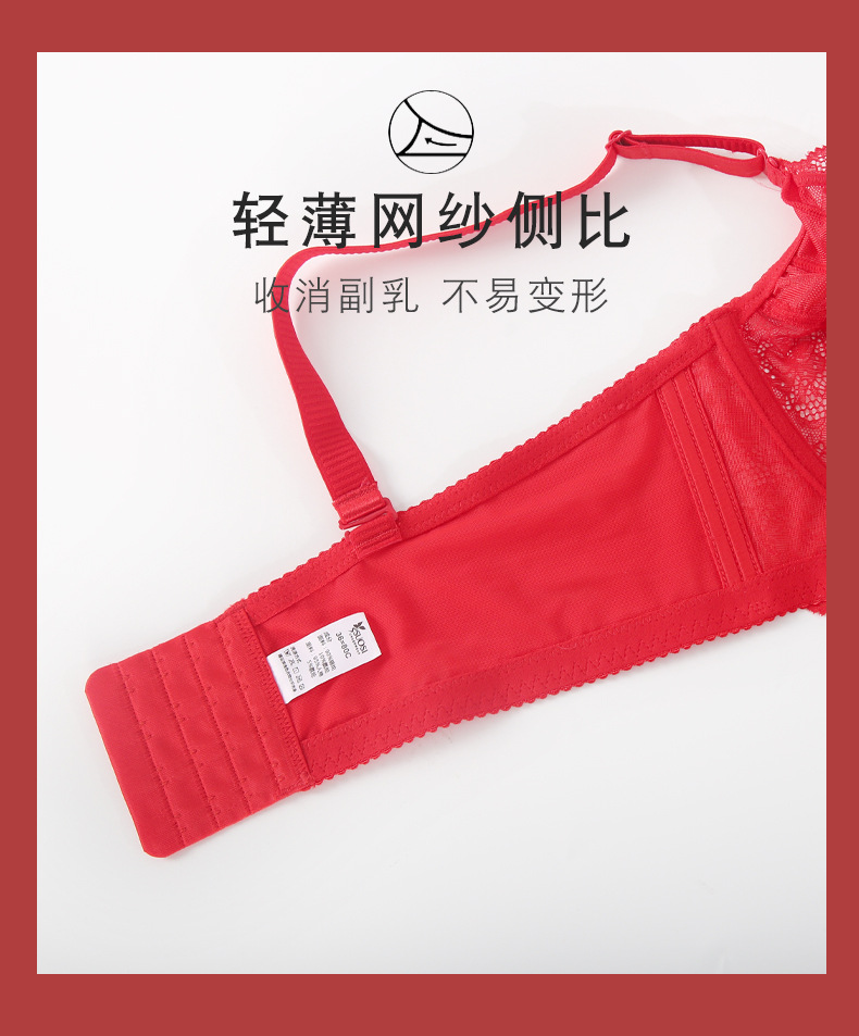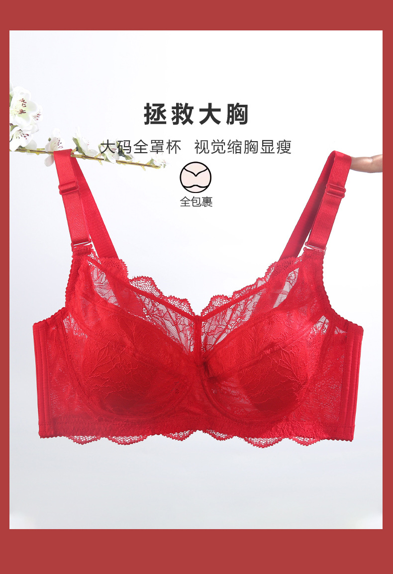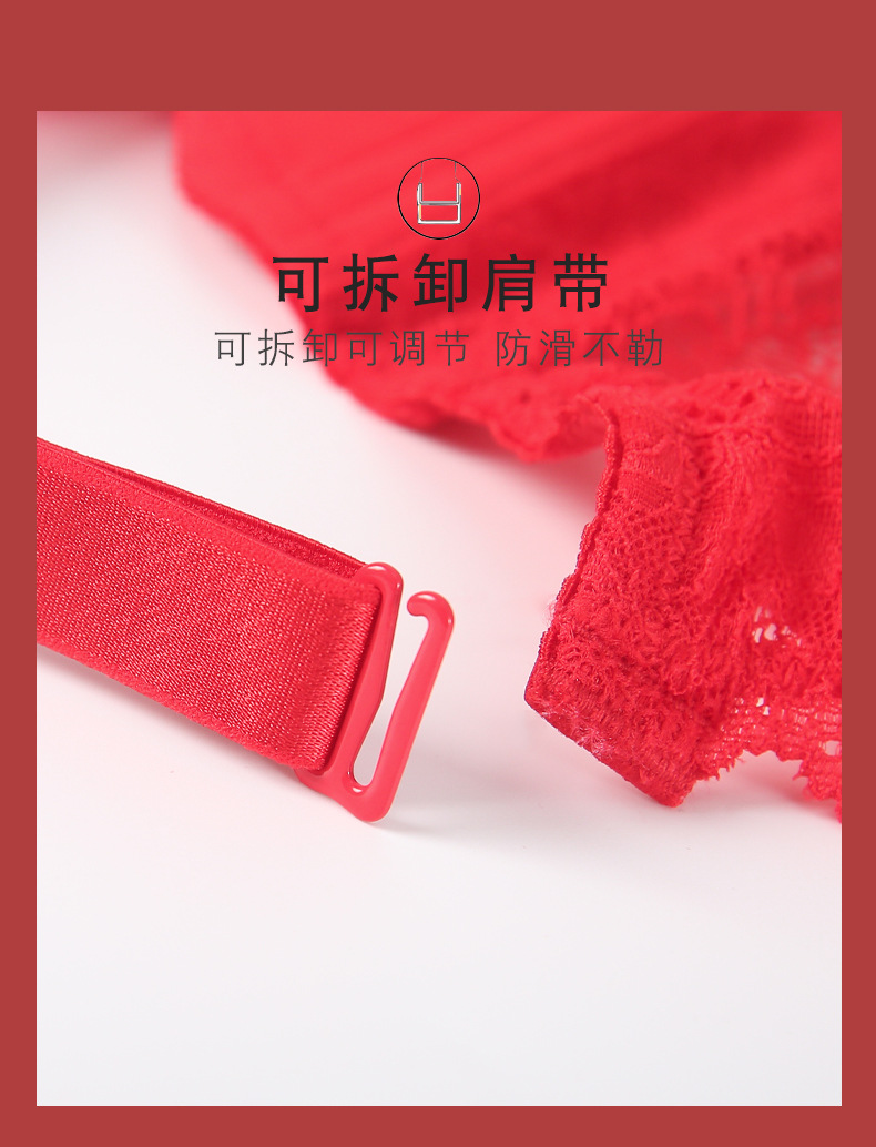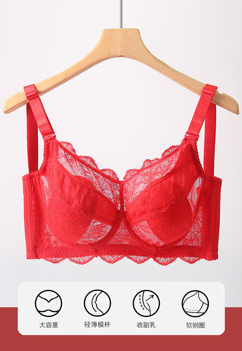 토끼 귀 연탄 빨간 속옷 여성 세트 큰 가슴 작은 얇은 결혼식 신부 레이스 울트라 얇은 브래지어스토어 가기