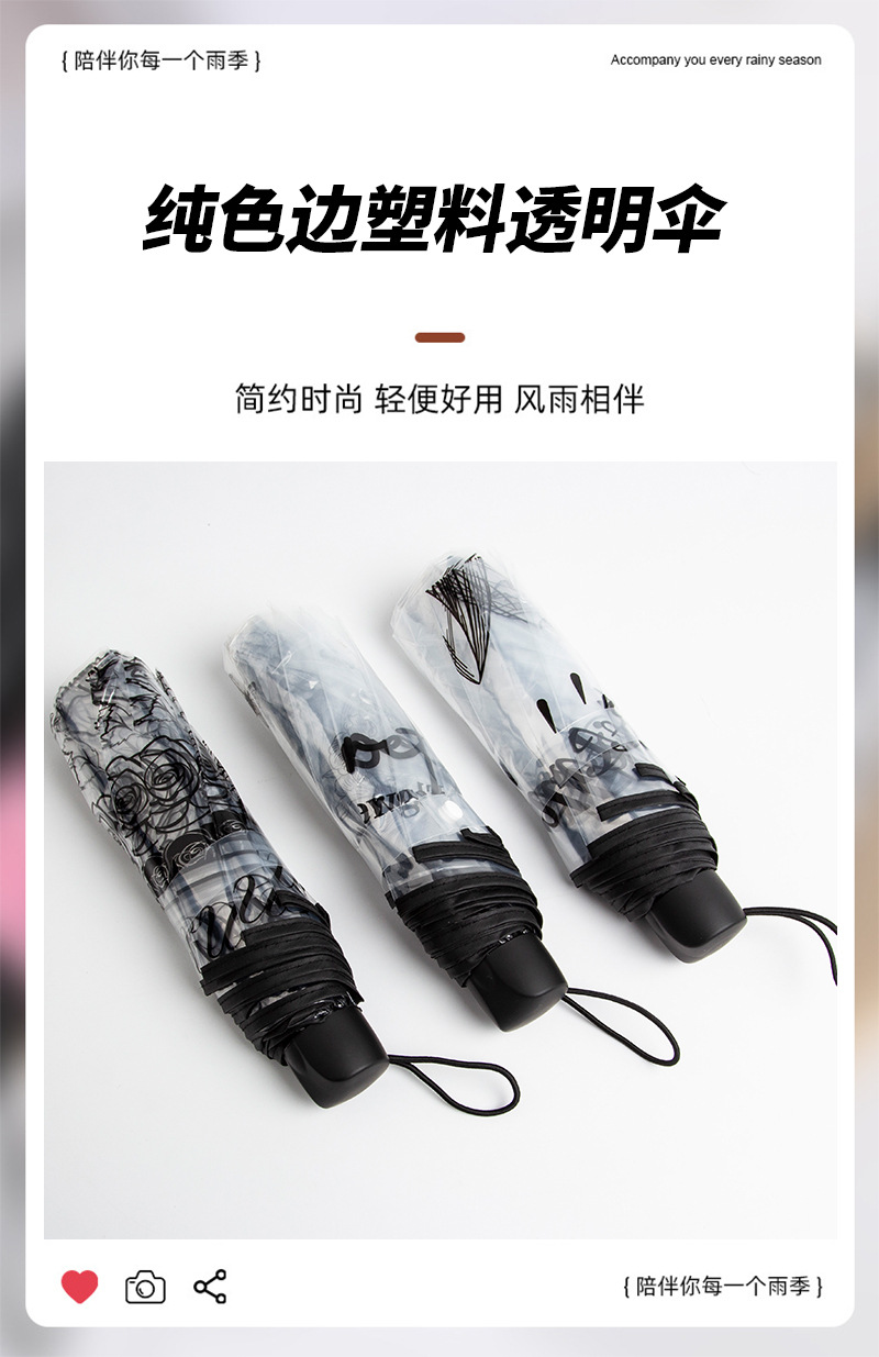 자동 접히는 우산 패션 높은 색 가치 로즈 인쇄 투명 맑고 비오는 우산 높은 색 가치 커플 우산스토어 가기