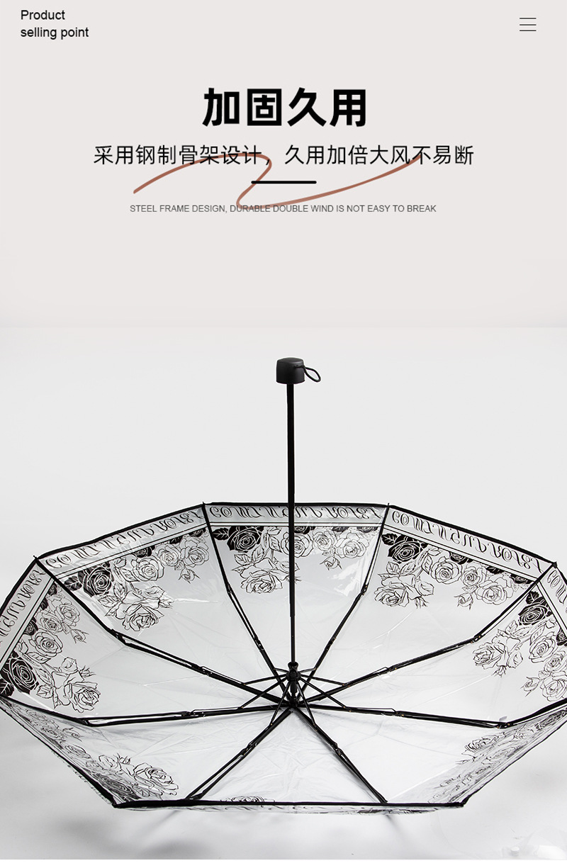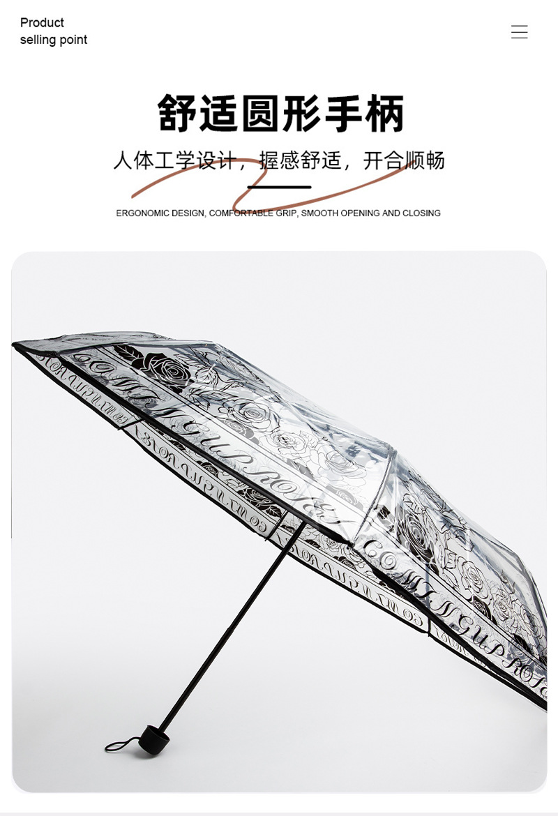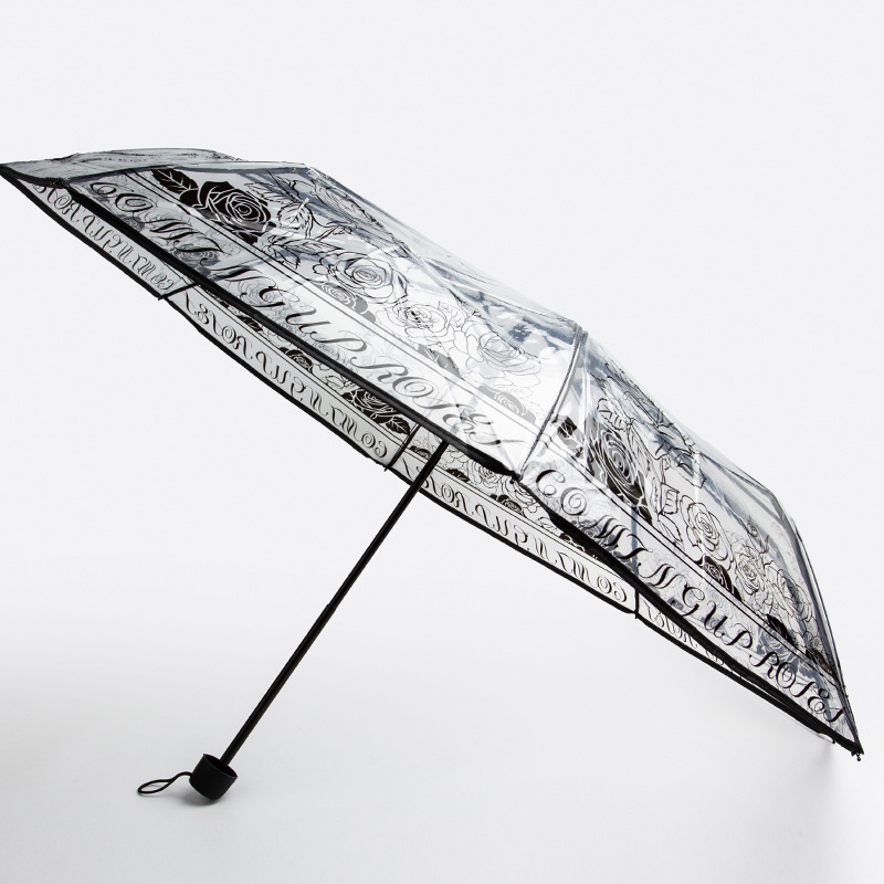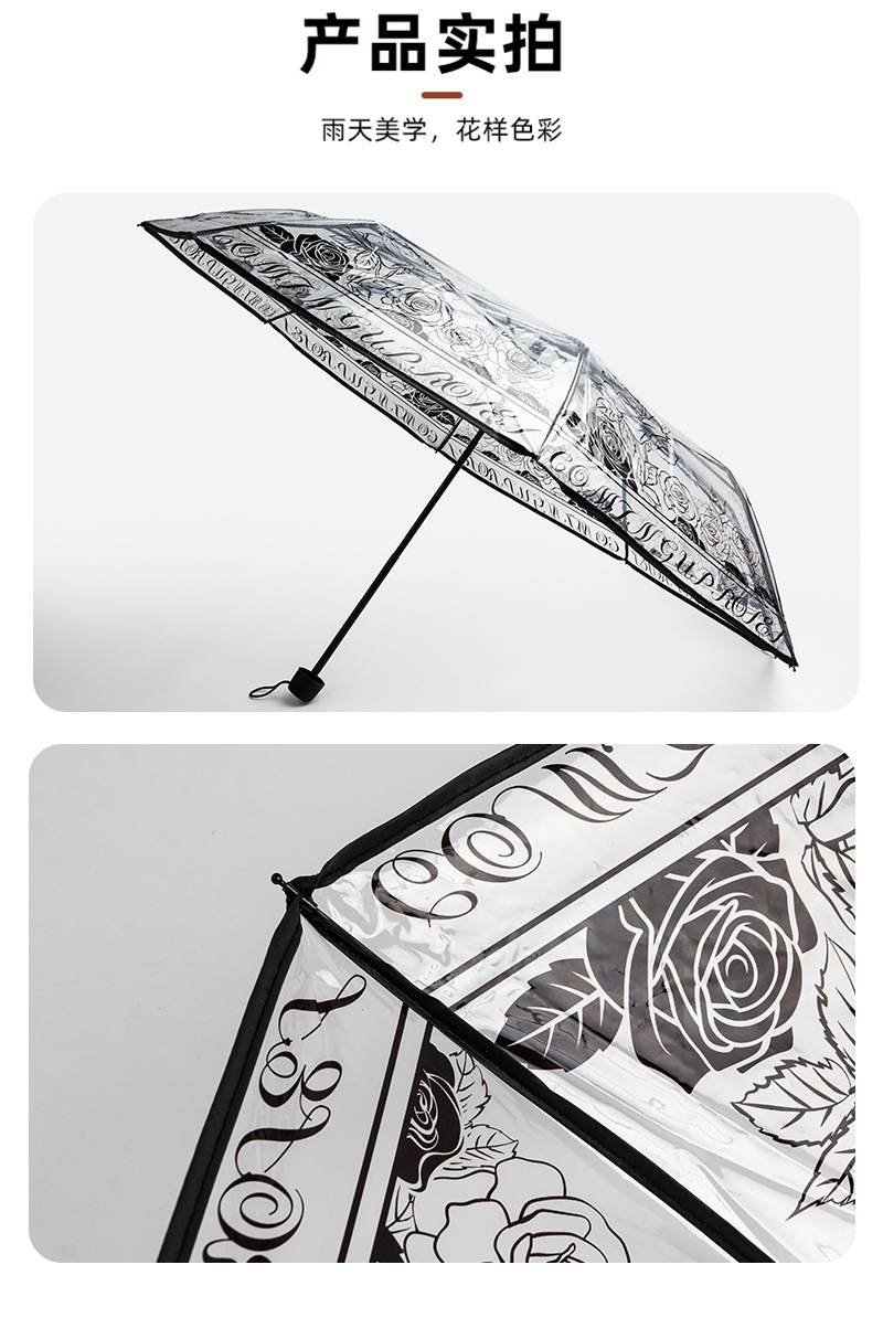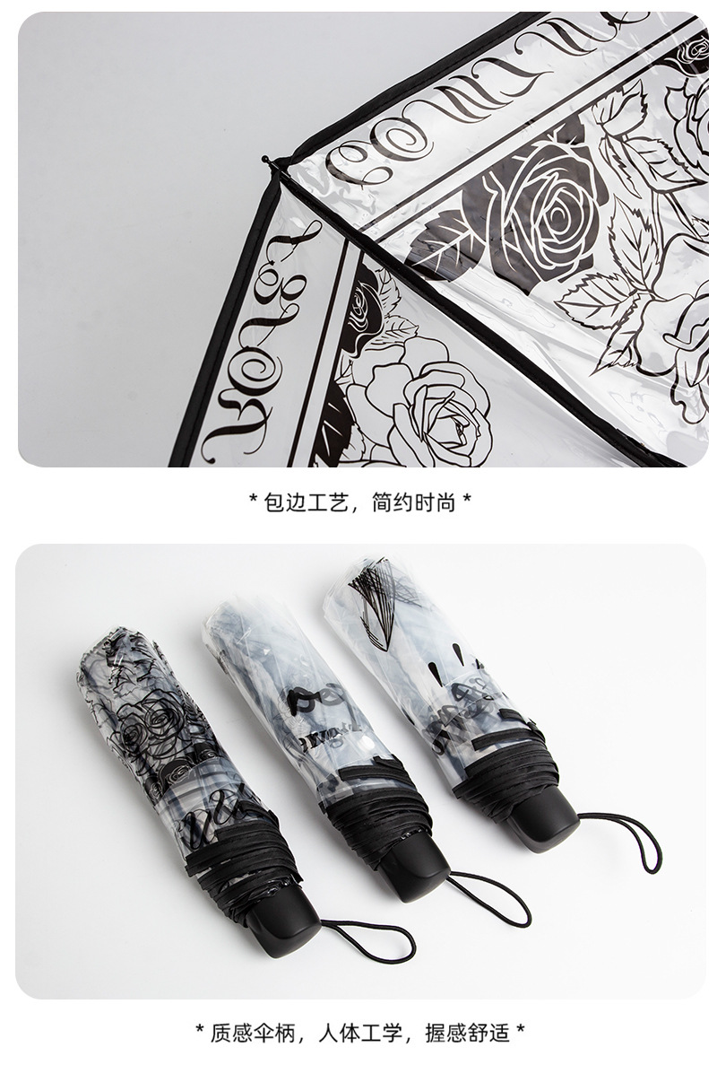 자동 접히는 우산 패션 높은 색 가치 로즈 인쇄 투명 맑고 비오는 우산 높은 색 가치 커플 우산