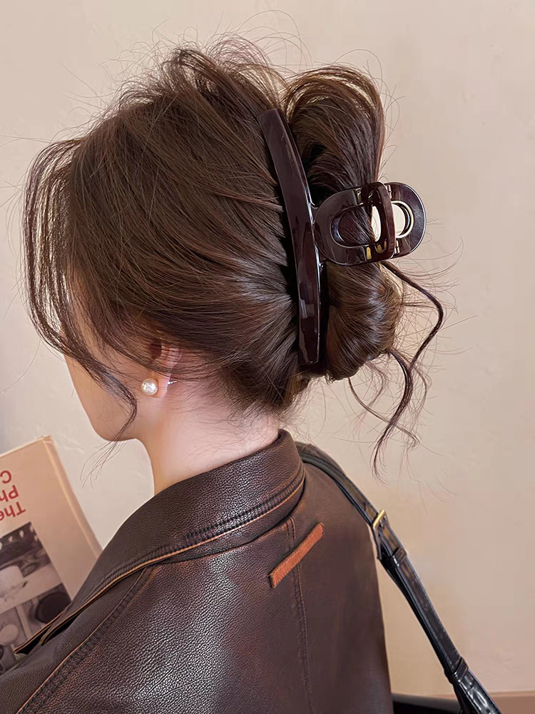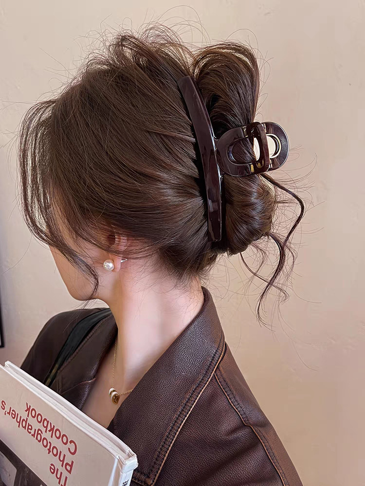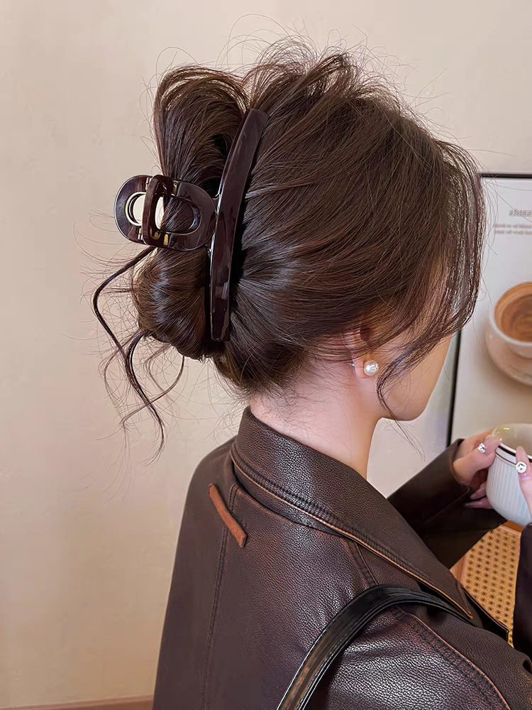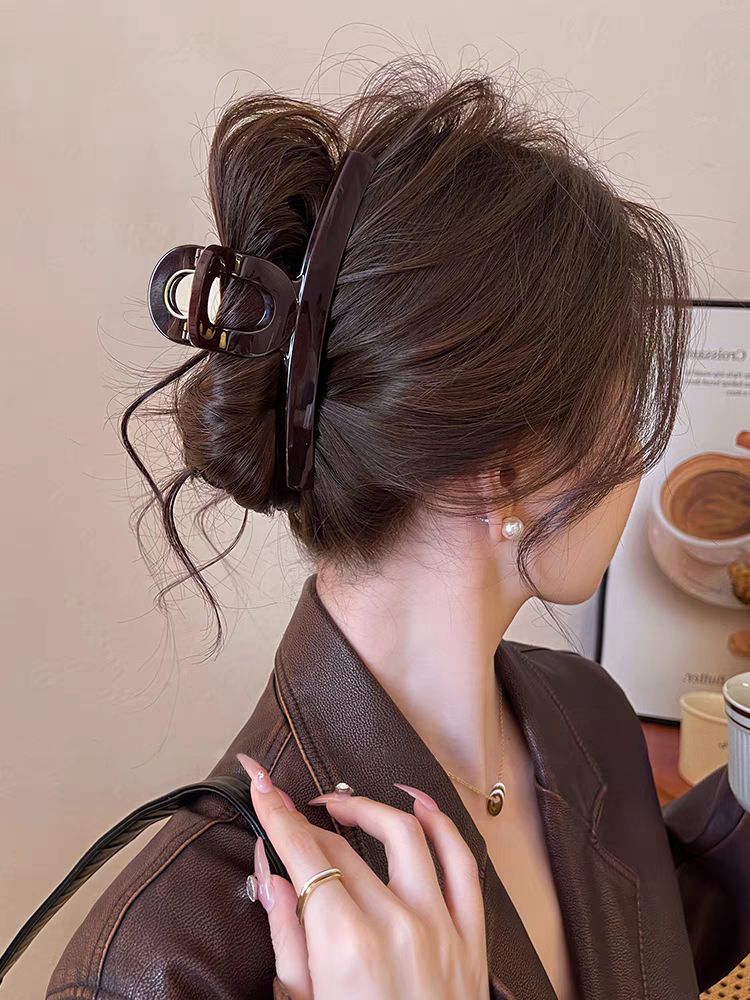 높은 감각 초콜릿 다크 브라운 단어 잡아 클립 큰 상어 클립 여성 헤어 클립 다시 2025 새로운 클립 도매
