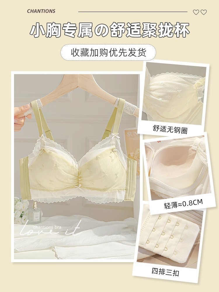여름 얇은 작은 가슴 푸시 업 속옷 레이스 가슴-큰 처짐 방지 파름 조정 가능한 비 림 브라