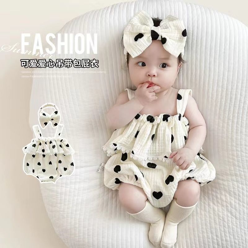 여름 멜빵 하 원피스 아기 패션 공주 결합 된 한국 여성 아기 가방 방귀 옷 다층 계란 도매