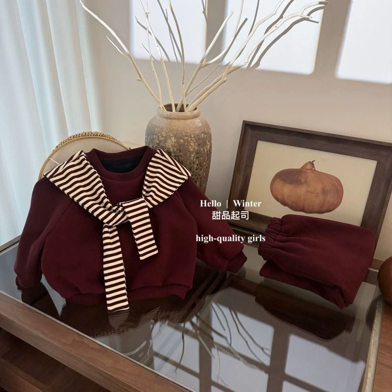 봄과 가을 소녀 세트 아기 서양식 어린이 성격 유행 한국 스타일 유행 인터넷 축하 줄무늬 목도리 스웨트 셔츠 스포츠 바지