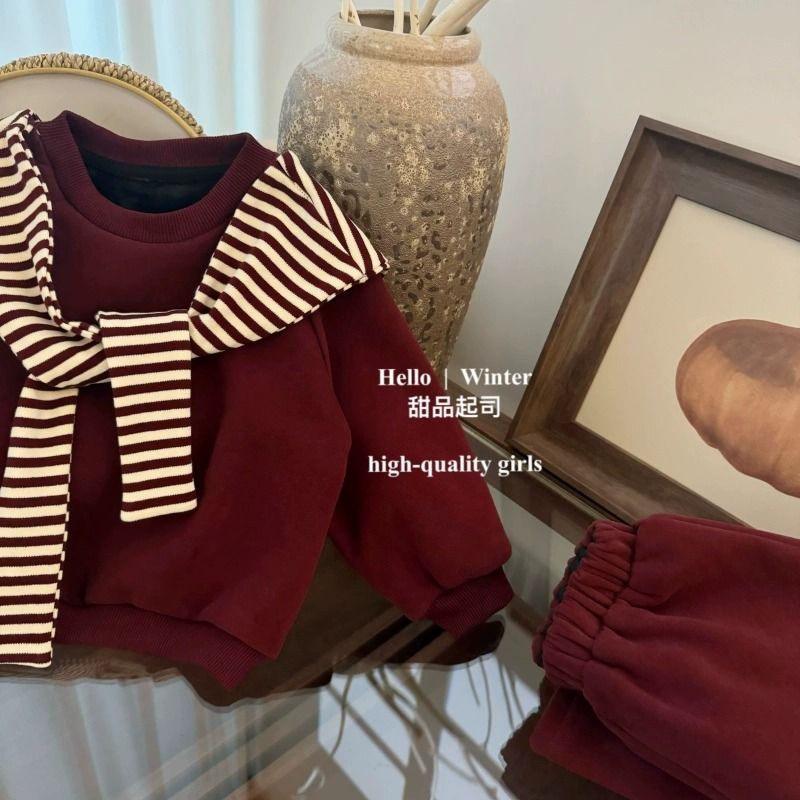 봄과 가을 소녀 세트 아기 서양식 어린이 성격 유행 한국 스타일 유행 인터넷 축하 줄무늬 목도리 스웨트 셔츠 스포츠 바지스토어 가기