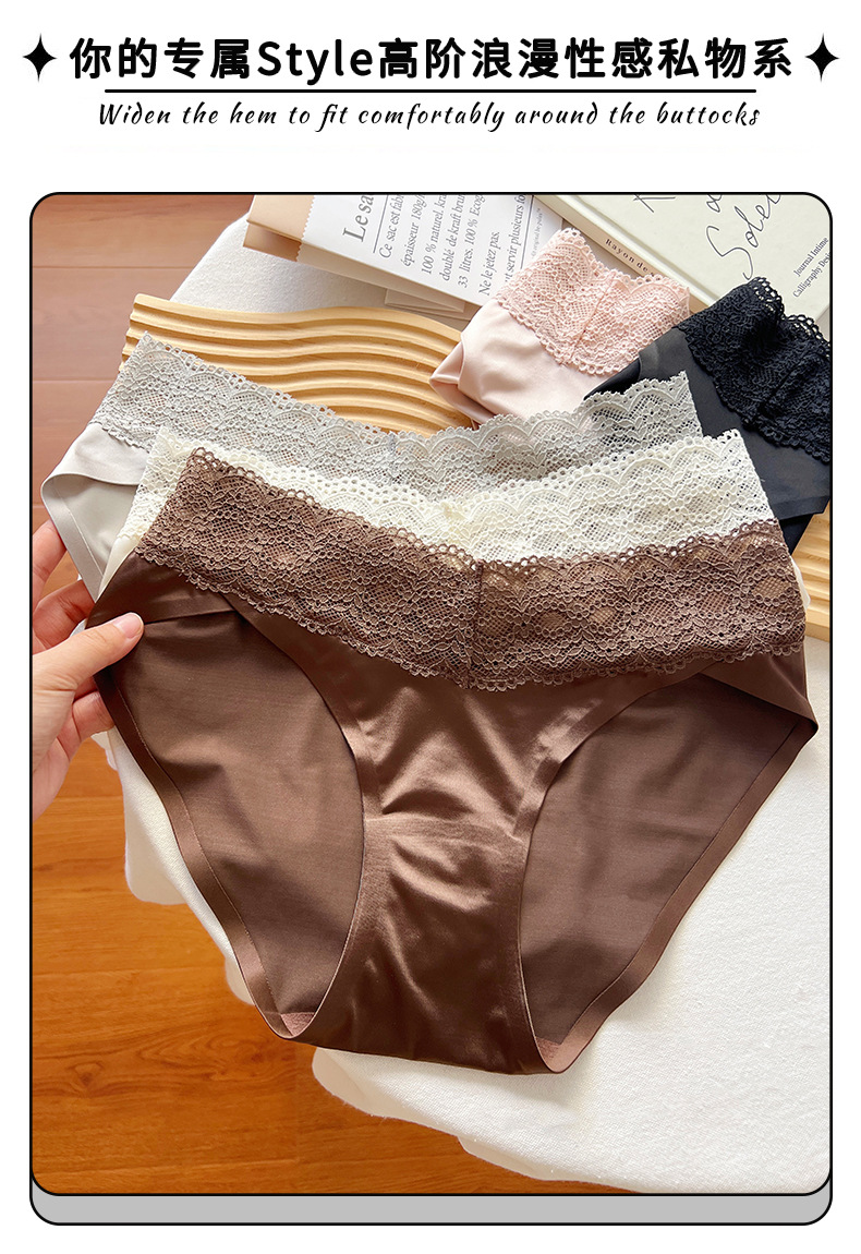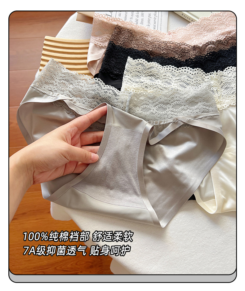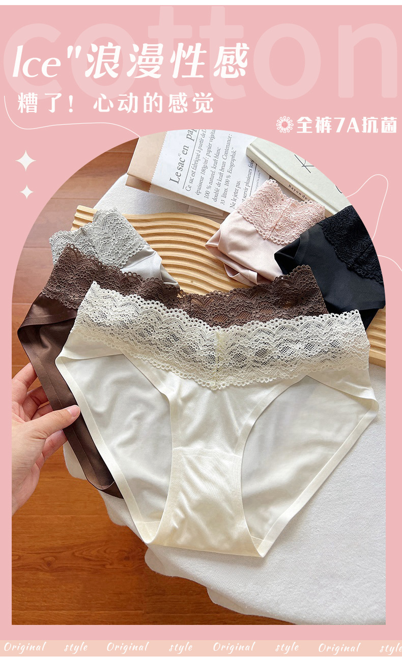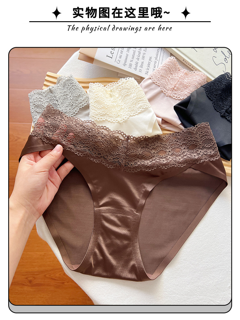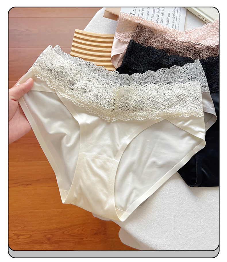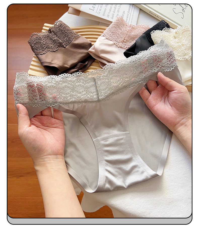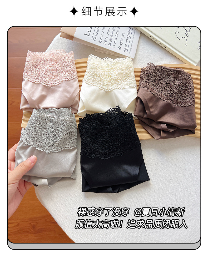 블랙 원활한 레이스 속옷 소녀 2025 새로운 섹시한 얇은 통기성 반바지 아이스 실크 항균 브리프 여성스토어 가기