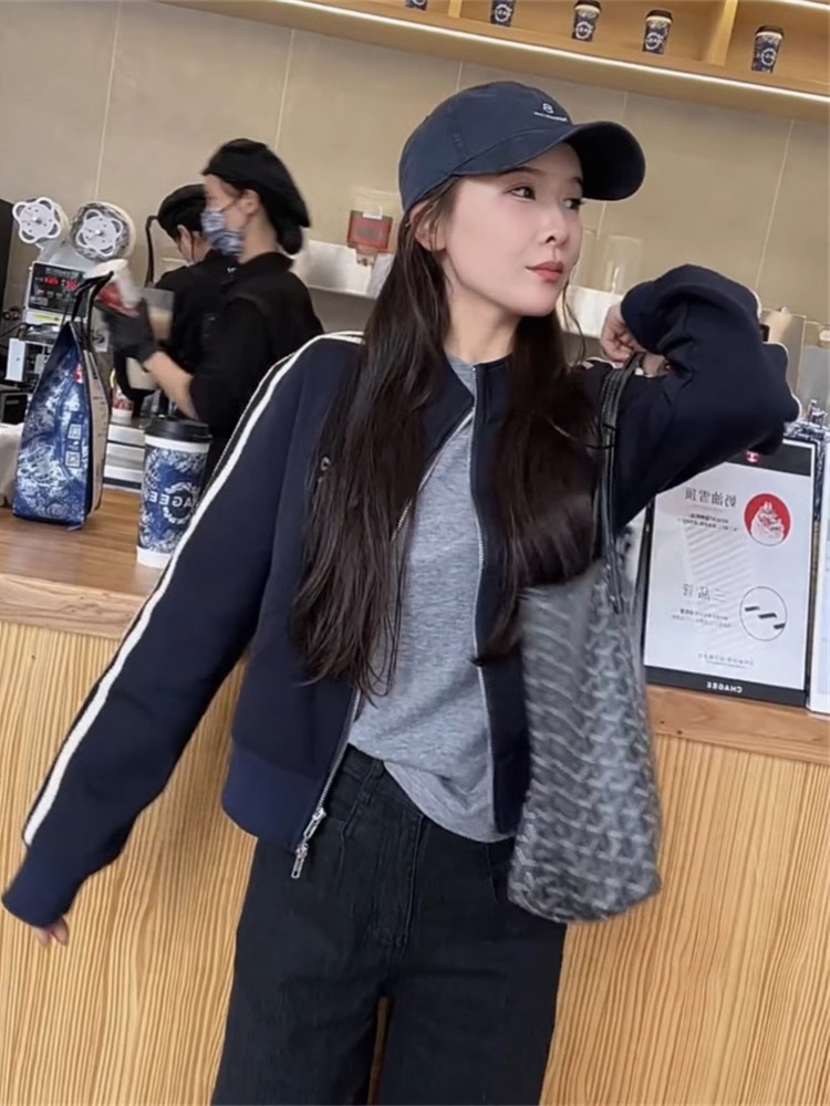 폭발 작은 짧은 야구 유니폼 스웨터 코트 여성의 2025 봄 새로운 캐주얼 패션 인기 재킷 탑스토어 가기
