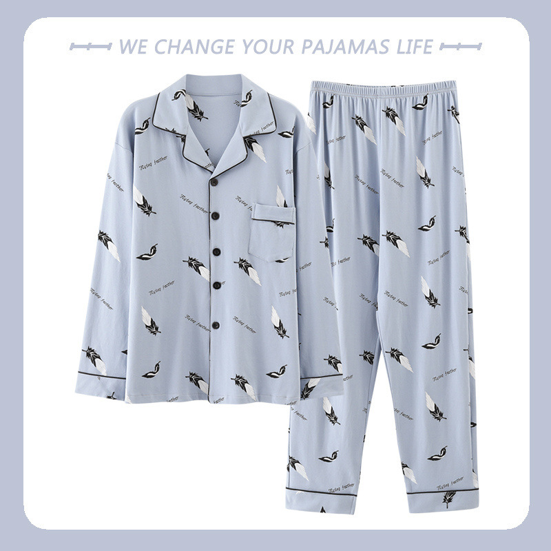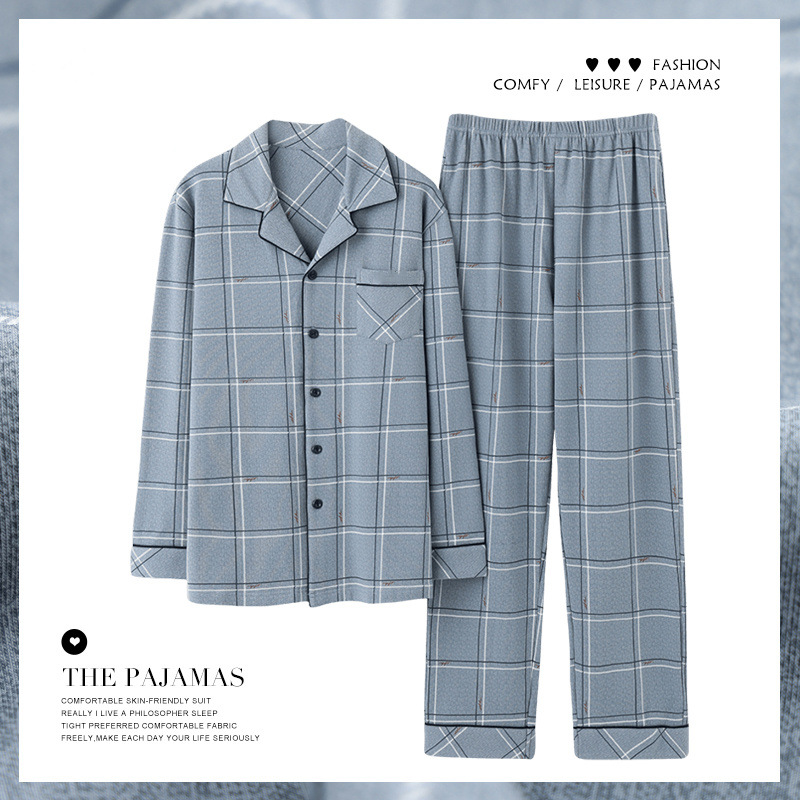남자 잠옷 긴팔 봄 가을 겨울 면화 간단한 느슨한 플러스 사이즈 청소년 남성 세트 겉옷