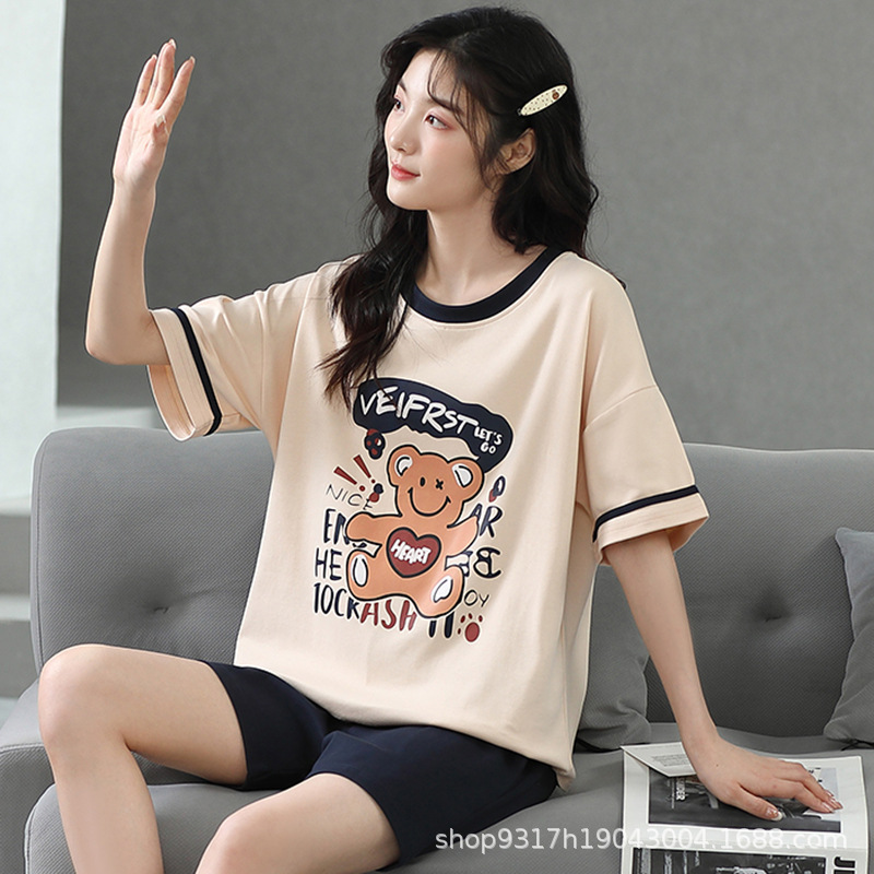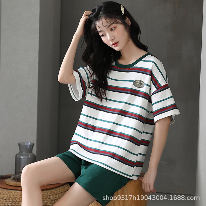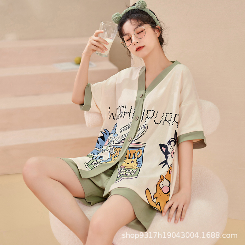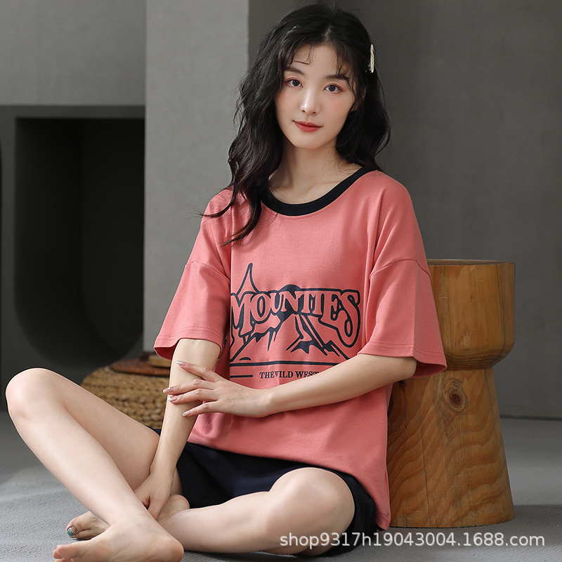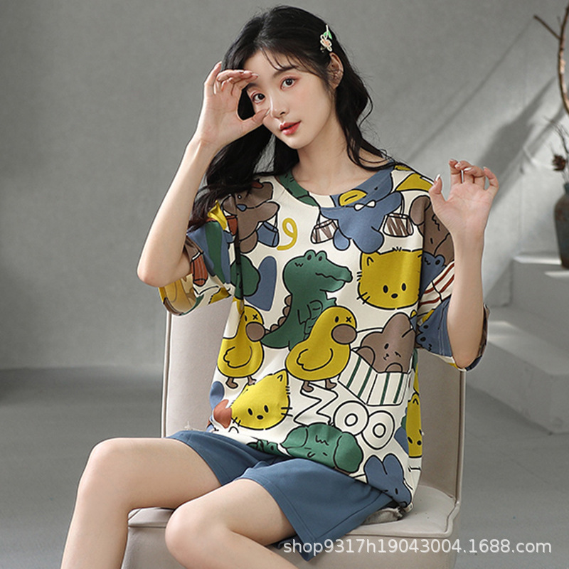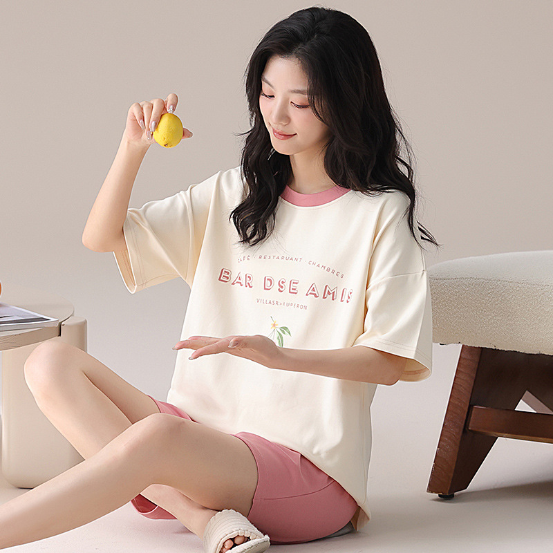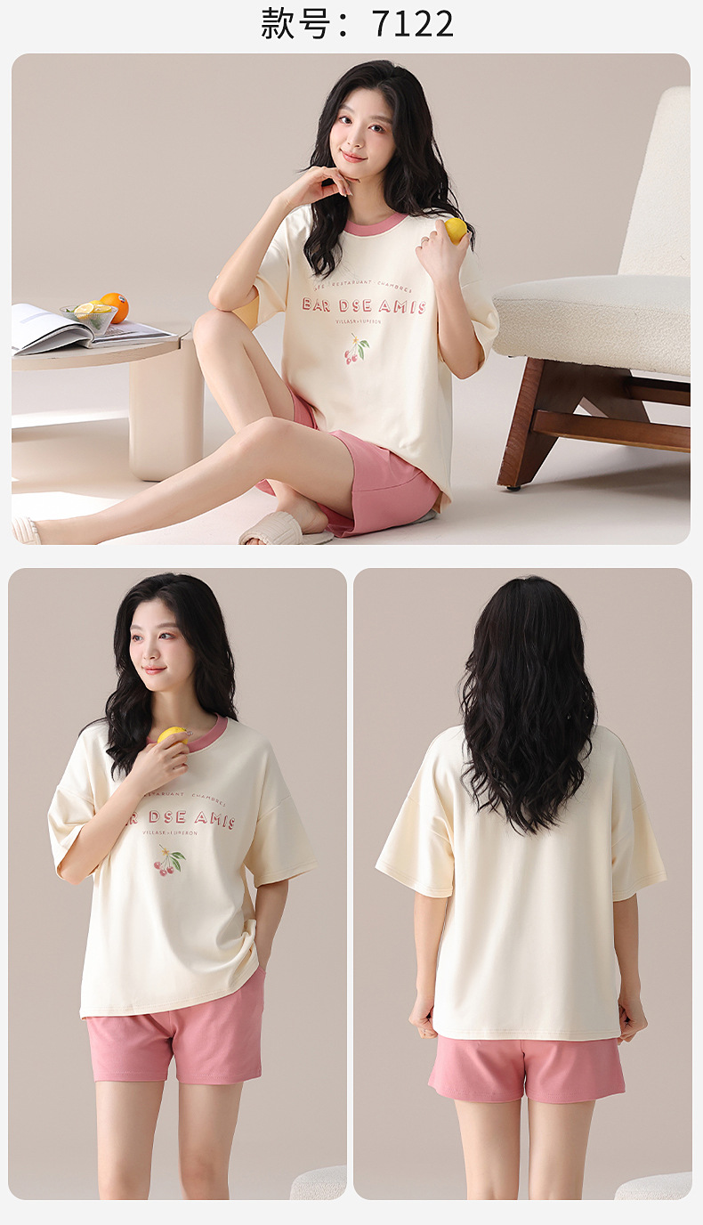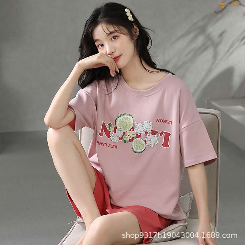 과일 잠옷 여성 여름 순면 반팔 반바지 달콤한 얇은 순수 면 캐주얼 학생 홈 의류 세트 여성스토어 가기