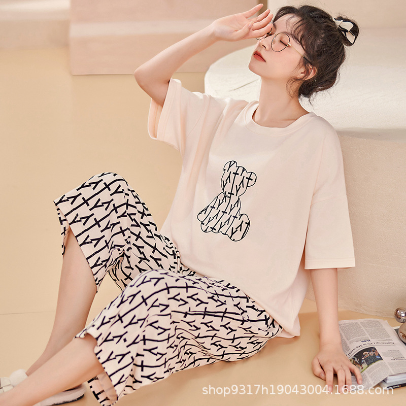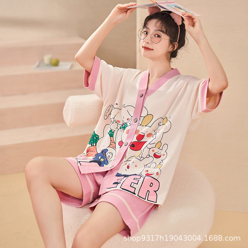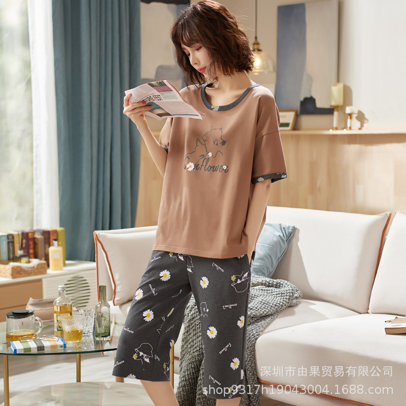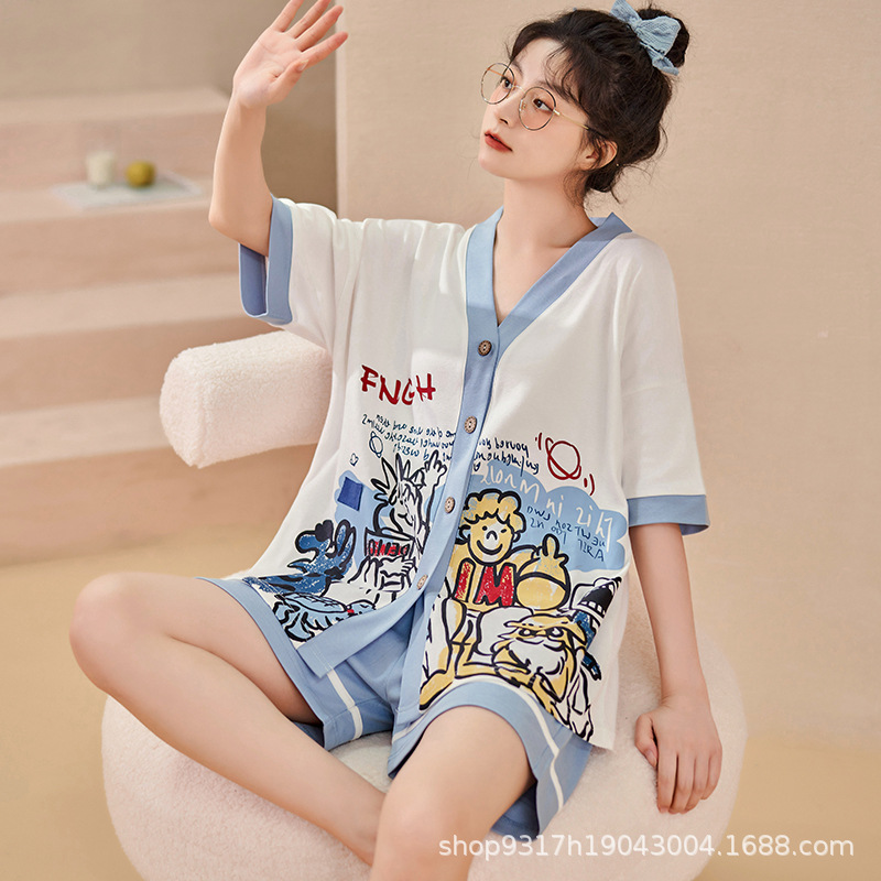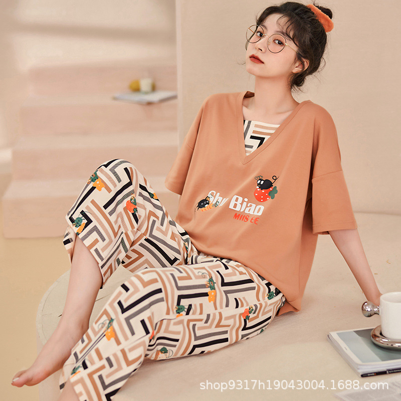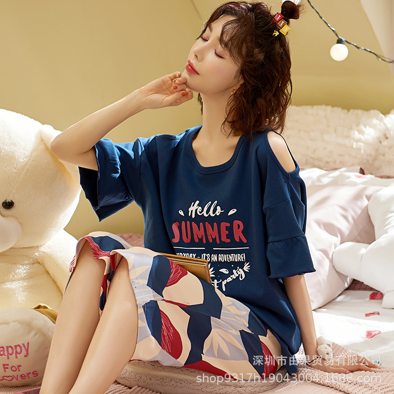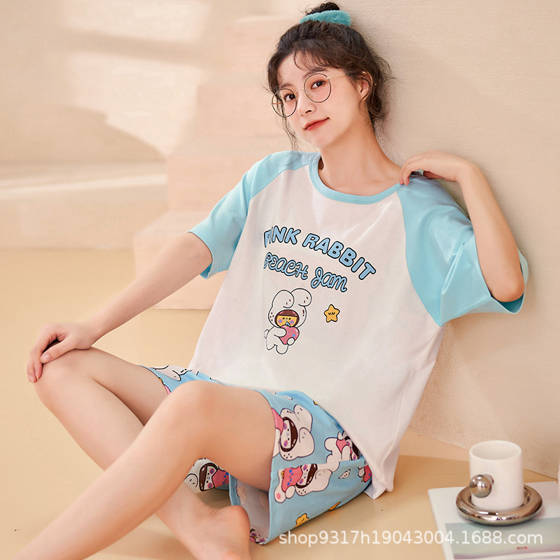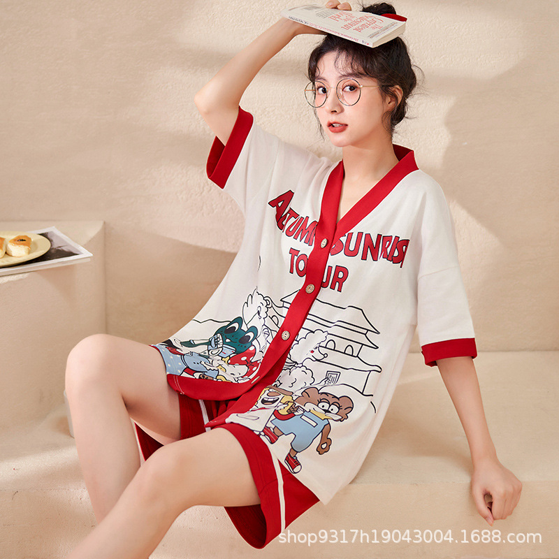 과일 잠옷 여성 여름 순면 반팔 반바지 달콤한 얇은 순수 면 캐주얼 학생 홈 의류 세트 여성스토어 가기