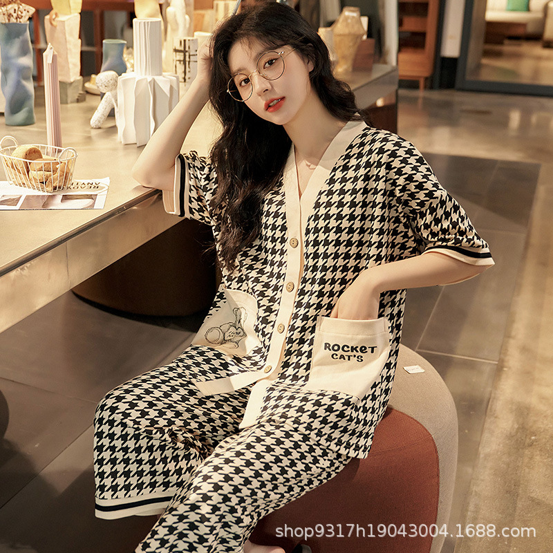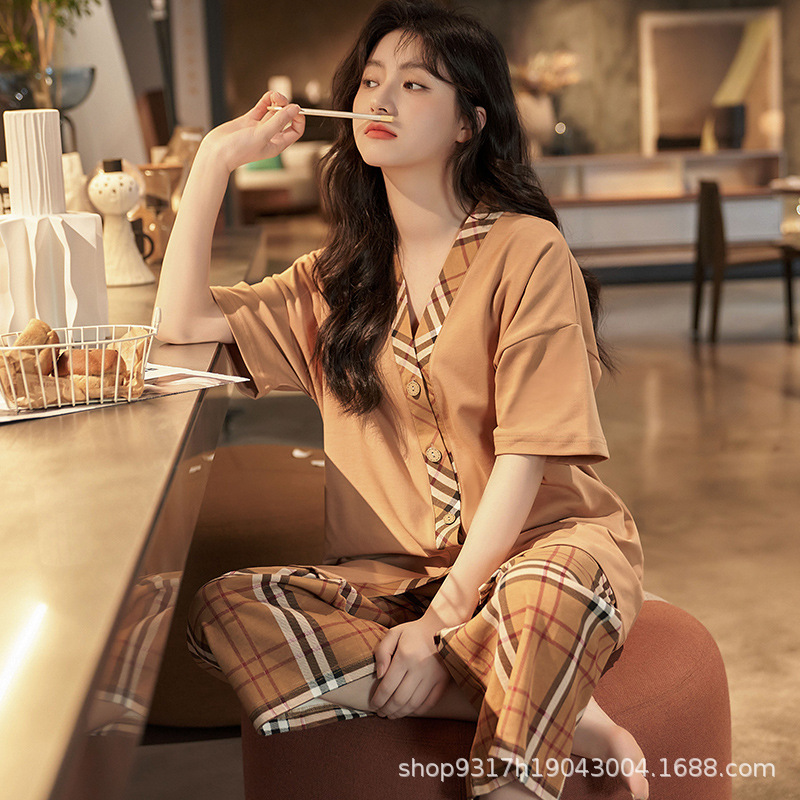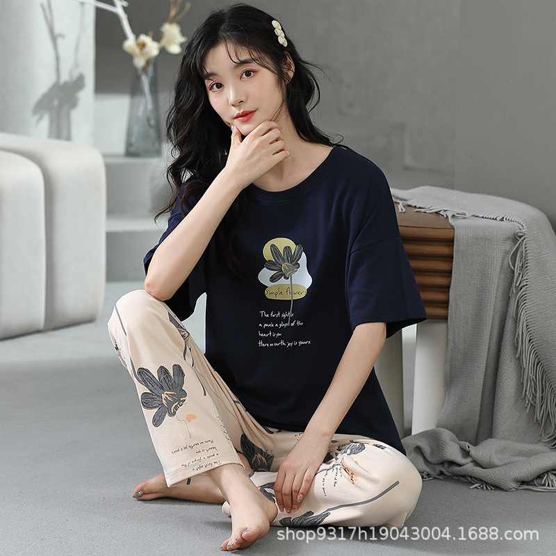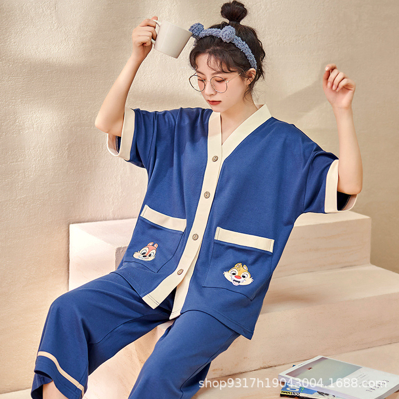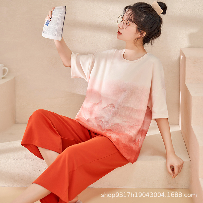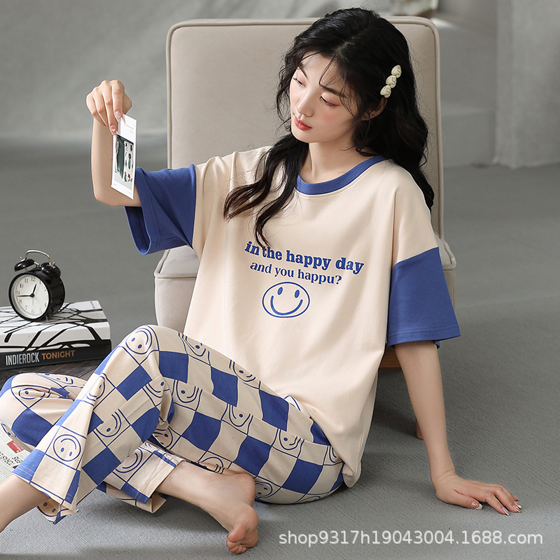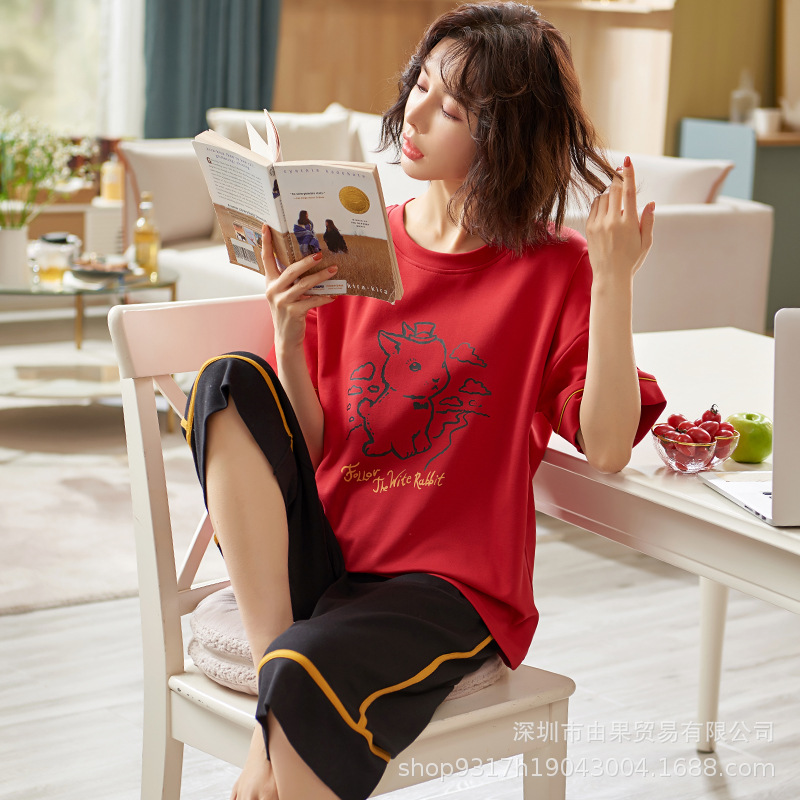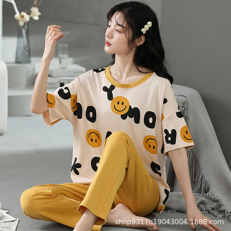 과일 잠옷 여성 여름 순면 반팔 반바지 달콤한 얇은 순수 면 캐주얼 학생 홈 의류 세트 여성스토어 가기