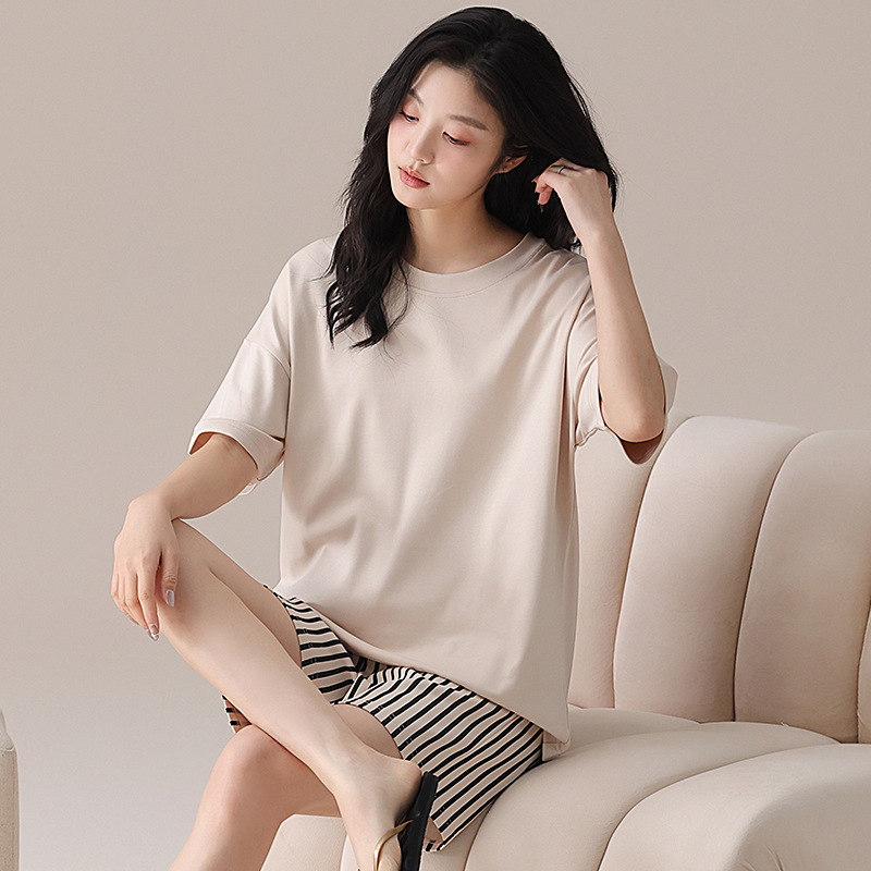 과일 잠옷 여성 여름 순면 반팔 반바지 달콤한 얇은 순수 면 캐주얼 학생 홈 의류 세트 여성