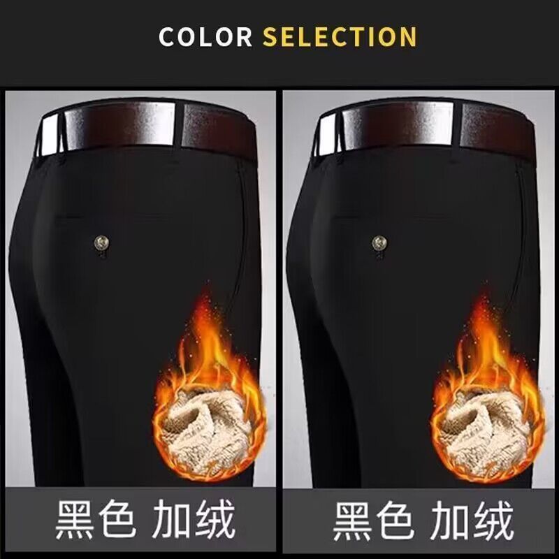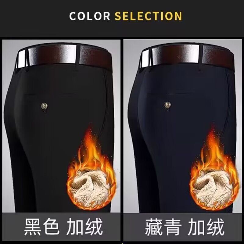 [한 머리 두 개 구입] 남성용 캐시미어 팬츠 기모 두껍게 된 남성용 캐주얼 팬츠 높은 허리 깊은 가랑이 스트레이트 조커 QA스토어 가기