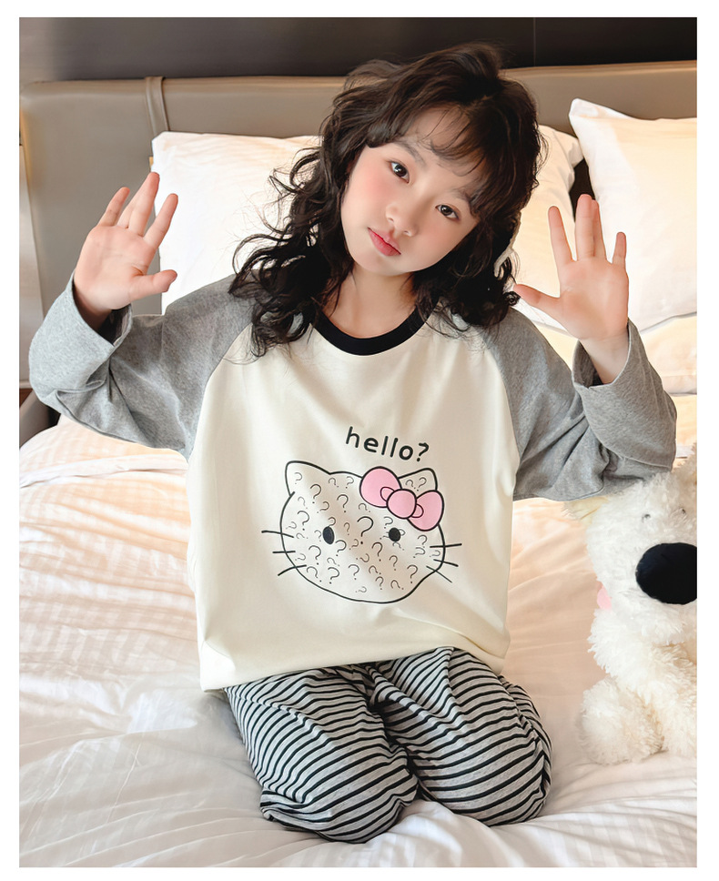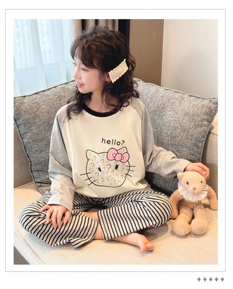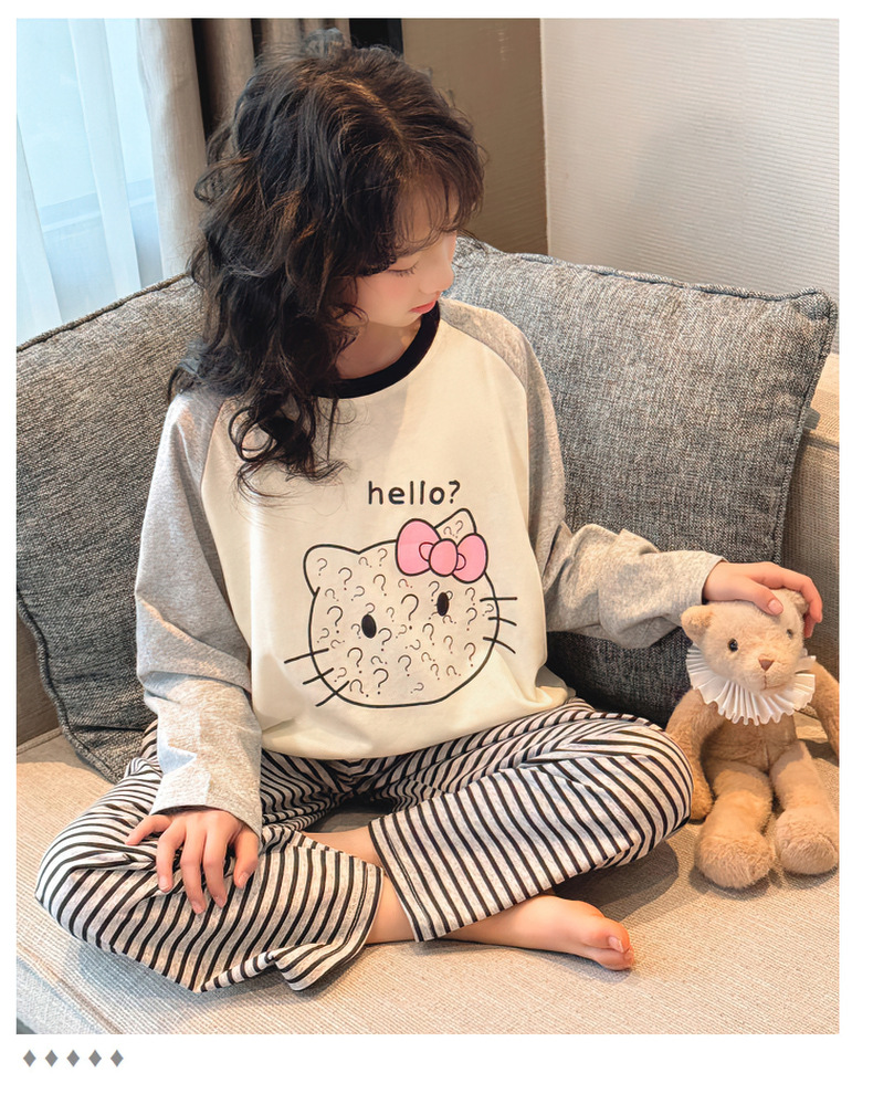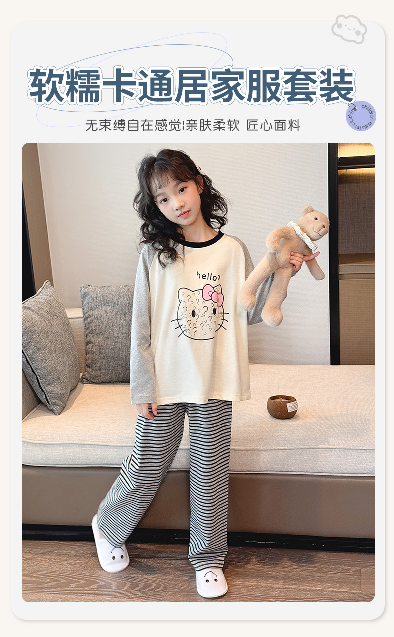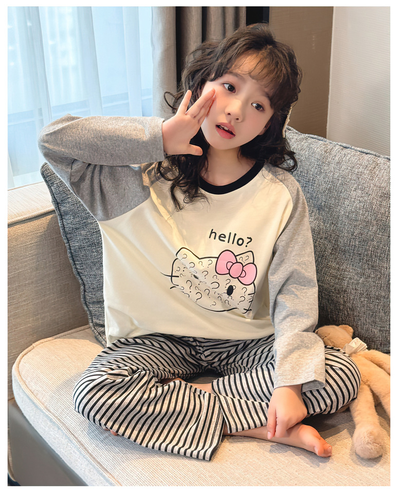 소녀의 만화 잠옷 봄 스타일 중 큰 소녀의 풀오버 긴 소매 홈 의류 캐주얼 귀여운 홈 세트