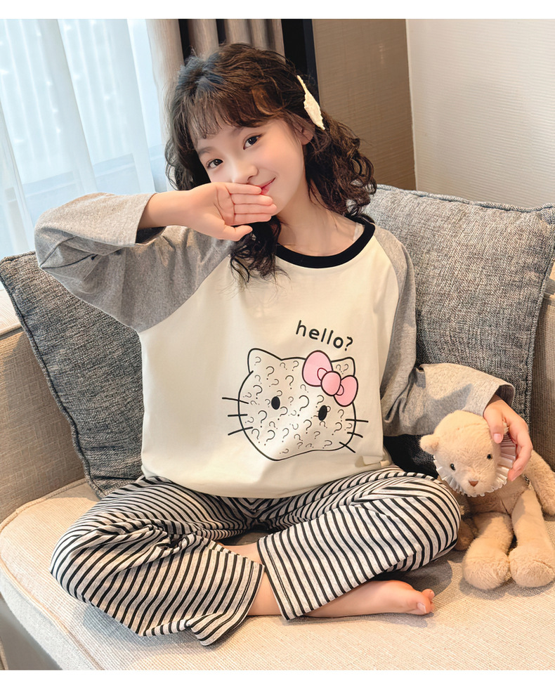 소녀의 만화 잠옷 봄 스타일 중 큰 소녀의 풀오버 긴 소매 홈 의류 캐주얼 귀여운 홈 세트스토어 가기