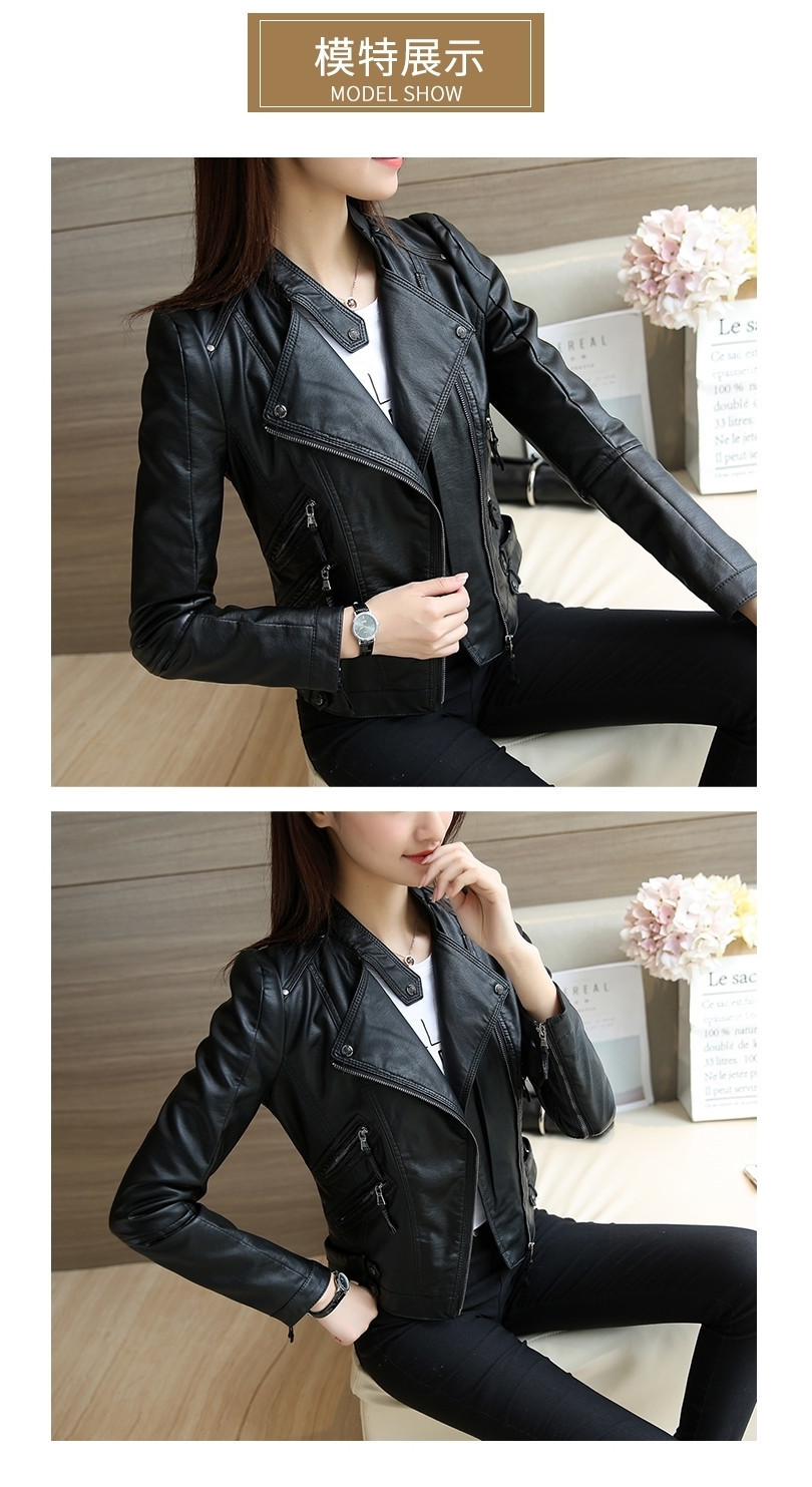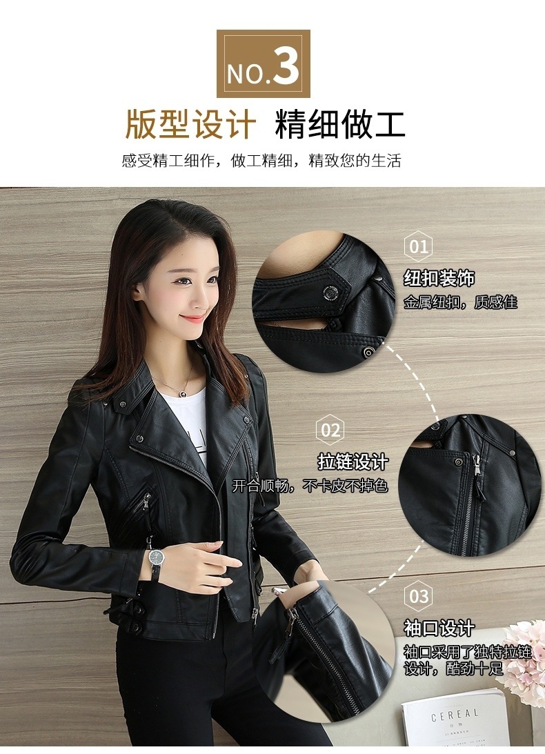 품질 보증 진정한 가죽 여성의 봄과 가을 짧은 슬림 양가죽 오토바이 칼라 가죽 자켓 트렌디스토어 가기