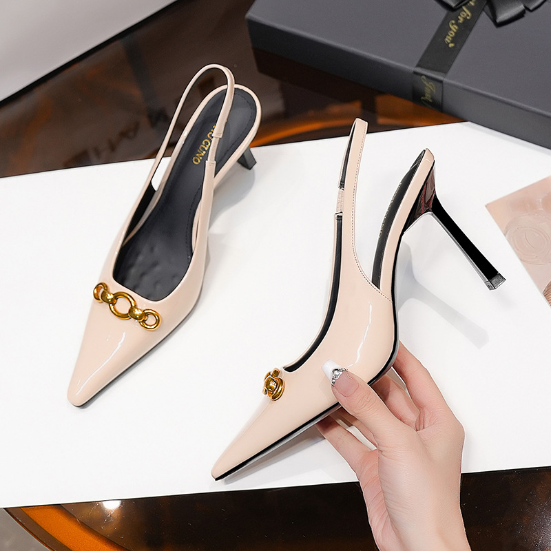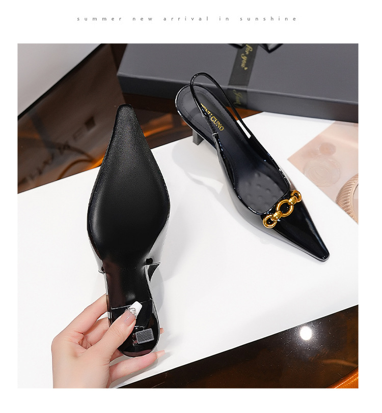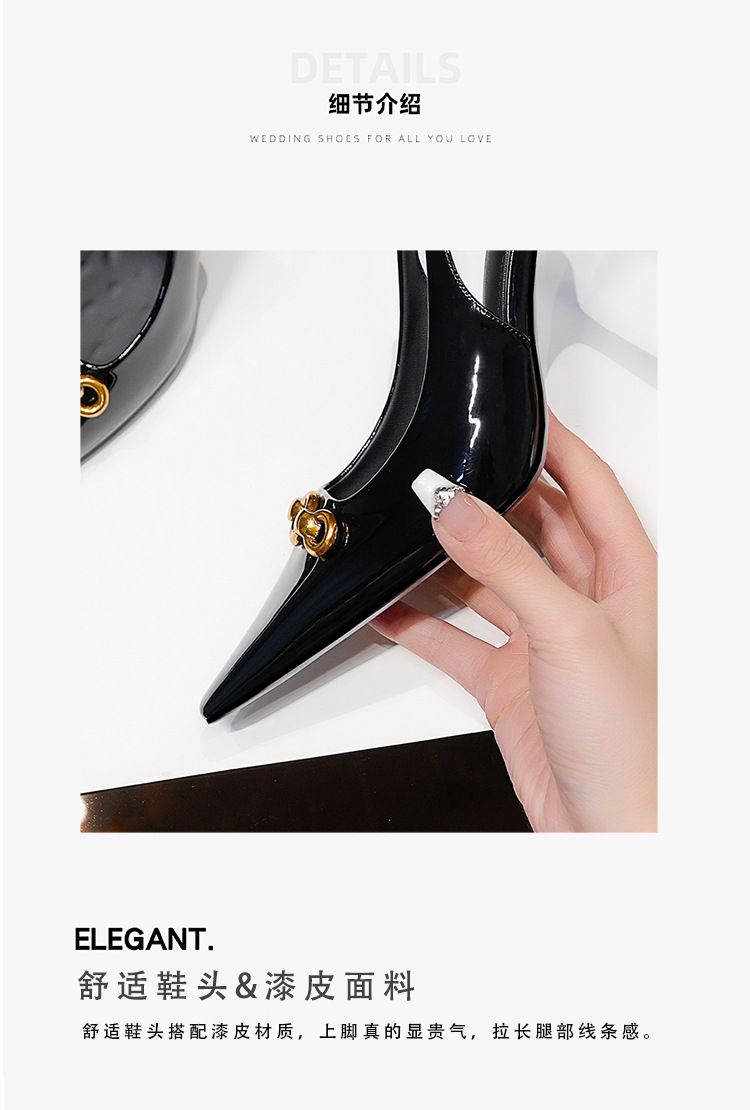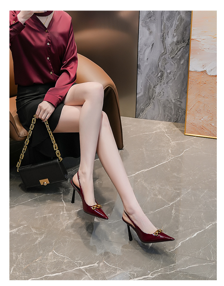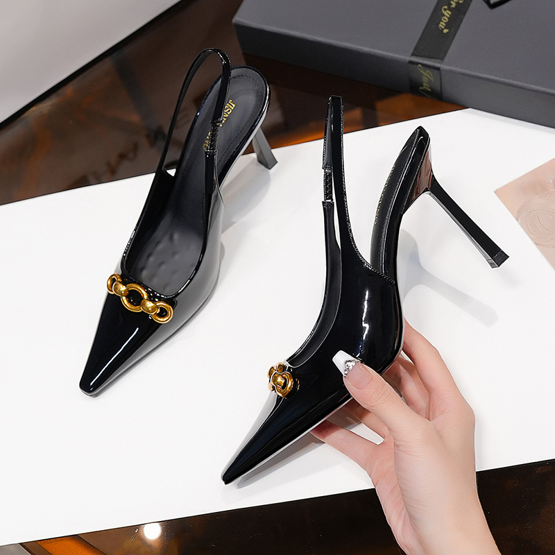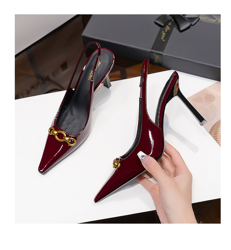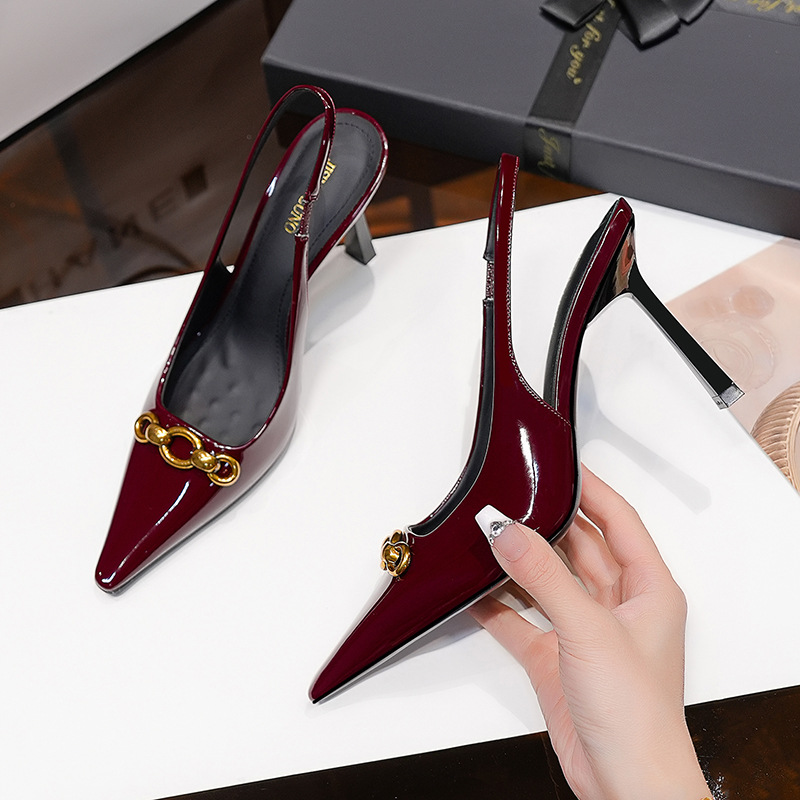 뾰족한 하이힐 여성 스틸레토 힐 특허 가죽 슬립 온 프랑스 스타일 발가락 아름다운 샌들 여성 2025 년 새 여름 아우터웨어
