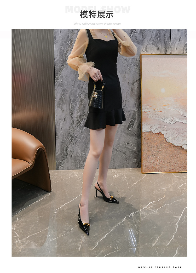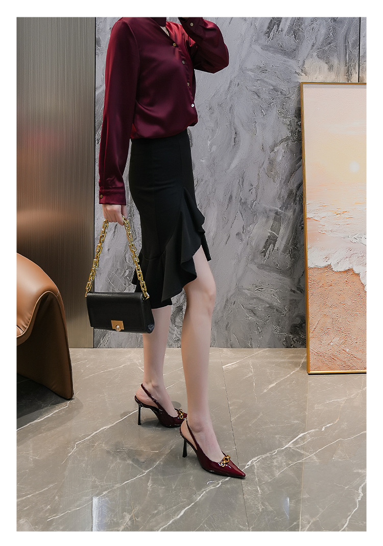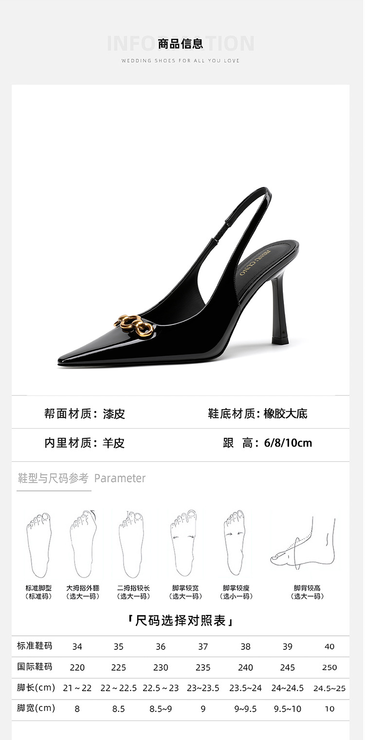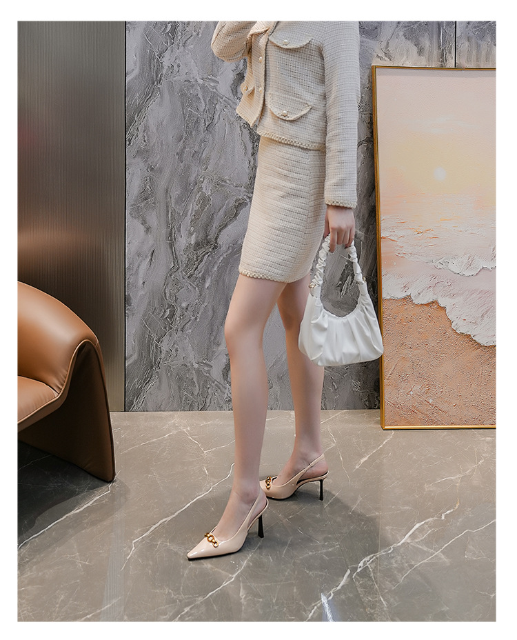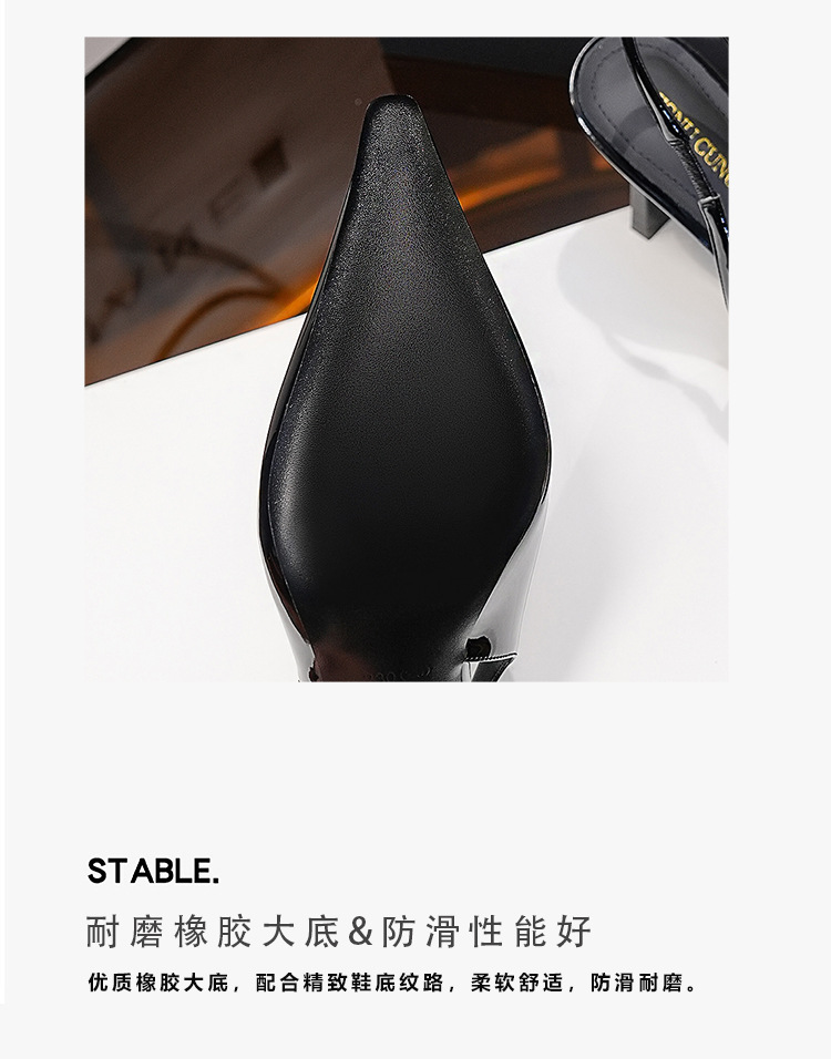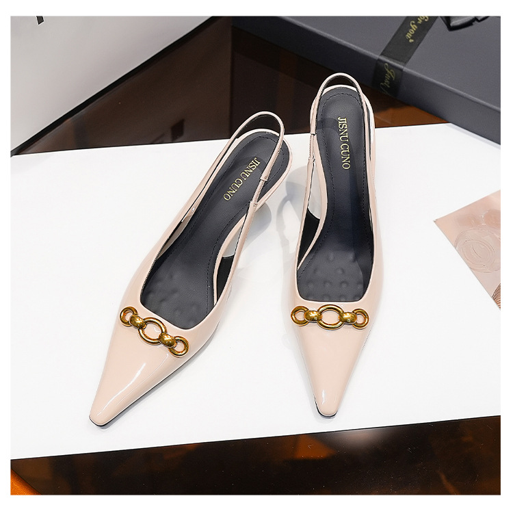 뾰족한 하이힐 여성 스틸레토 힐 특허 가죽 슬립 온 프랑스 스타일 발가락 아름다운 샌들 여성 2025 년 새 여름 아우터웨어