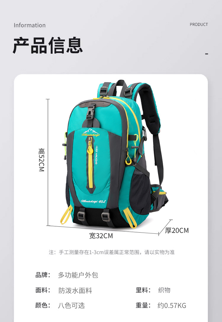여행 다기능 등산 방수 레저 하이킹 학생 40 리터 배낭 초경량 승마 새로운 야외 배낭스토어 가기