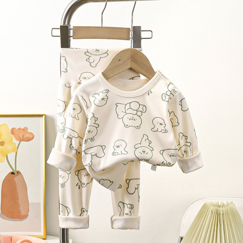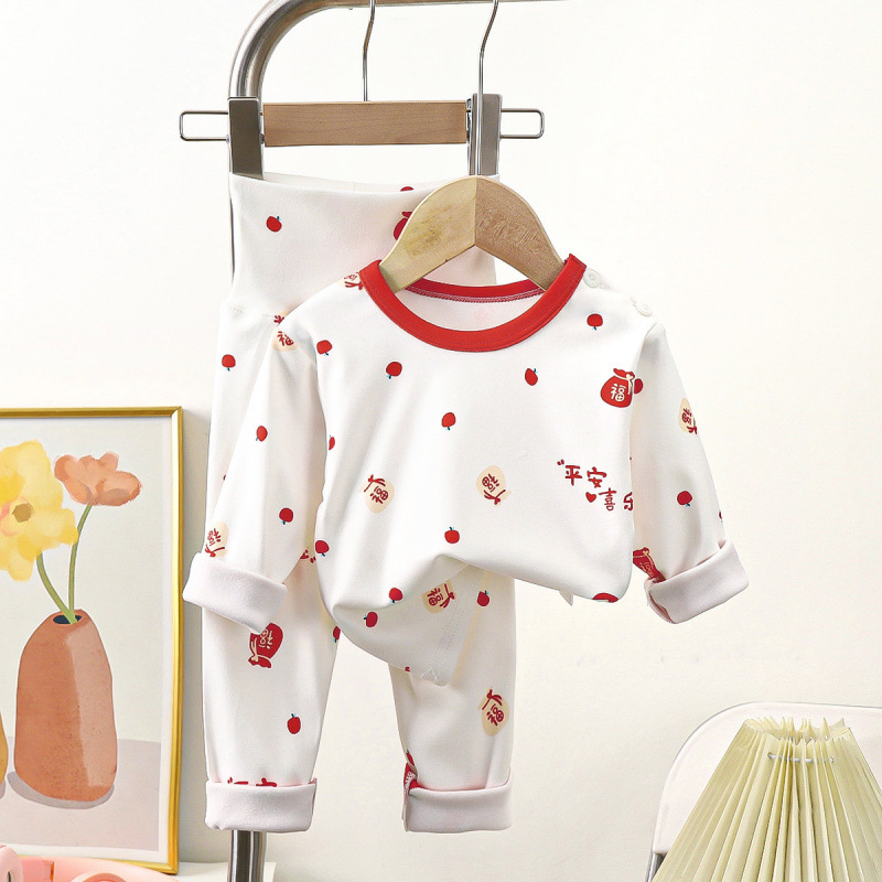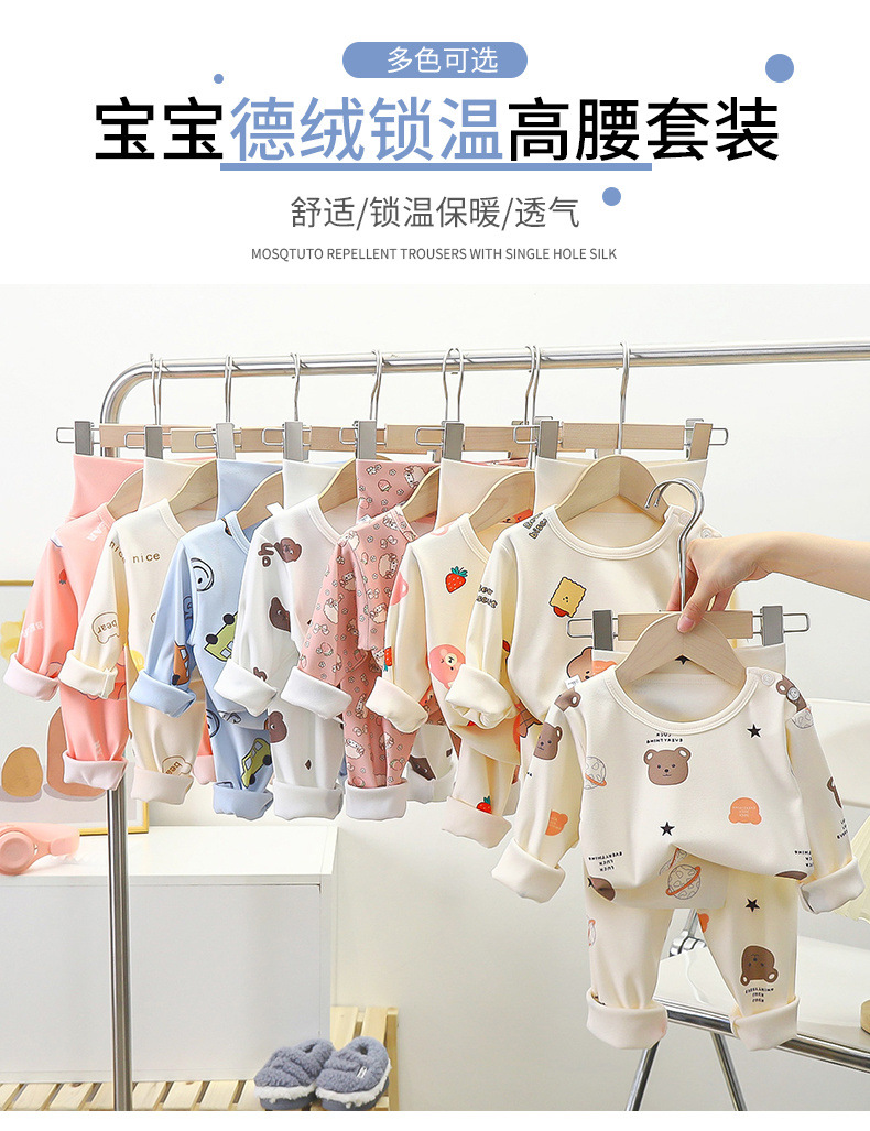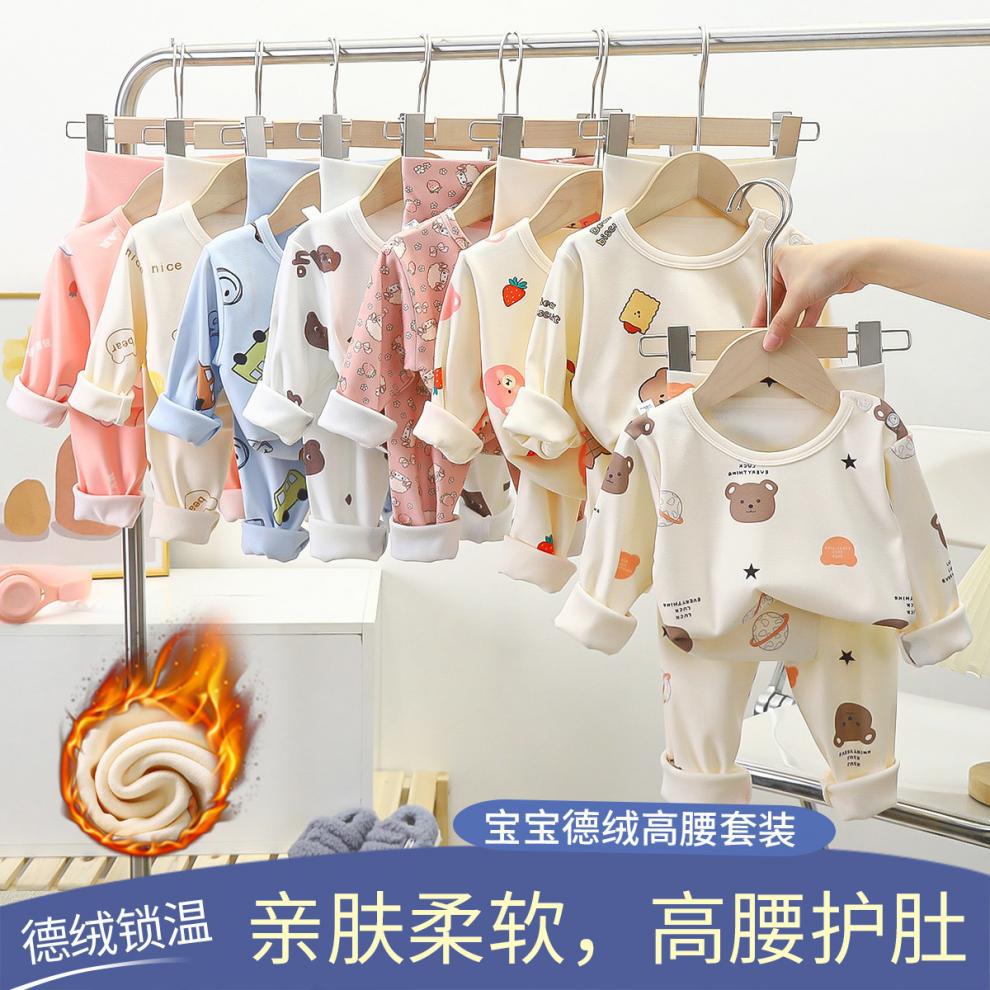 어린이 De Rong 아기의 높은 허리 배꼽 보호자 남성 보물 여성의 보물 가을 겨울 집 옷 세트 슈퍼 귀여운 집 어린이
