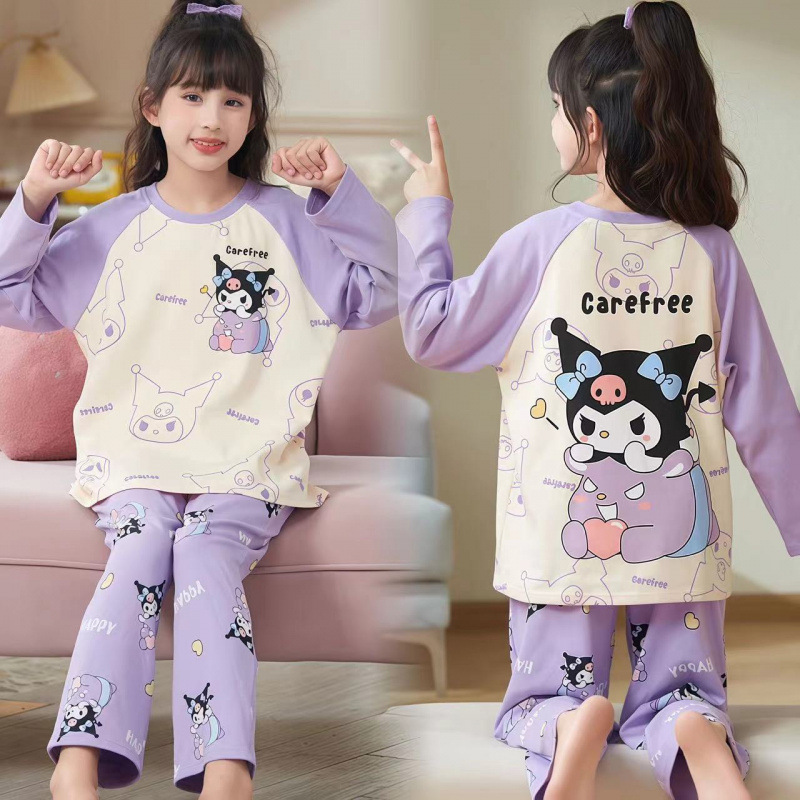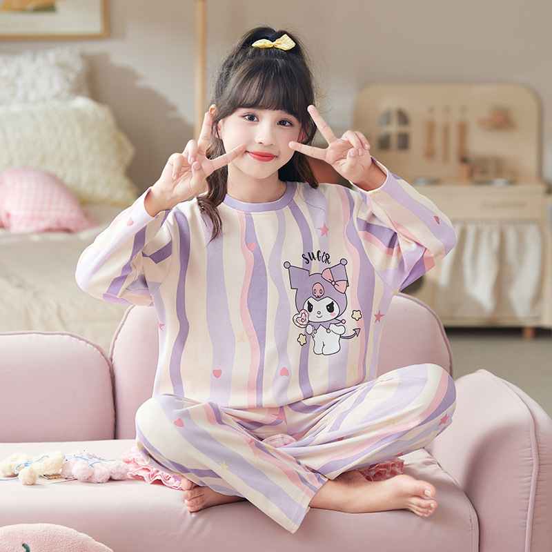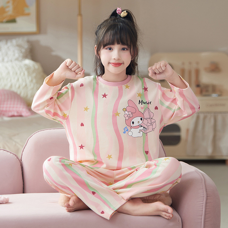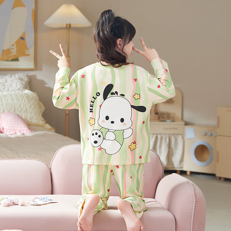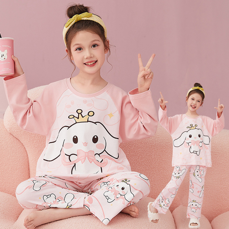 만화 면 어린이 잠옷 봄과 가을 얇은 긴 소매 세트 공주 스타일 큰 소년 소녀 아기 홈 옷