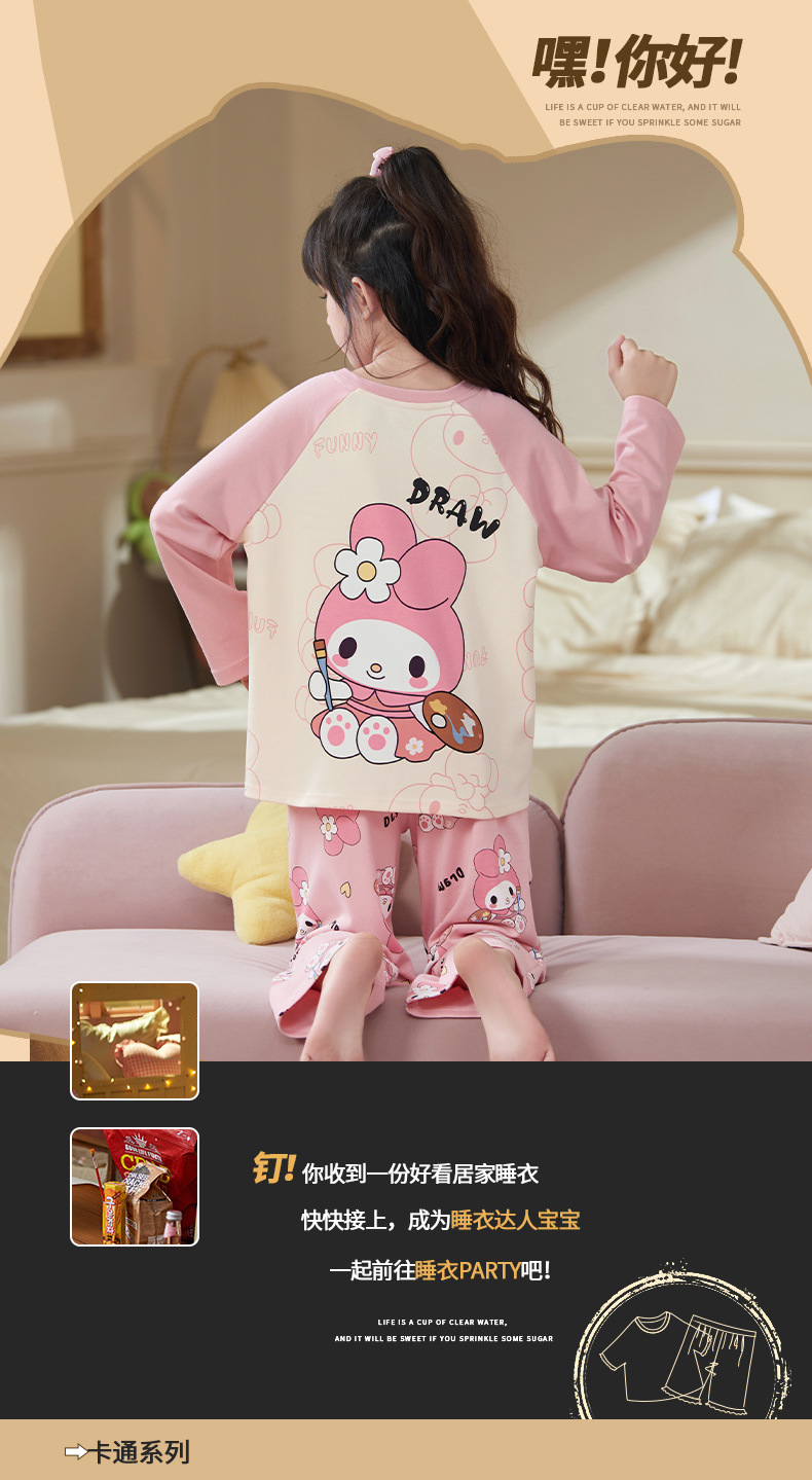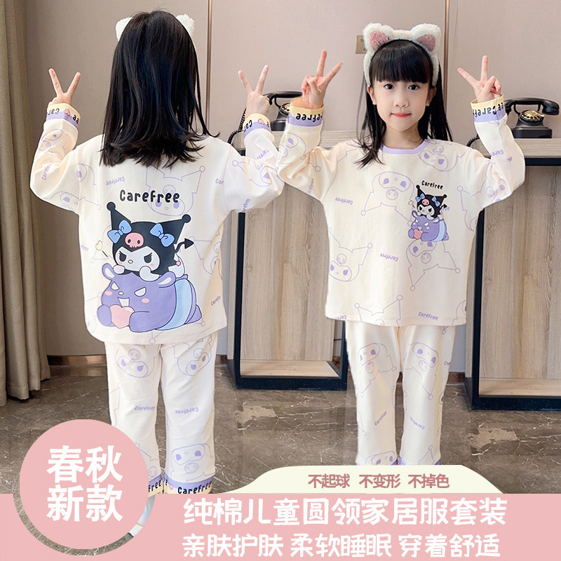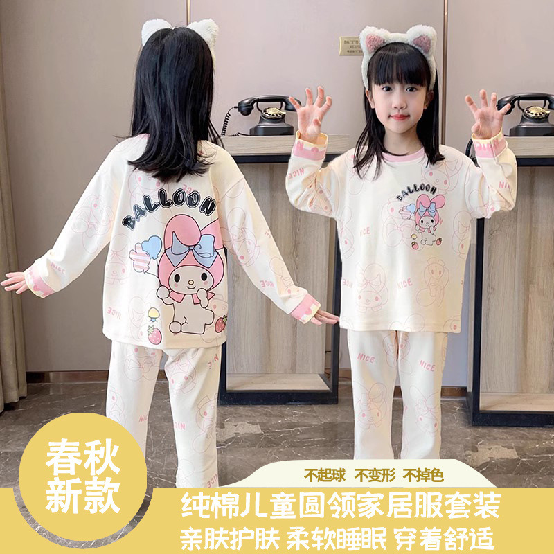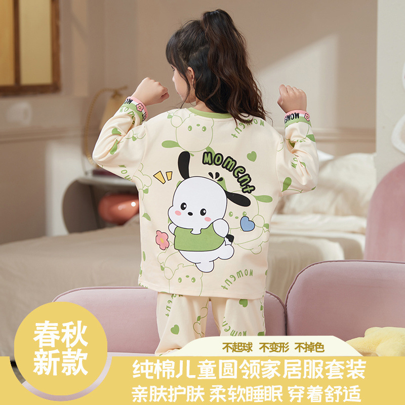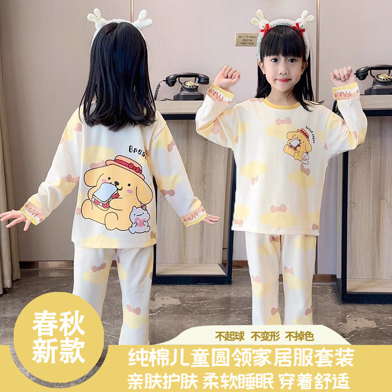 만화 면 어린이 잠옷 봄과 가을 얇은 긴 소매 세트 공주 스타일 큰 소년 소녀 아기 홈 옷스토어 가기
