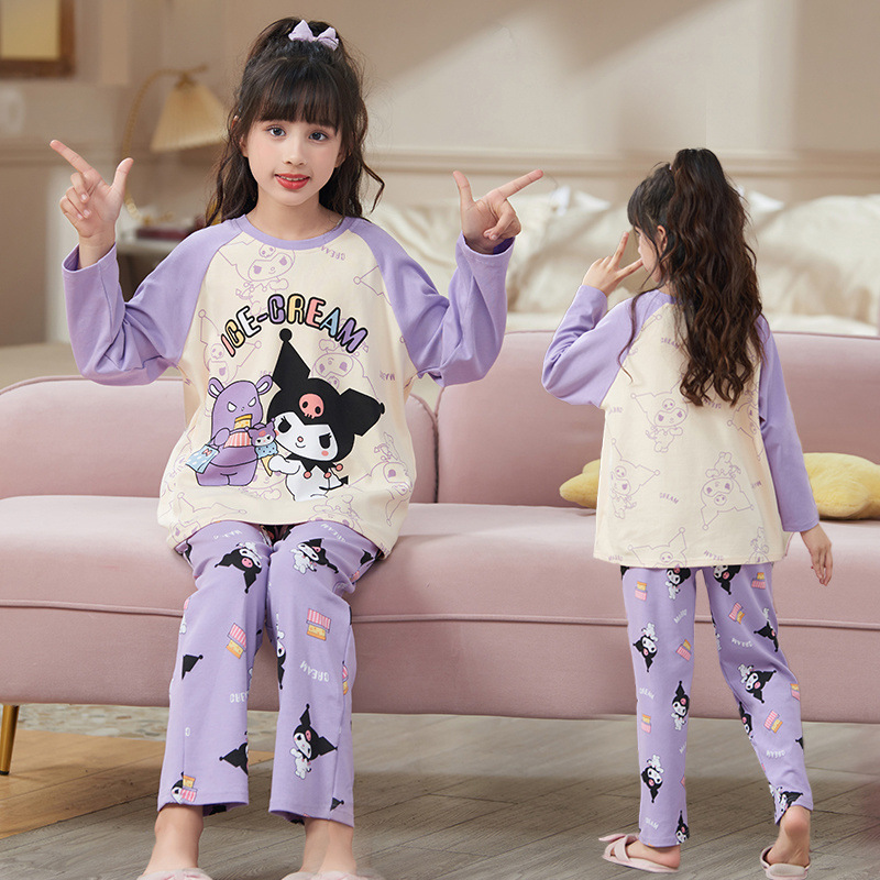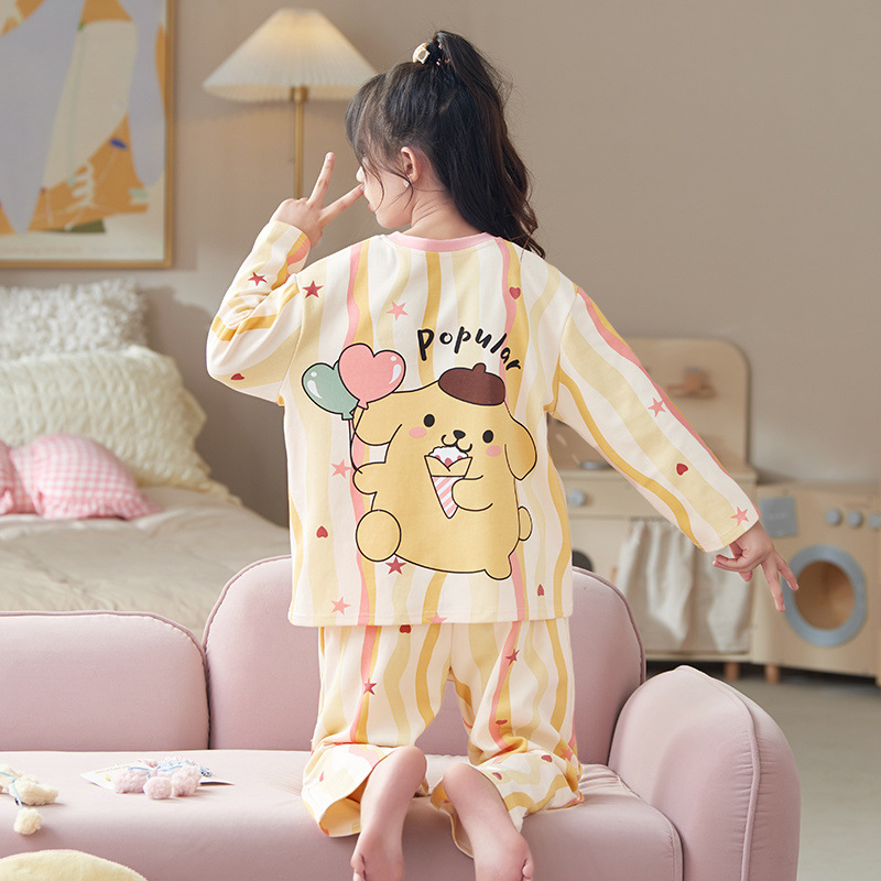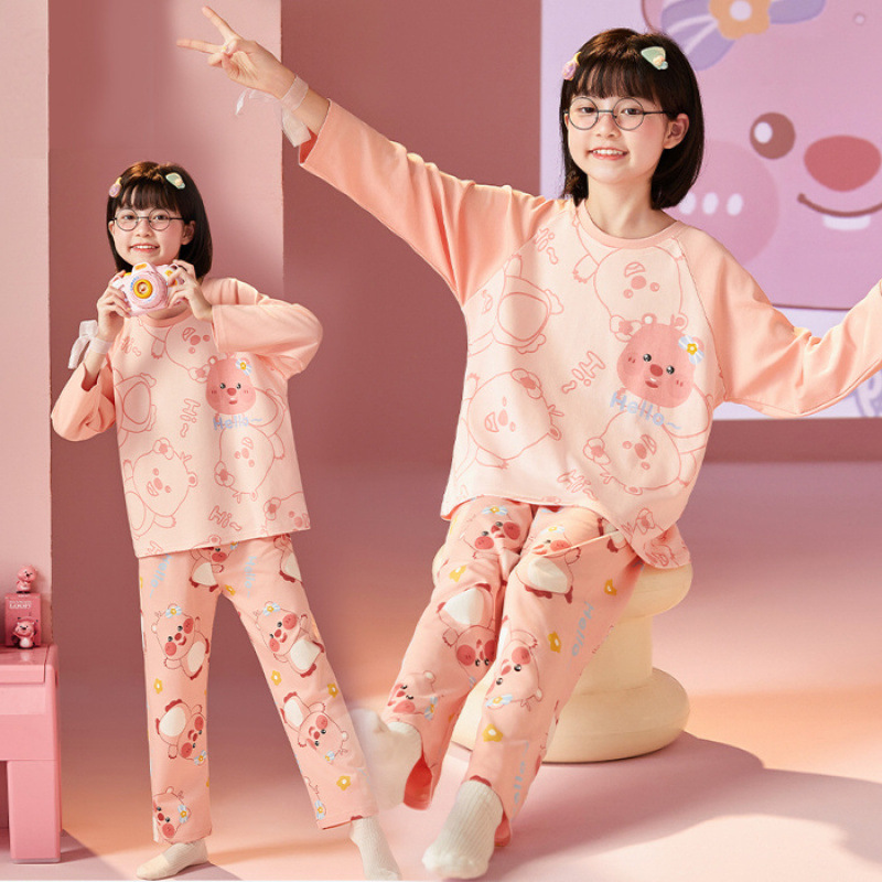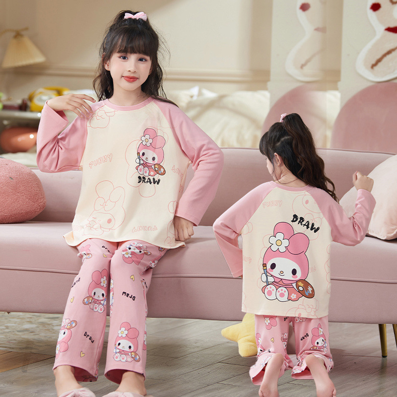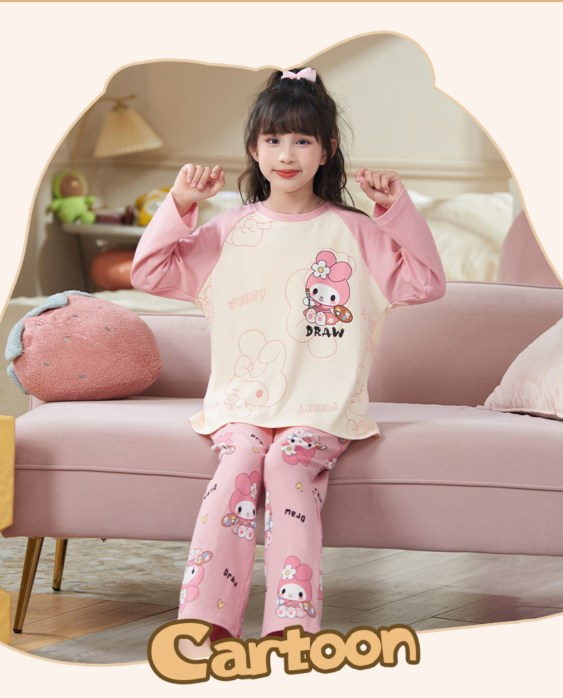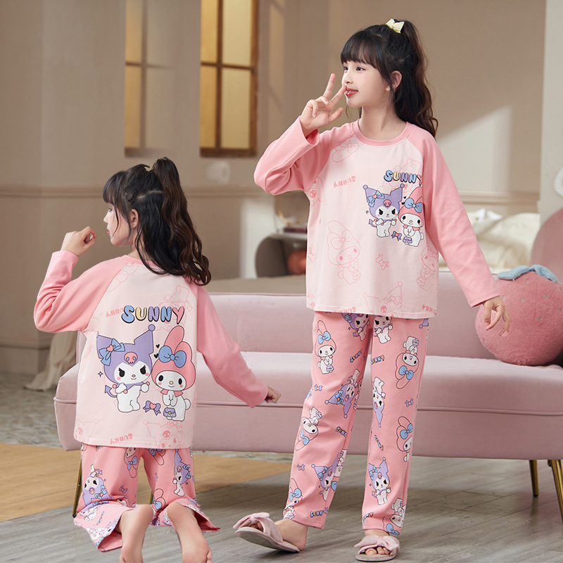 만화 면 어린이 잠옷 봄과 가을 얇은 긴 소매 세트 공주 스타일 큰 소년 소녀 아기 홈 옷스토어 가기