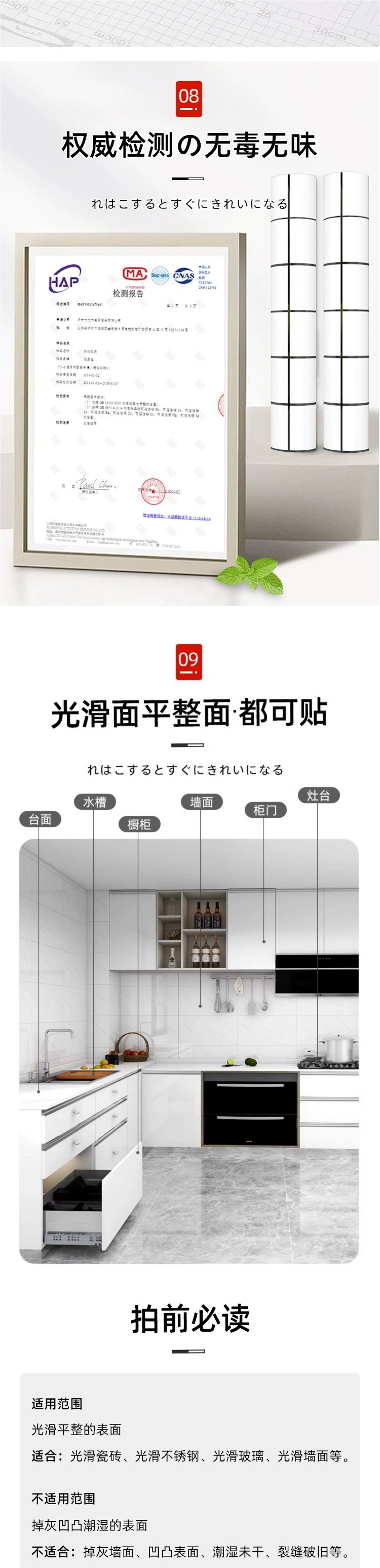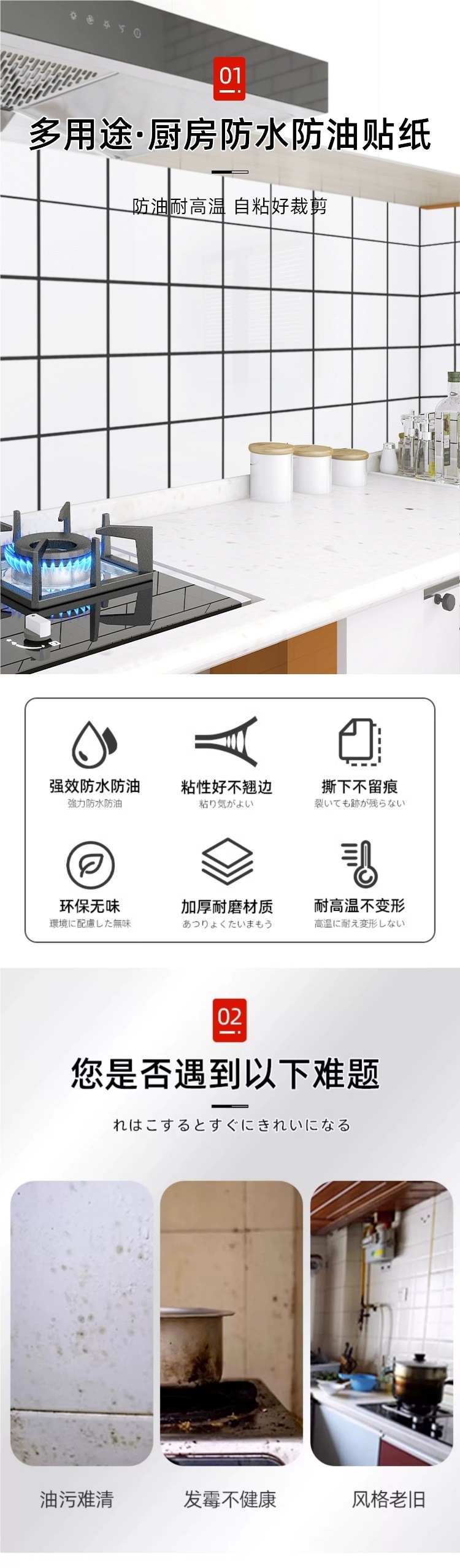 주방 내유성 스티커 방수 자체 접착 벽 내화 고온 저항성 대리석 스토브 표면 수분 방지 벽 스티커 벽 벽지