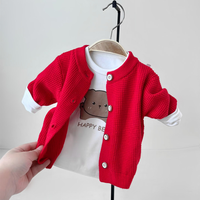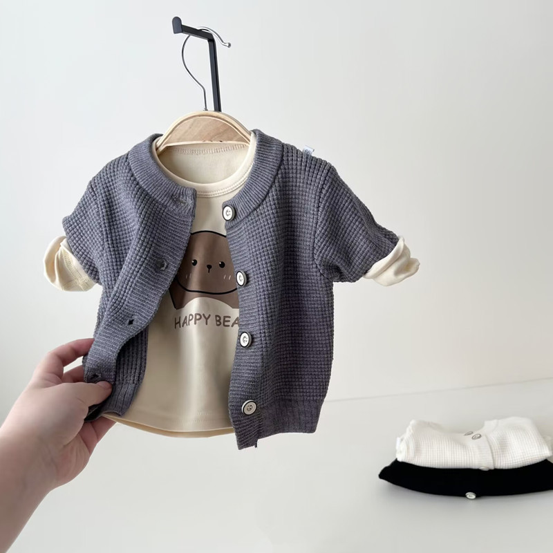 [48 시간 배달] 아기 외국식 아기 옷 가을과 겨울 니트 작은 카디건 스웨터 코트 어린이 한국어 버전