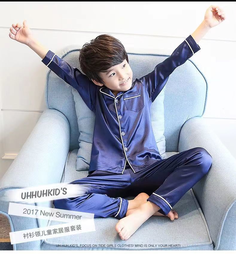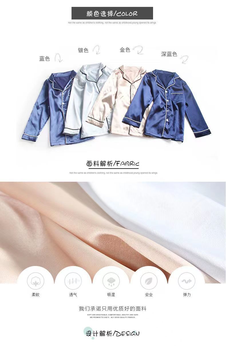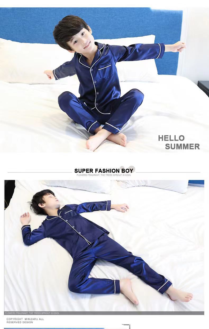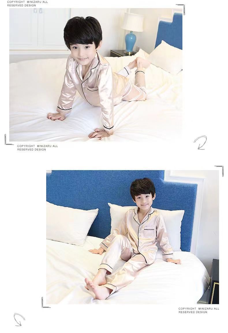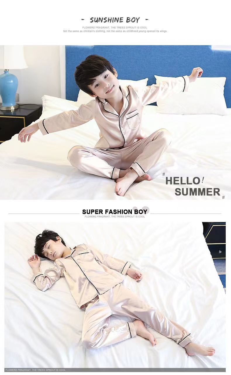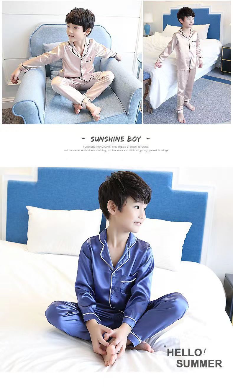 어린이 잠옷 세트 여름 얇은 긴팔 에어컨 옷 어린이 봄과 가을 아이스 실크 중형 및 대형 어린이 소녀스토어 가기