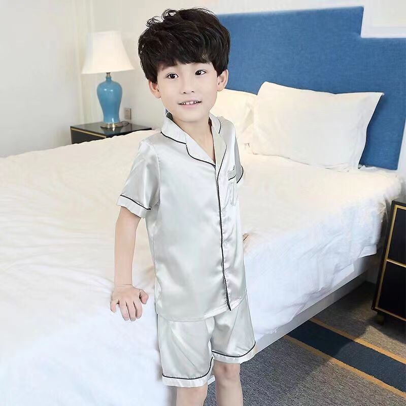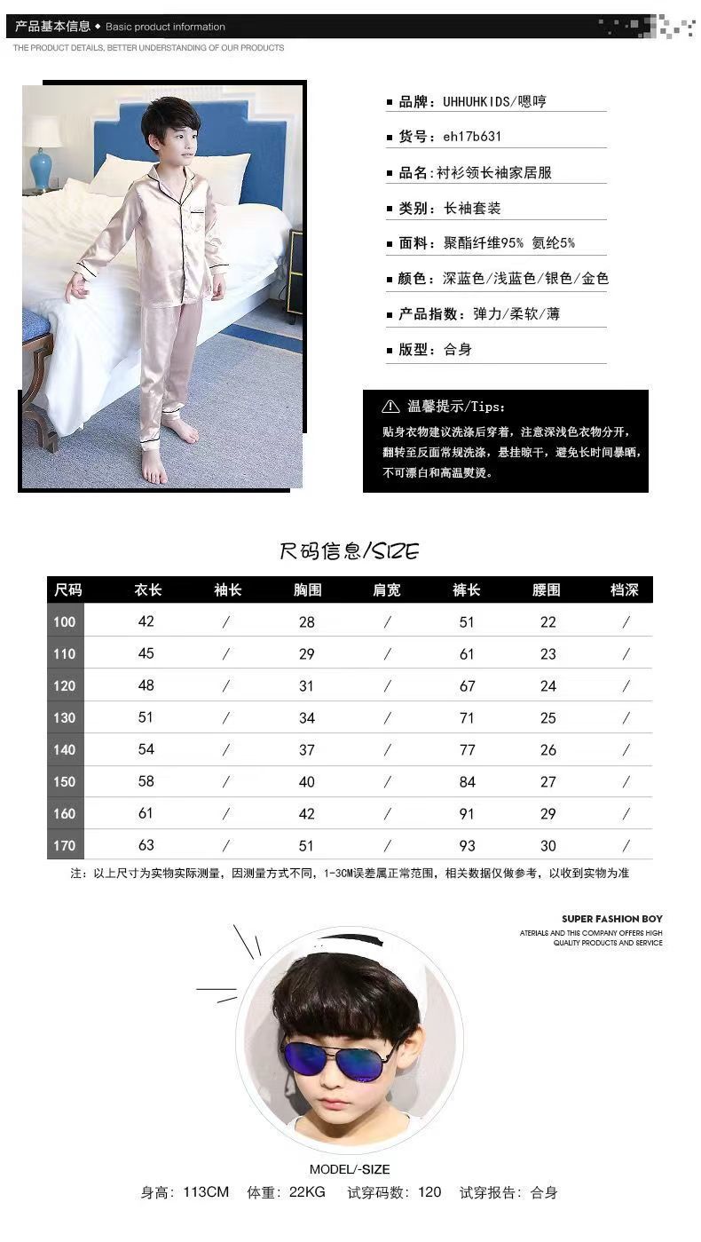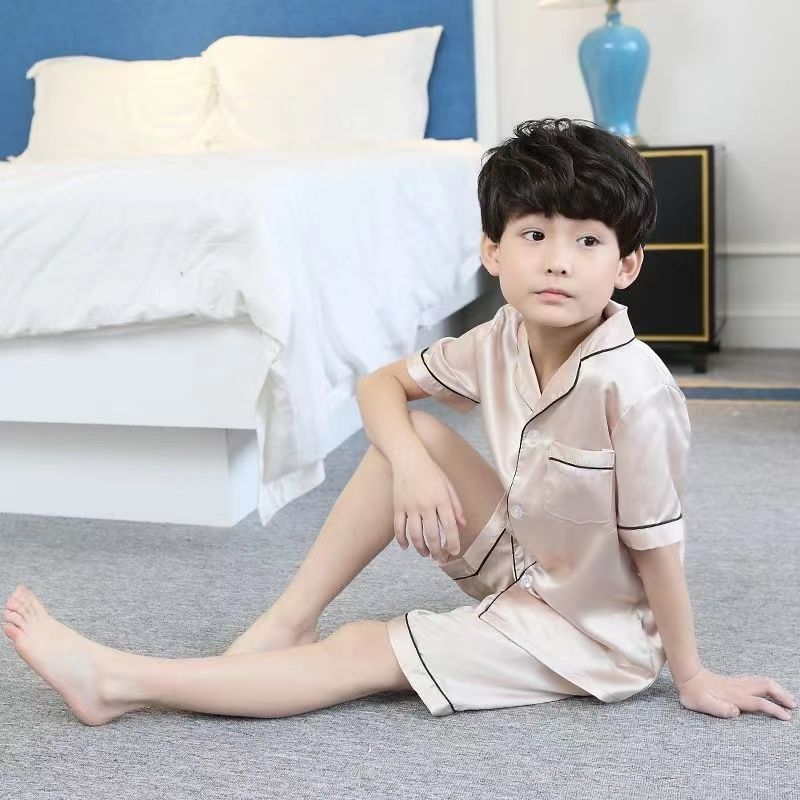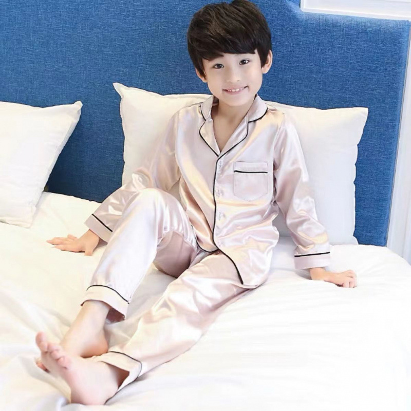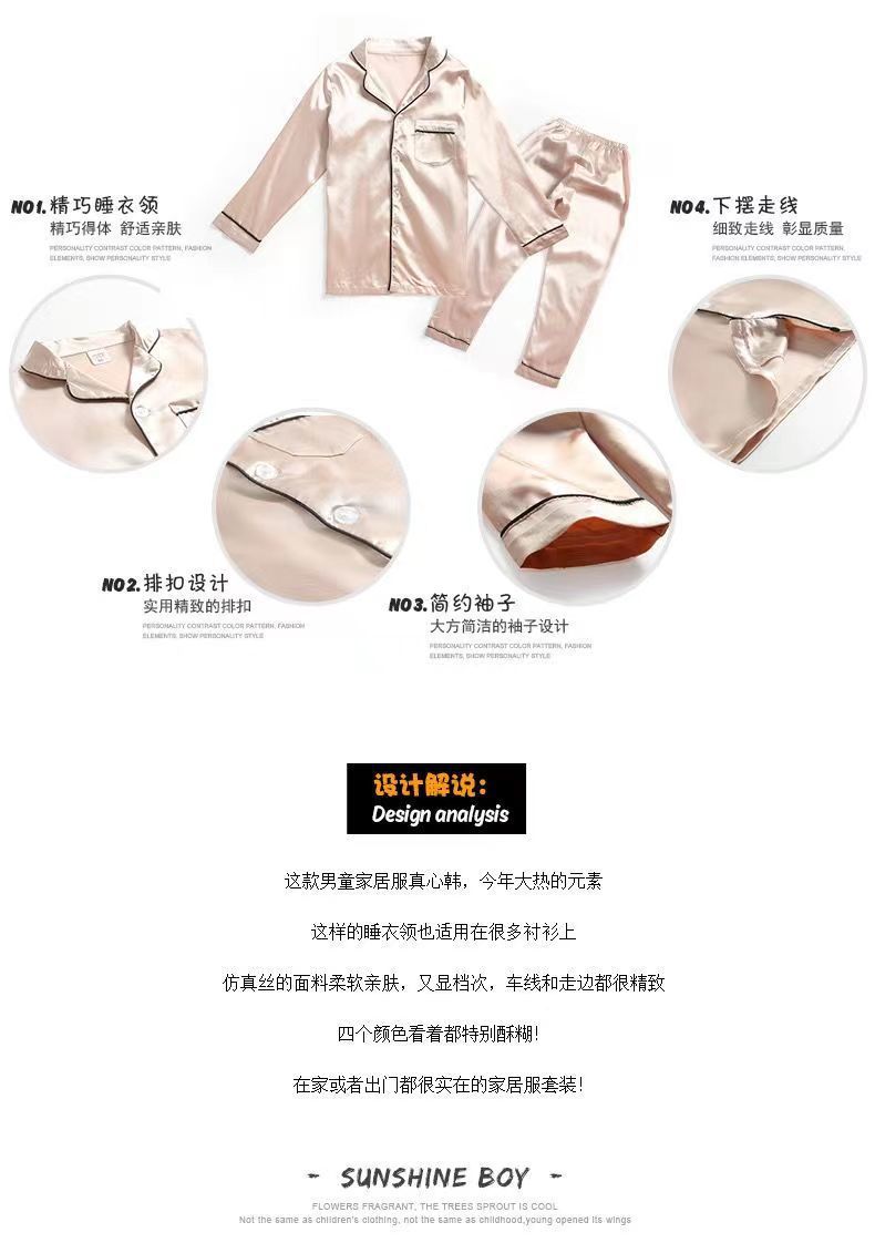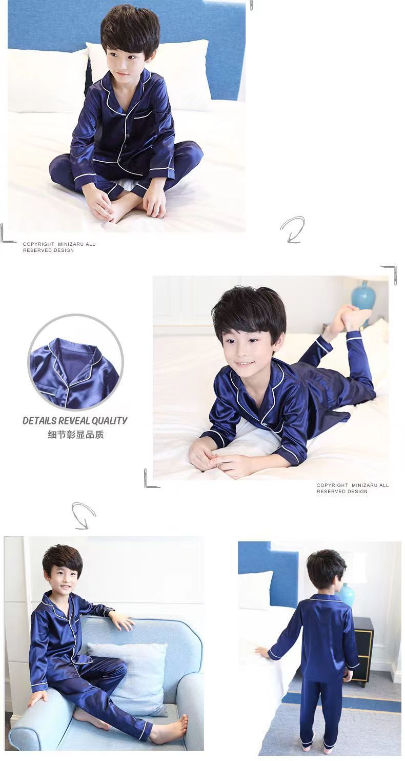 어린이 잠옷 세트 여름 얇은 긴팔 에어컨 옷 어린이 봄과 가을 아이스 실크 중형 및 대형 어린이 소녀스토어 가기