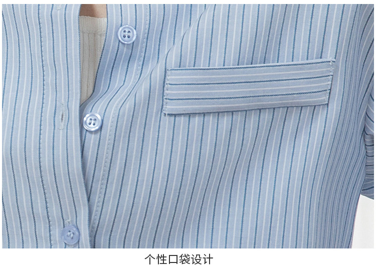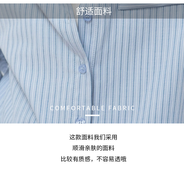 2025 리얼 샷 블루 스트라이프 셔츠 여자 봄 새로운 내부 탑 통근 올 매치 셔츠