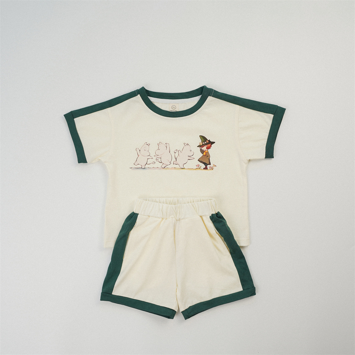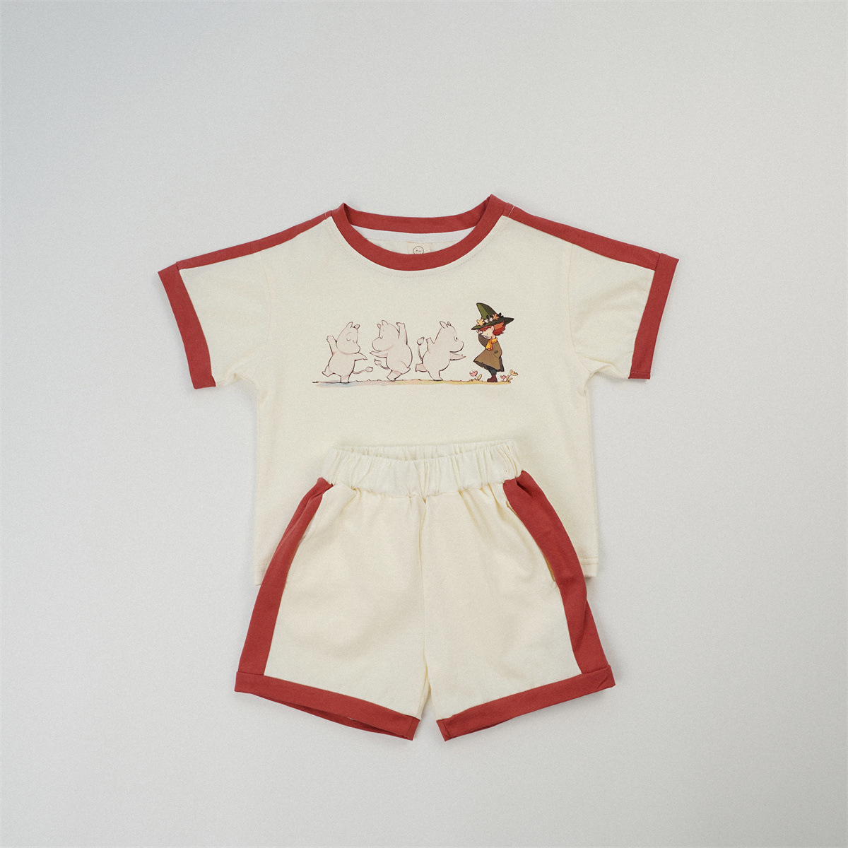 한국판 중소 아동복 만화 캐주얼 짧은 소매 세트 INS 컬러 매칭 여름 아기 귀여운 클래스 티셔츠 반바지