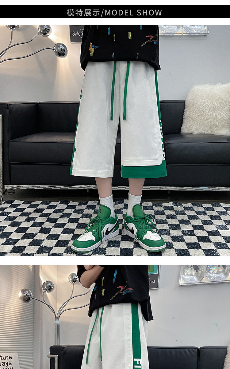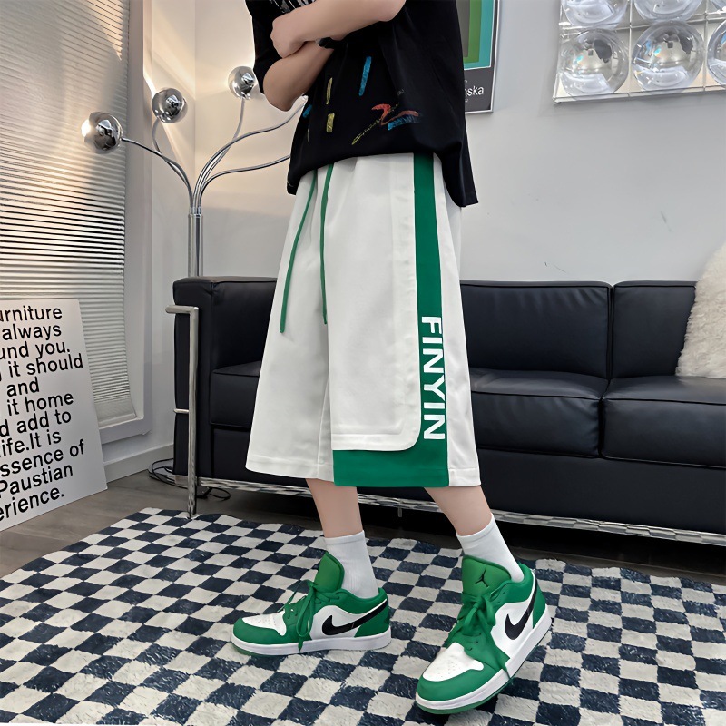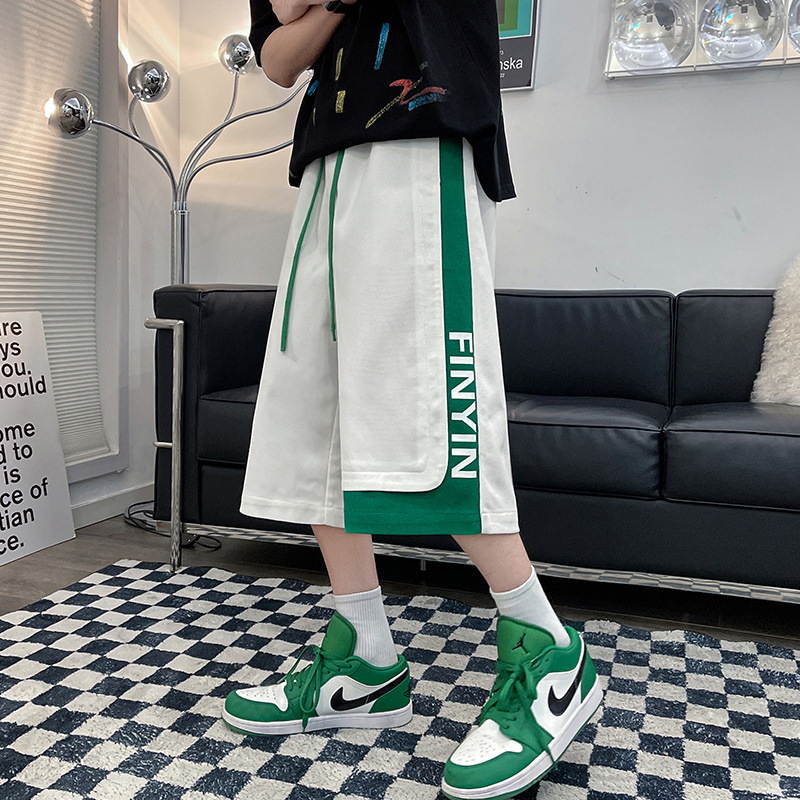 미국 농구 반바지 남자 여름 얇은 트렌디 브랜드 스포츠 느슨한 플러스 사이즈 캐주얼 와플 오버 더 무릎 카프리 바지스토어 가기