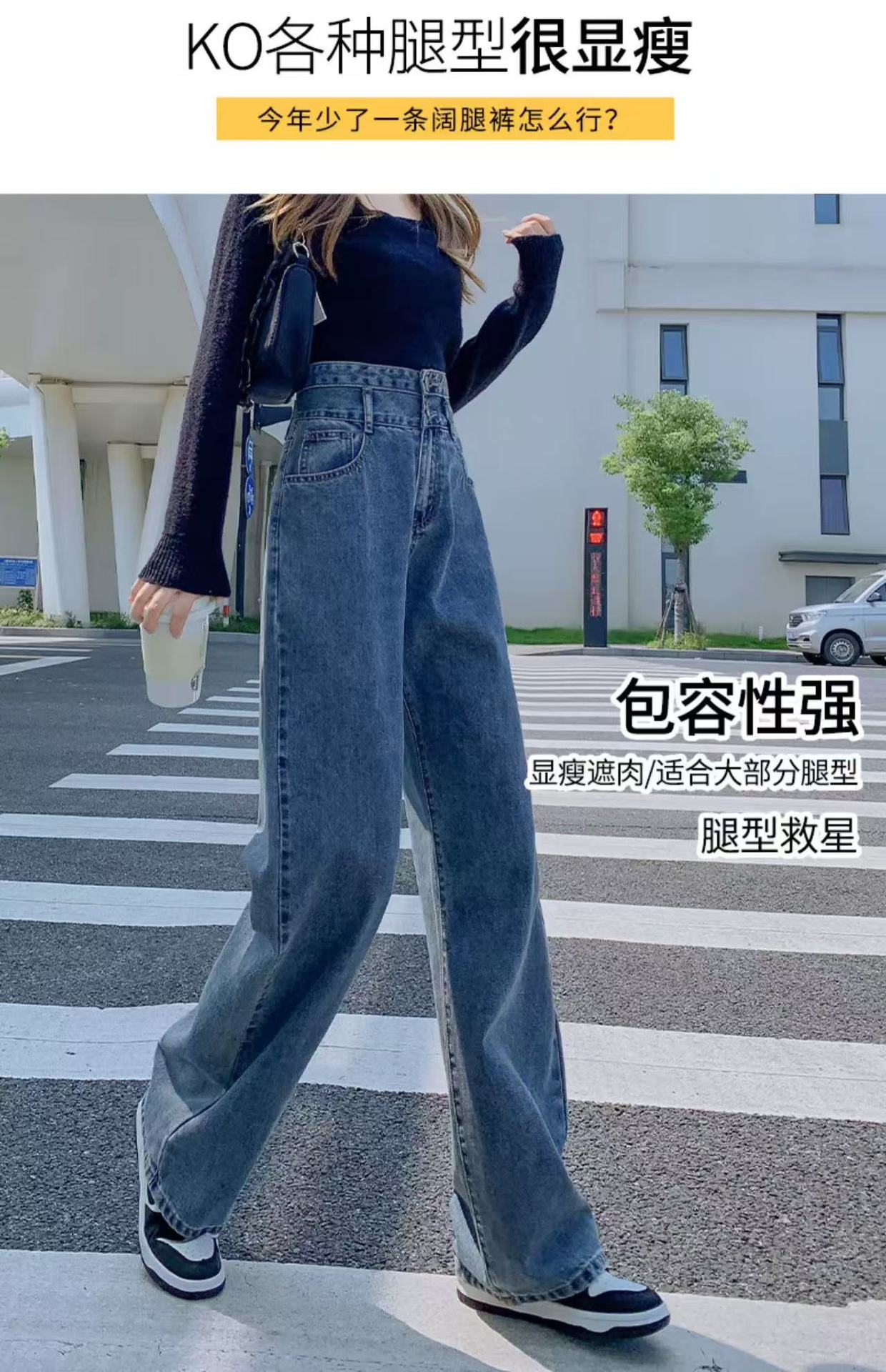 높은 허리 청바지 여성의 봄과 가을 2025 새로운 스타일 스트레이트 느슨한 높은 허리 슬리밍 작은 멈춘 넓은 다리스토어 가기