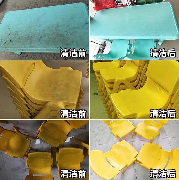 유치원 테이블과 의자 청소기 플라스틱 서리 책상 및 의자 사무실 책상 강력한 오염 제거 테이블 청소 인공물
