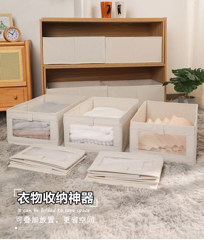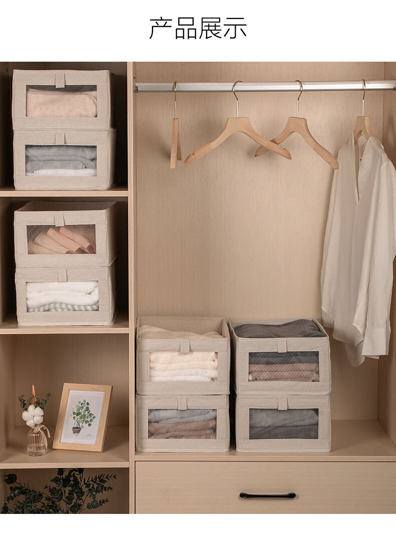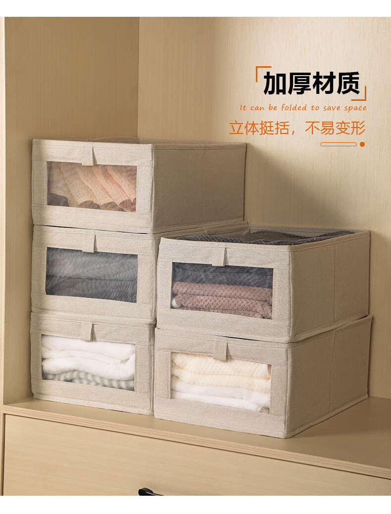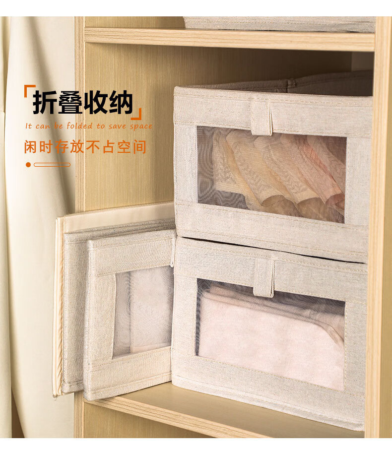 면 및 린넨 직물 접이식 옷 저장 상자 대용량 분류 저장 상자 서랍 일본식 옷장 마감 상자스토어 가기