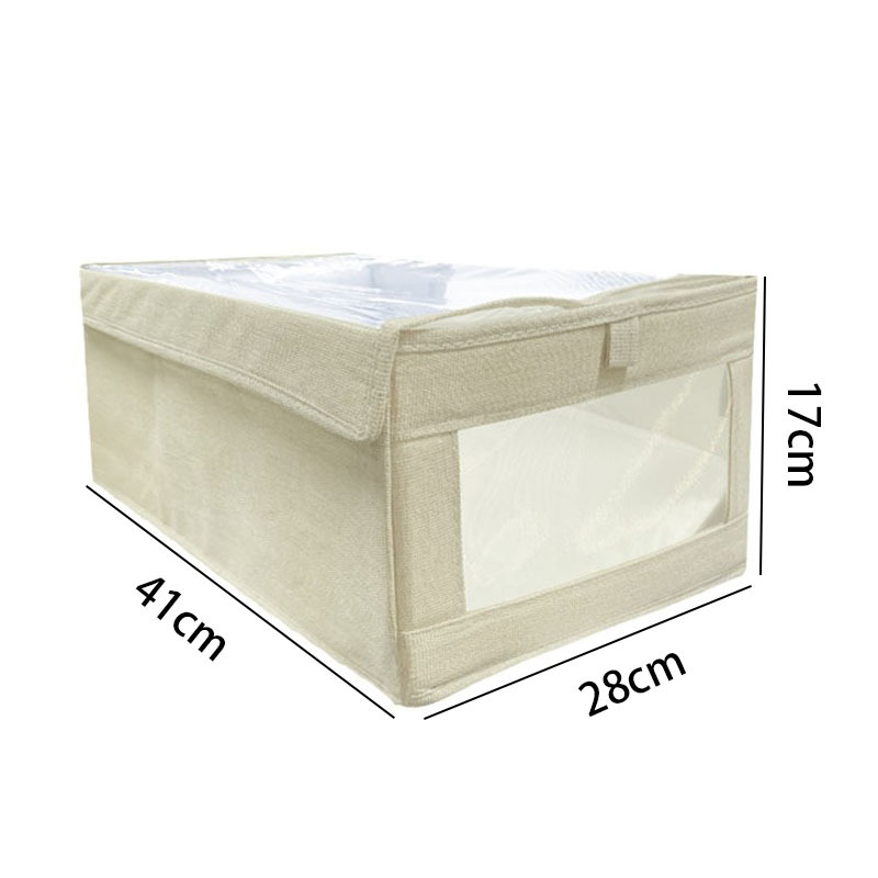 • [베이지색 면과 리넨 뚜껑] 투시창 수납함