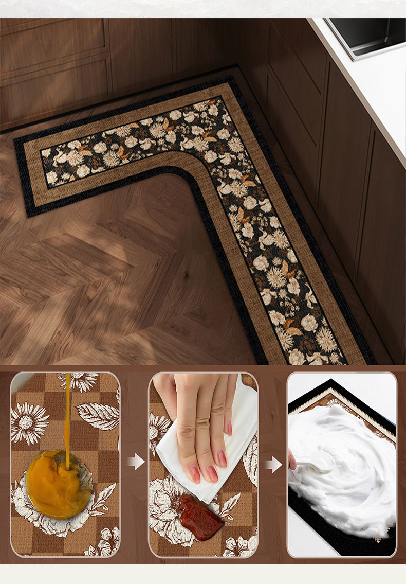 7 자형 주방 흡수성 가죽 바닥 매트 원피스 풋 매트 미끄럼 방지, 내유성 및 먼지 방지 연장 카펫스토어 가기