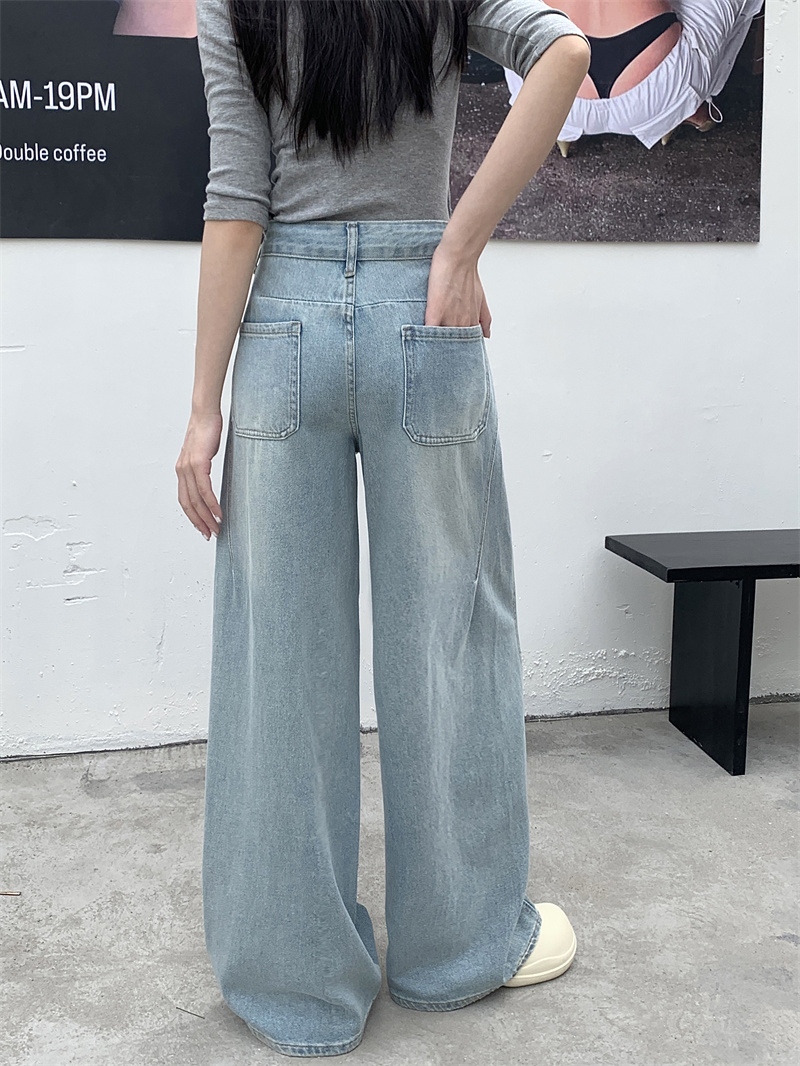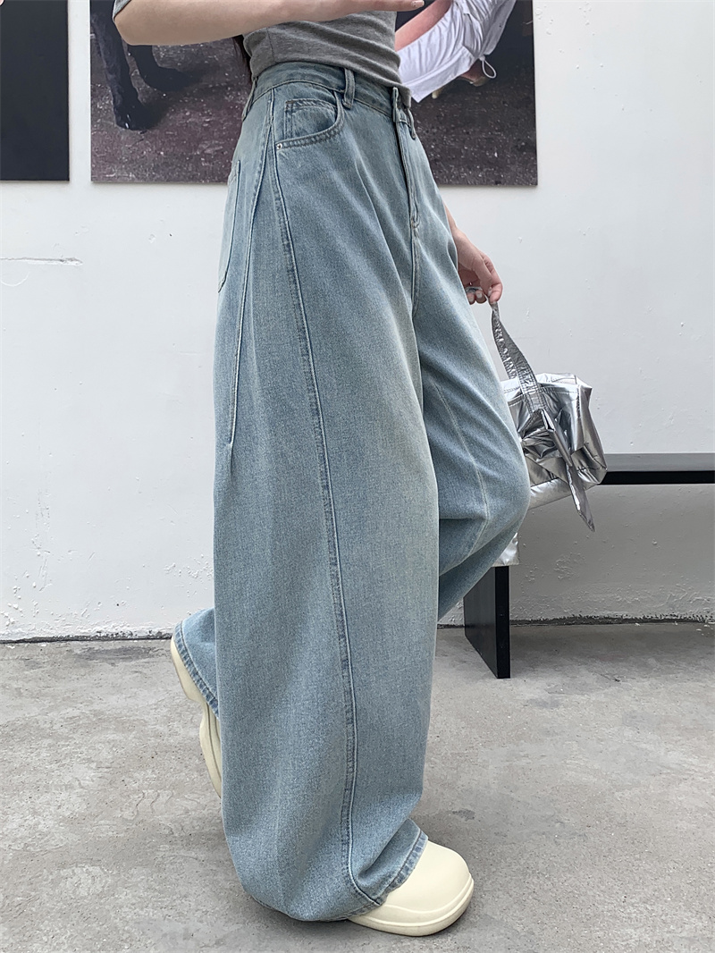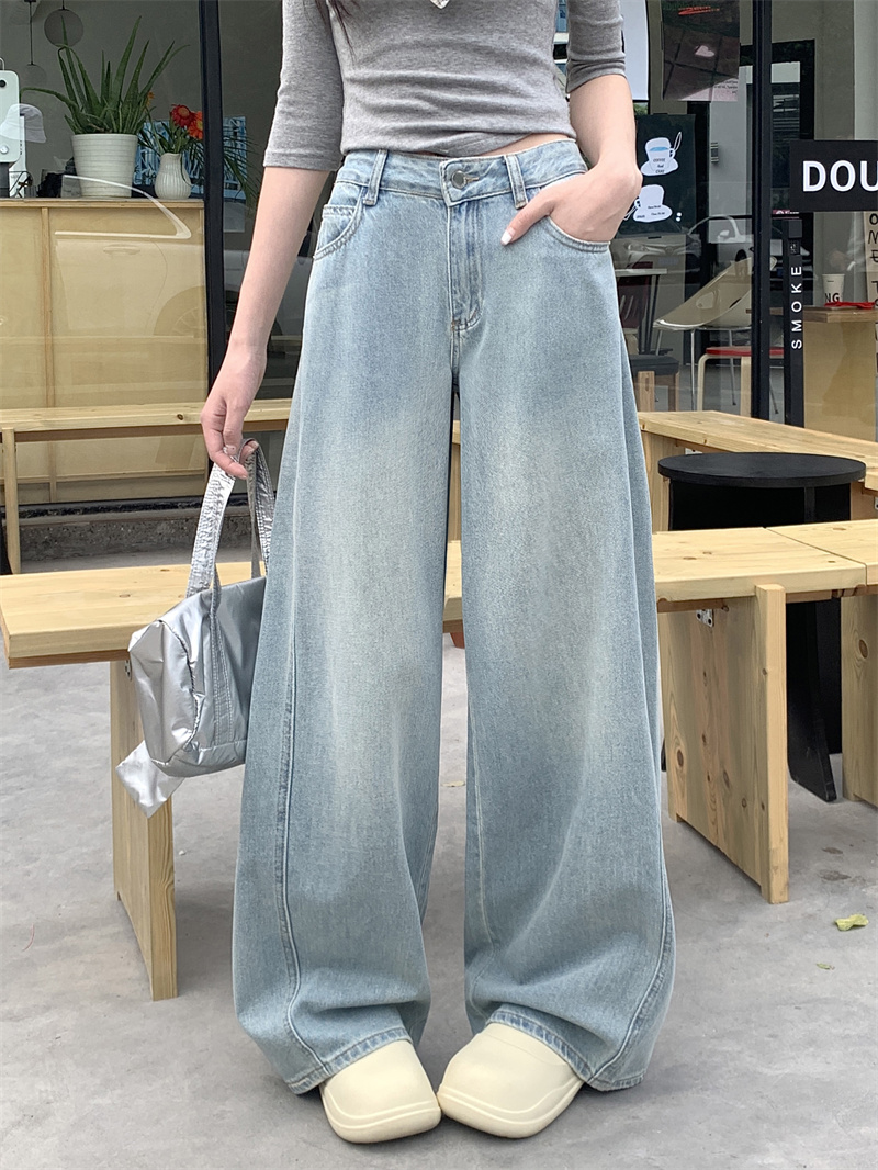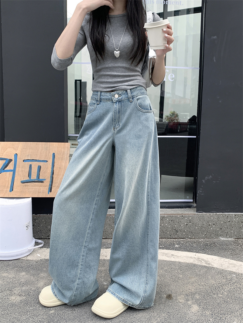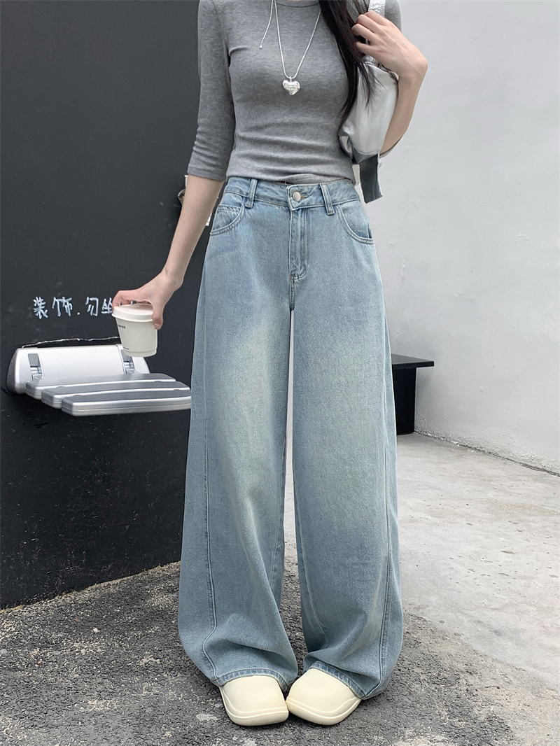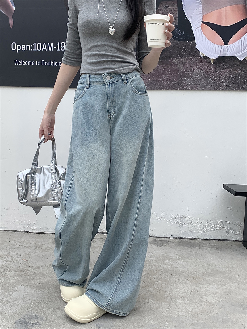 2025 년 봄 올해 인기 높은 허리 느슨한 슬림 스트레이트 바지 미국 하이 스트리트 데님 넓은 다리 바지 여성스토어 가기
